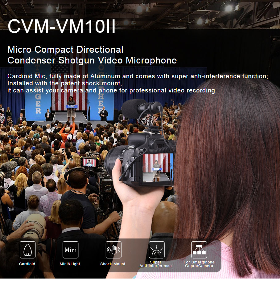 Компактный кардиоидный направленный конденсатор Comica CVM-VM10II VM10 II, микрофон для смартфона GoPro, беззеркальная камера