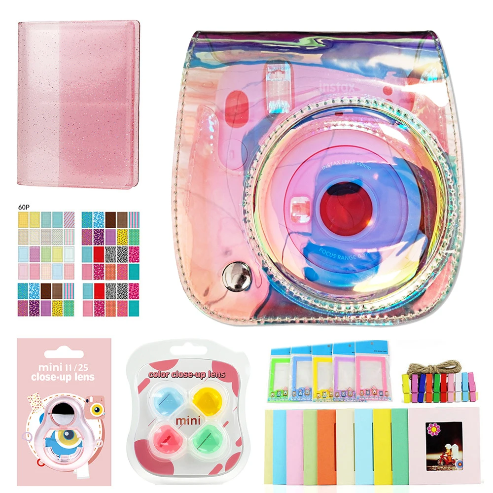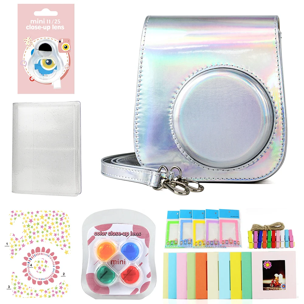 Комплект аксессуаров для камеры Fujifilm Instax Mini 11, Сумка с ремнем на плечо, чехол, фотоальбом, пленка, рамка, фильтры, набор для селфи-объективов