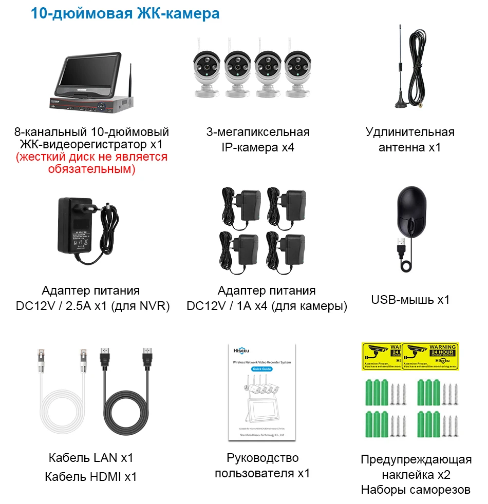Комплект беспроводного видеонаблюдения Hiseeu 8CH 3MP