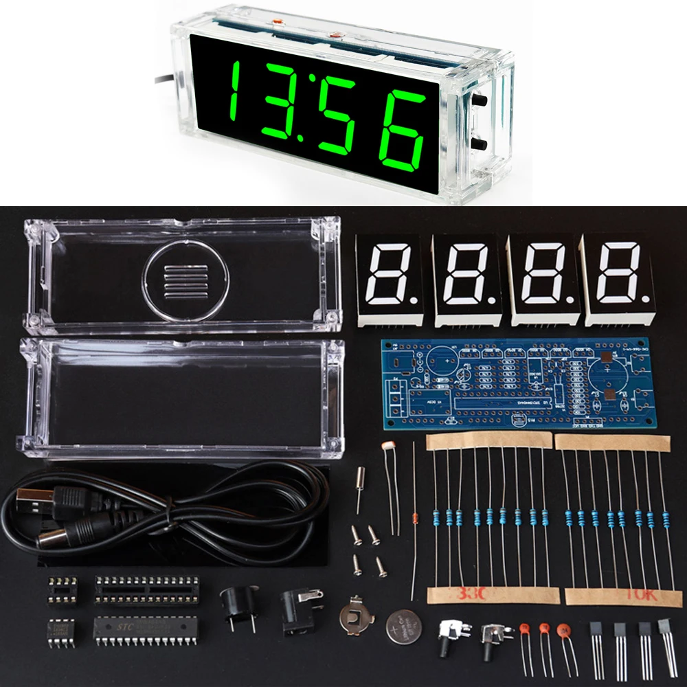 Цвет: по умолчанию отправляется зеленый (если вам нужен красный, синий или белый, можно отметить на странице заказа) Вес: 110 г Чип часов: DS1302 DIP8 Чип: STC15W404AW Цифровая трубка: 4 шт 1 "цифровая трубка Размеры: 11,5x3,2x4 см с Чехол Широко используется в школах, чтобы помочь студентам научиться основным механическим и электронным навыкам. С помощью анализа цепи, понять принцип работы цепи, научиться обучать электронные навыки, сварочные тренировки.