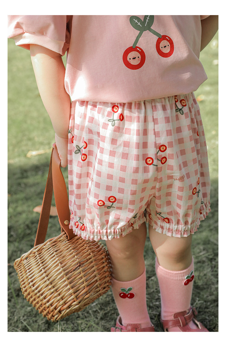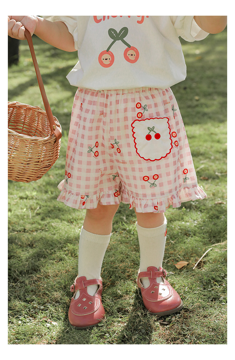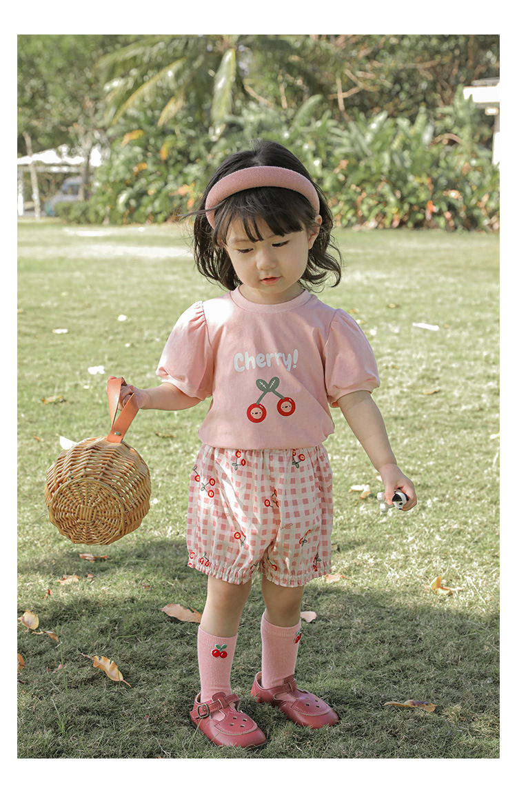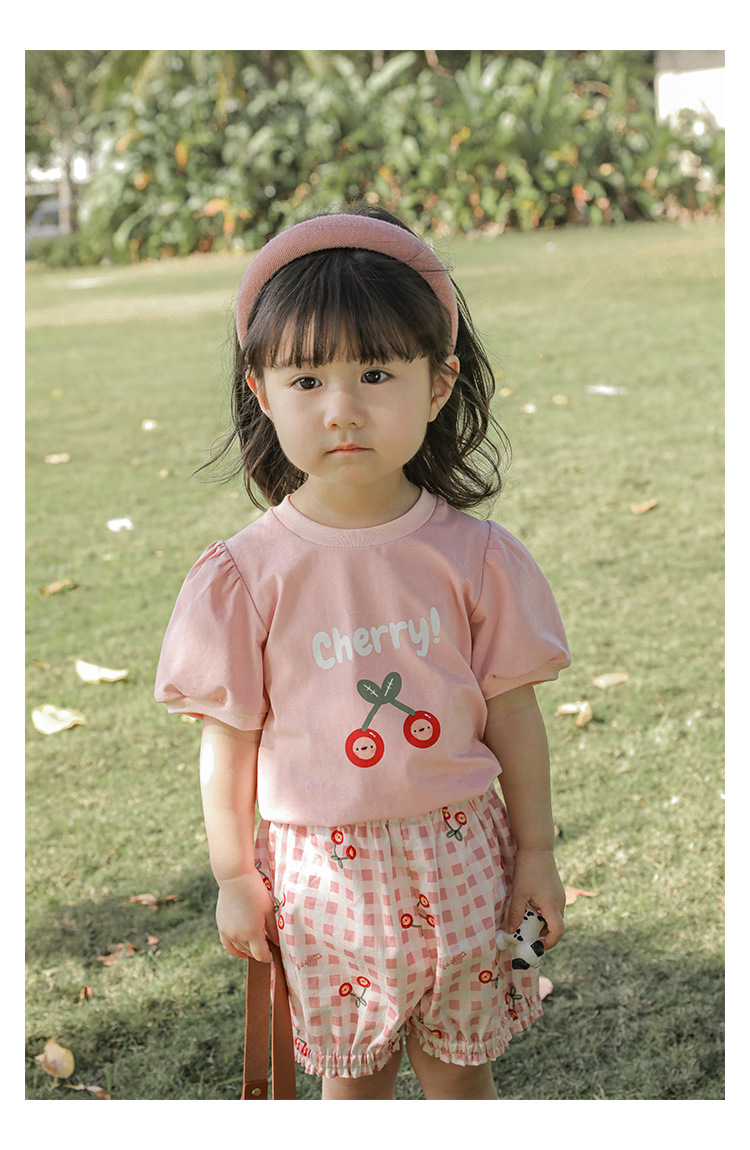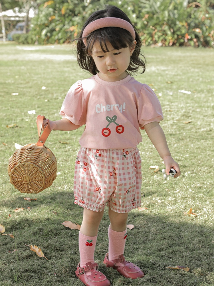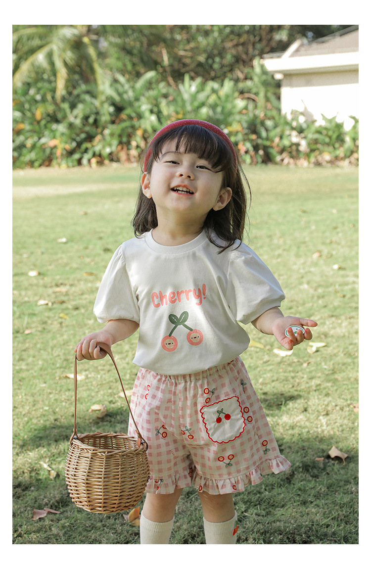 Комплект детской одежды для девочек, летняя новинка, детский комплект одежды с милым принтом и кружевной вышивкой на подоле, одежда для малышей, хлопковая футболка и шорты