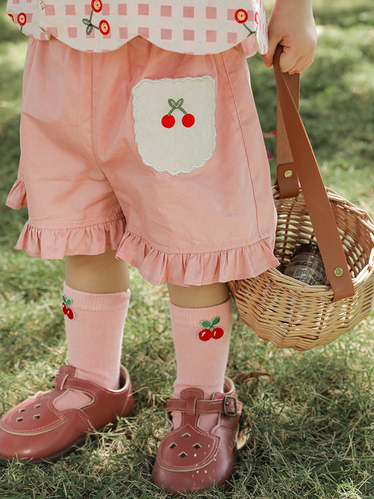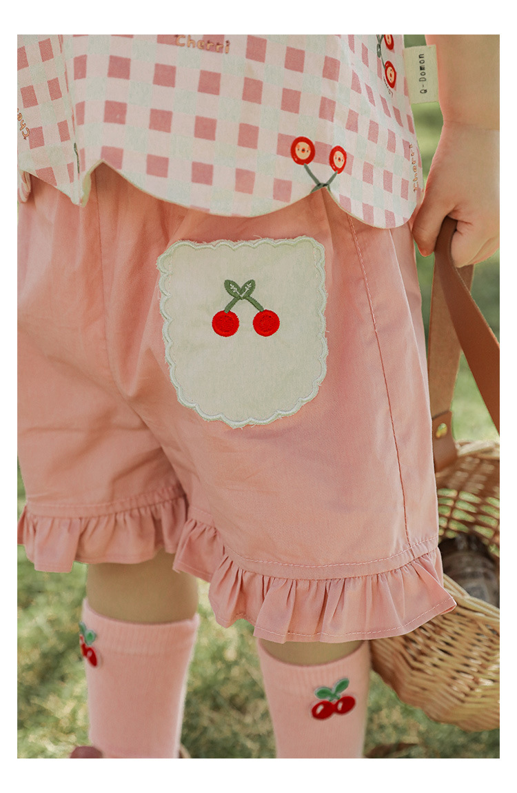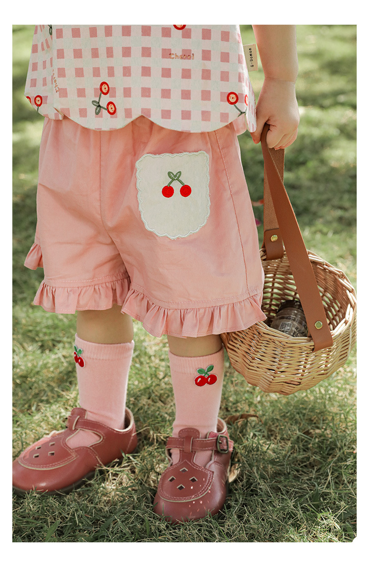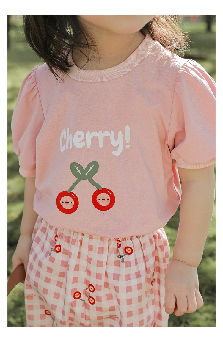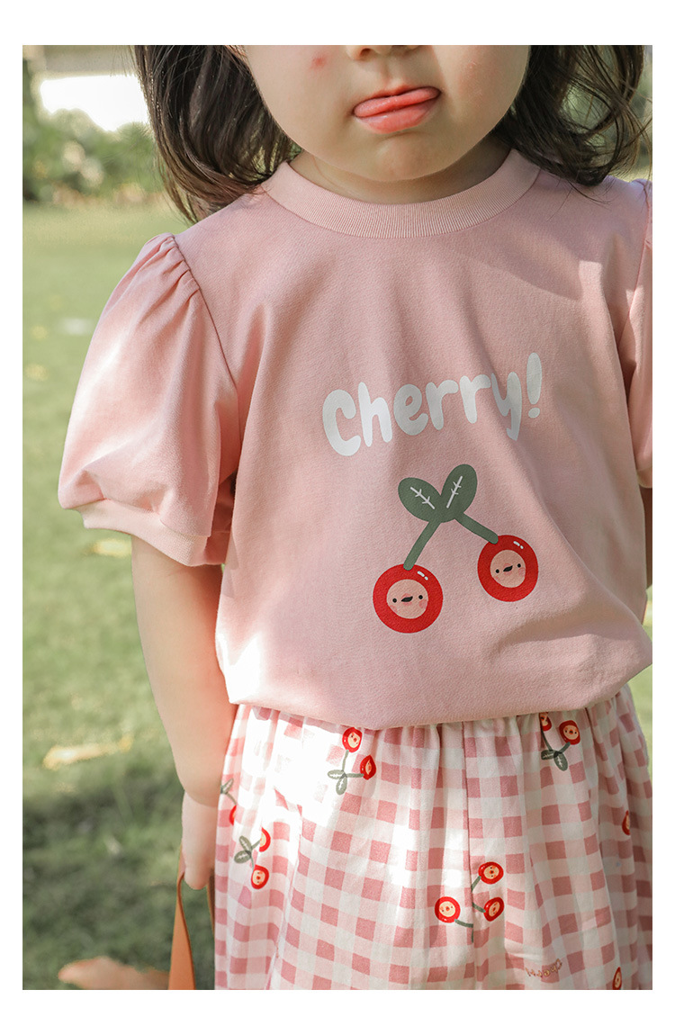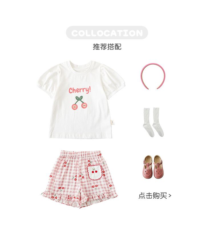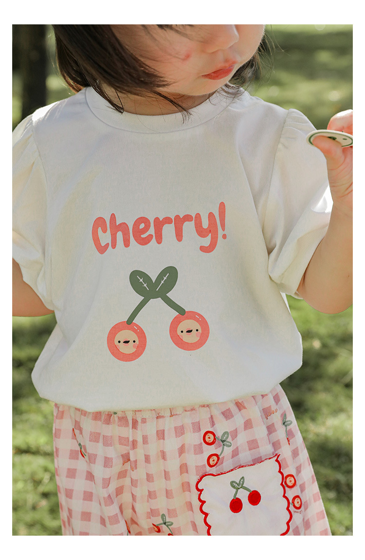 Комплект детской одежды для девочек, летняя новинка, детский комплект одежды с милым принтом и кружевной вышивкой на подоле, одежда для малышей, хлопковая футболка и шорты