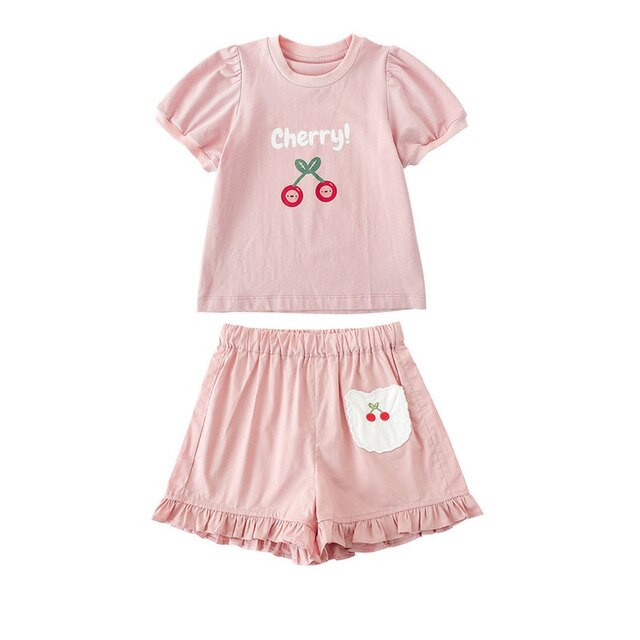 Комплект детской одежды для девочек Летняя Новинка Детские комплекты одежды с кружевным принтом и вышивкой по подол Одежда для дома для малышей Хлопковые футболки-шорты