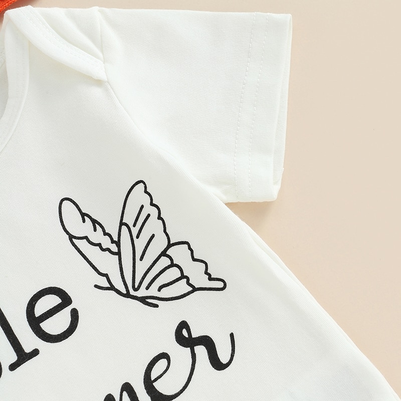 Описание: Девочки летние наряд, с коротким рукавом буквы комбинезон с бабочкой печати брюки вспышки и бантом оголовье