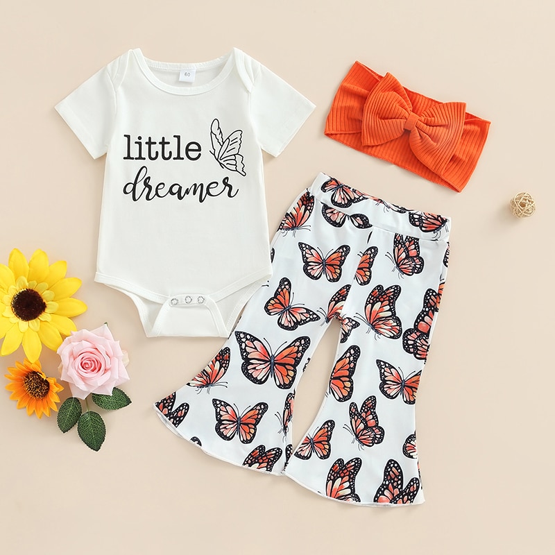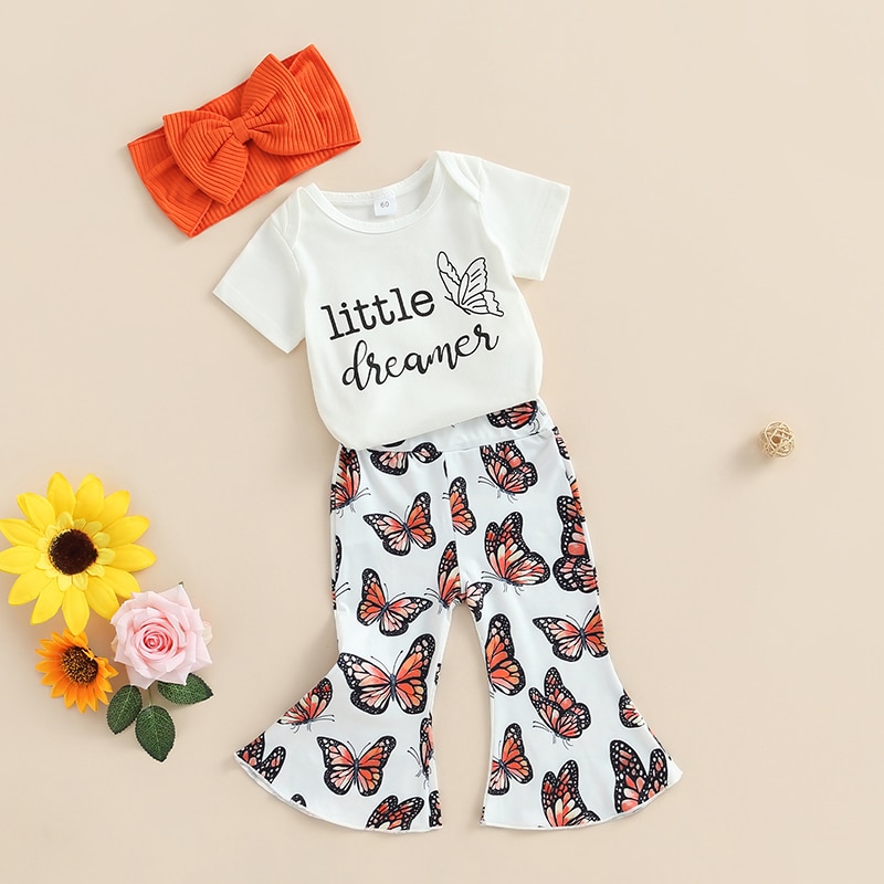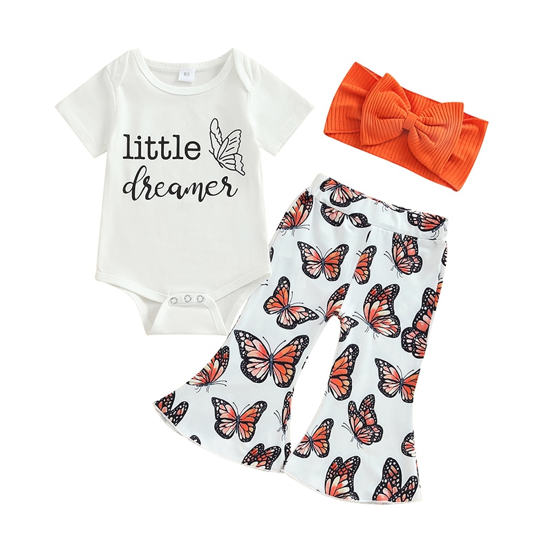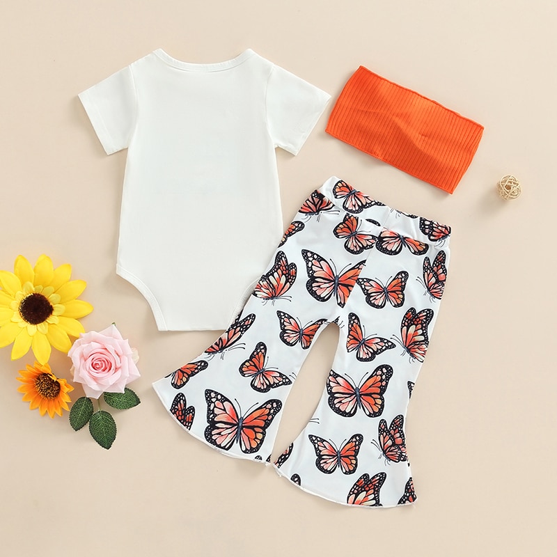 Комплект детской одежды FOCUSNORM из 3 предметов для девочек 0-12 месяцев, юбка с коротким рукавом и принтом бабочки, расклешенные брюки с бантом, повязка на голову