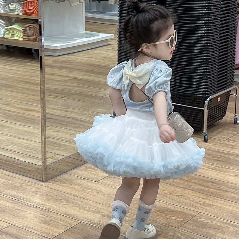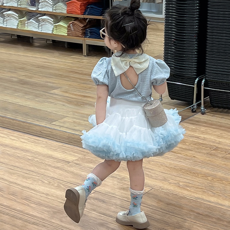 Комплект детской одежды из 2 предметов, летний топ с коротким рукавом и бантом