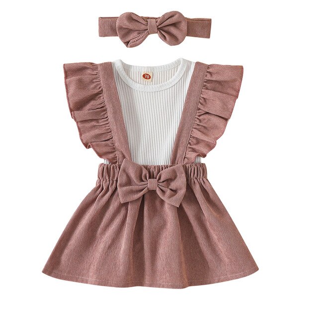 Комплект детской одежды из 3 предметов, белый ребристый комбинезон с коротким рукавом, Однотонная юбка на бретелях и повязка на голову, 0-18 месяцев