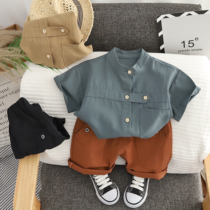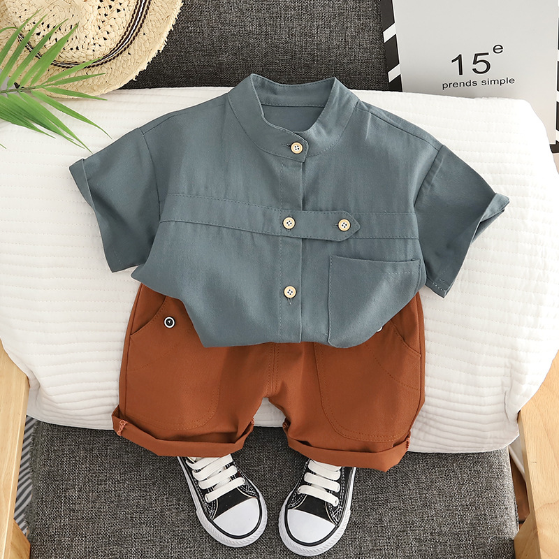 Комплект детской одежды, новинка 2023, модная летняя одежда с коротким рукавом, футболка и шорты в Корейском стиле для мальчиков, повседневный комплект из двух предметов