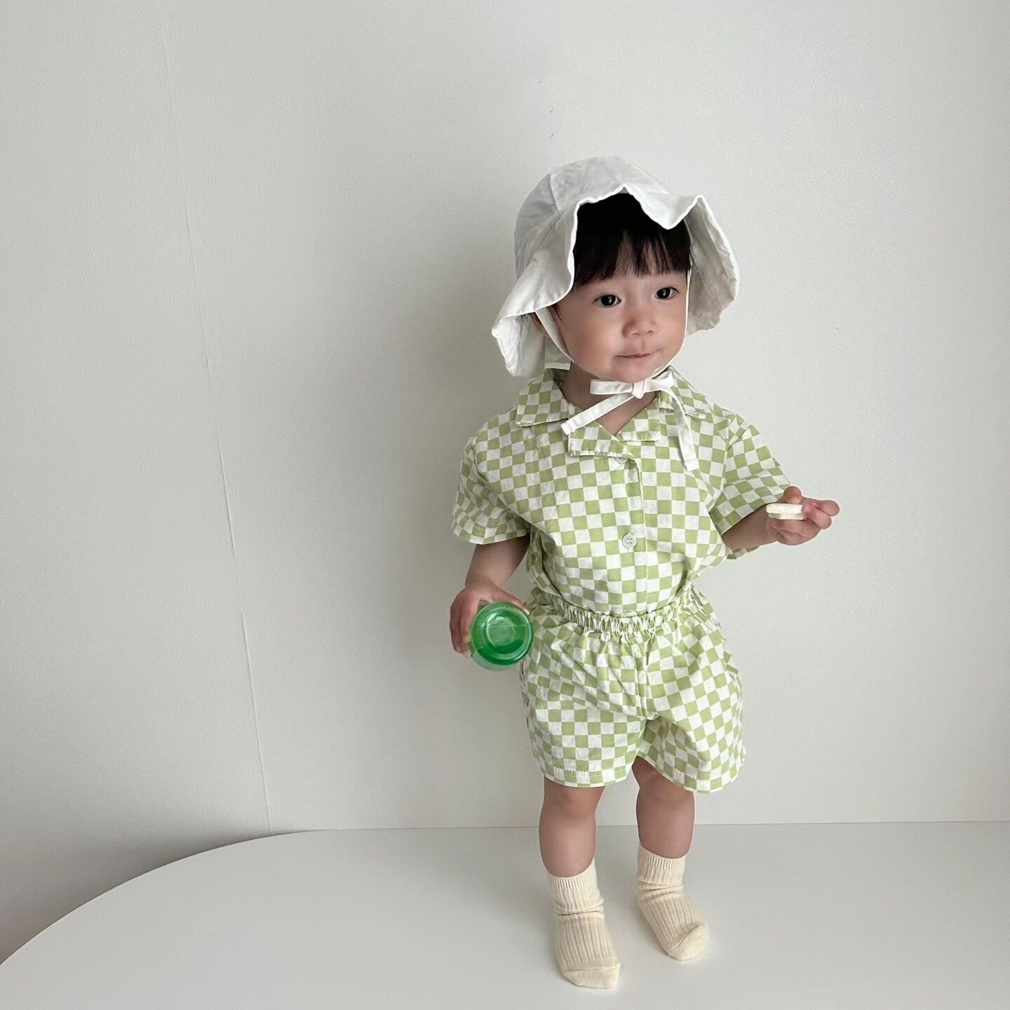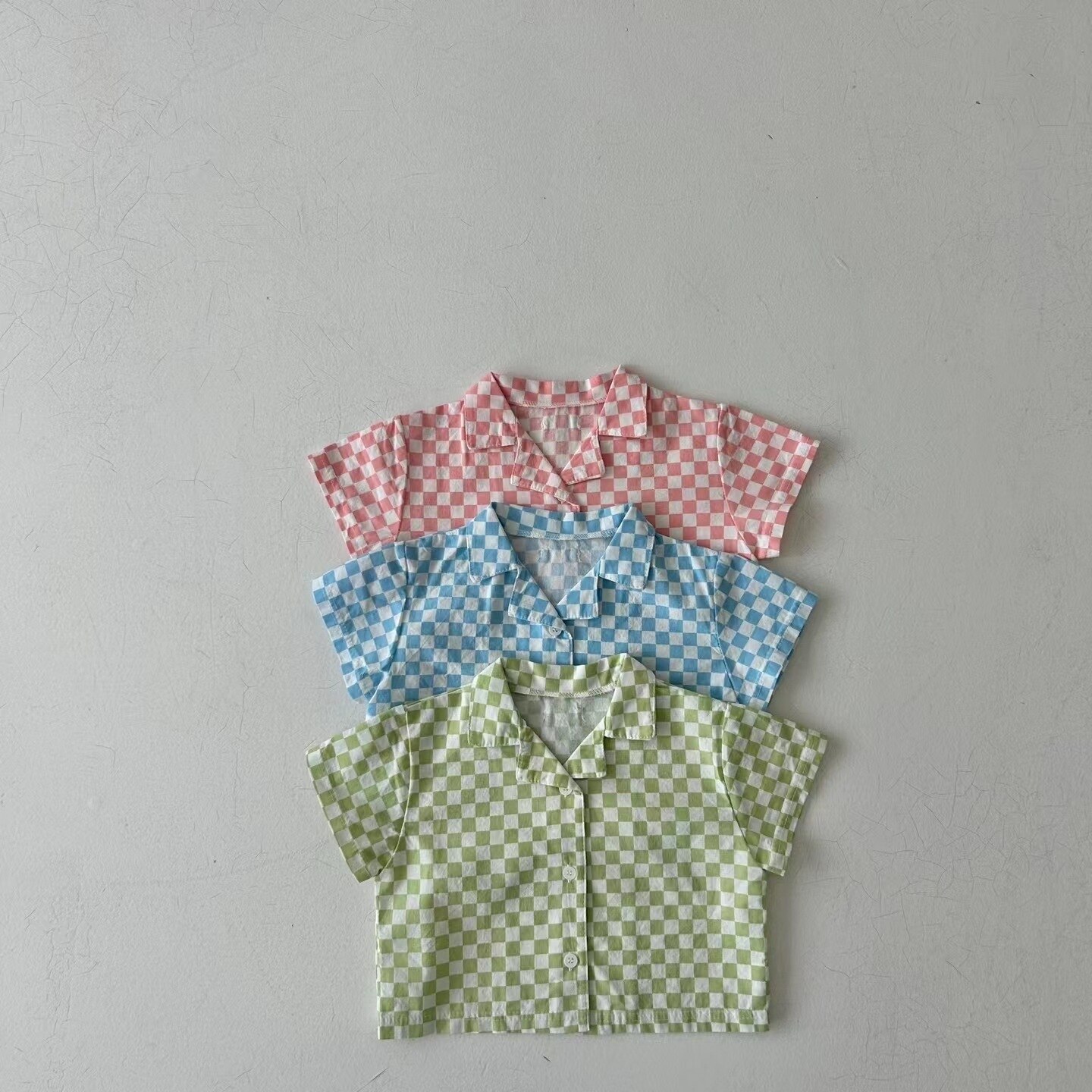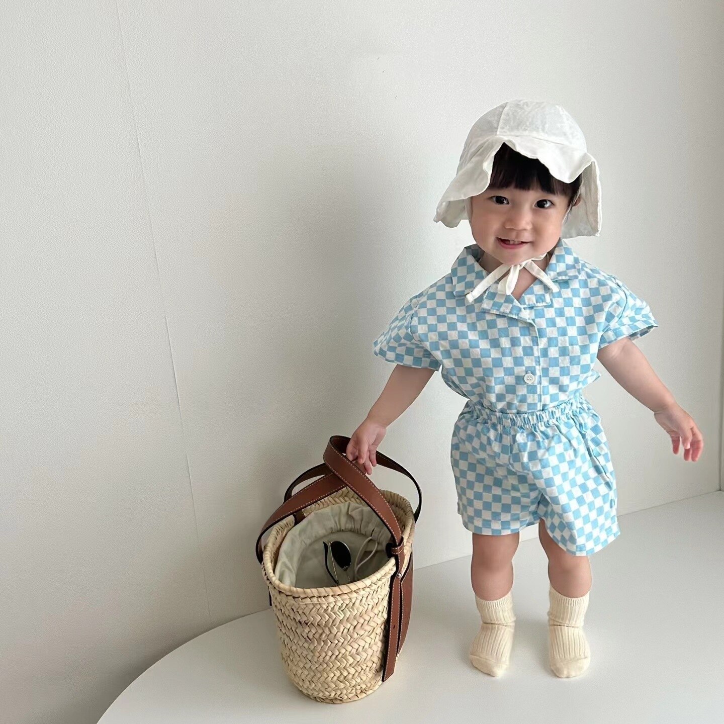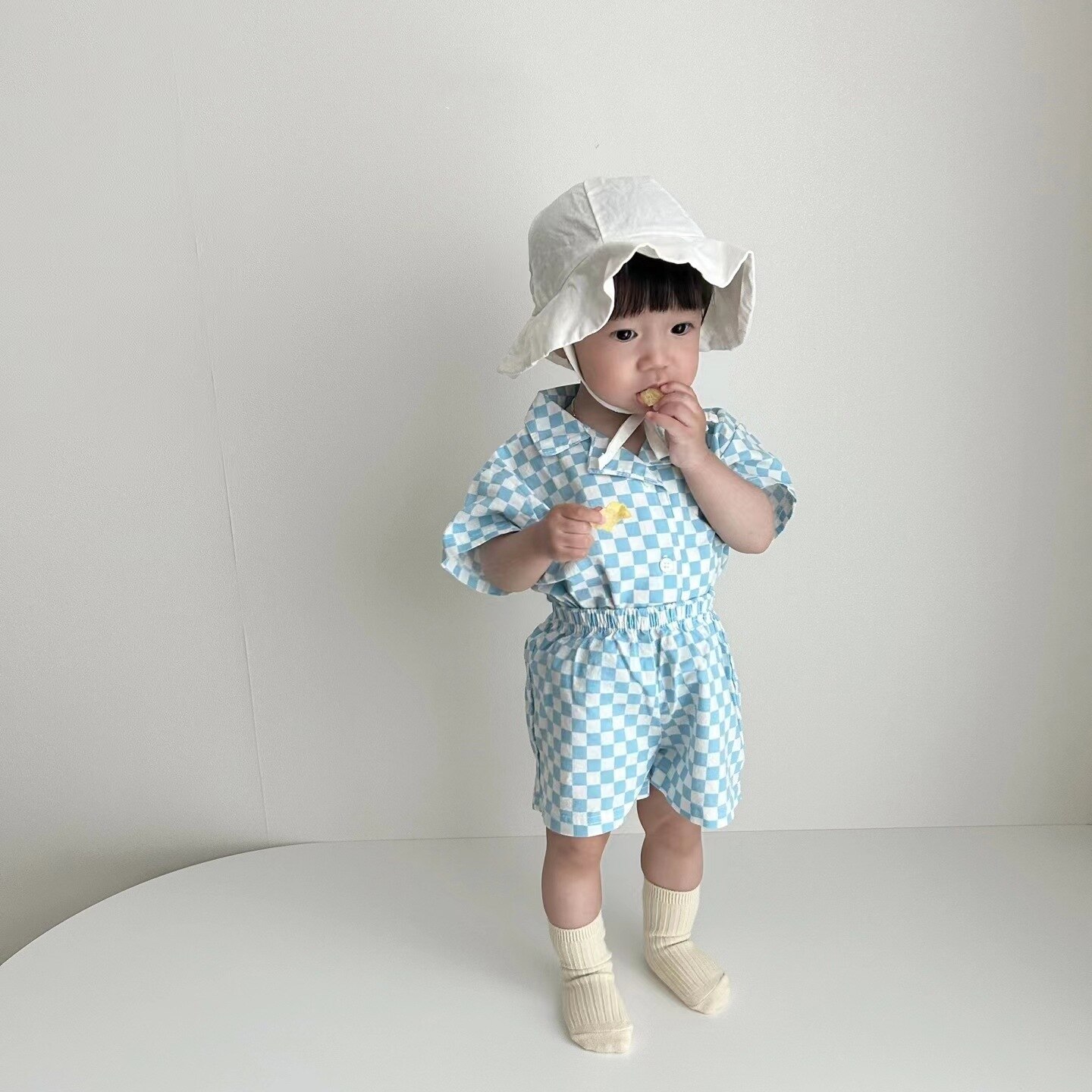 Комплект детской одежды, новинка 2023, модная Милая Детская футболка с коротким рукавом и шорты в Корейском стиле, повседневный клетчатый комплект из двух предметов