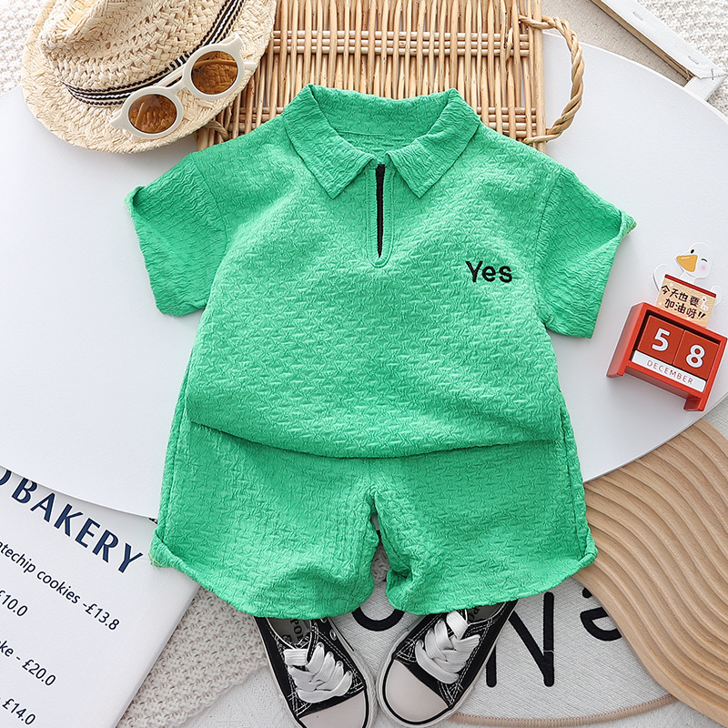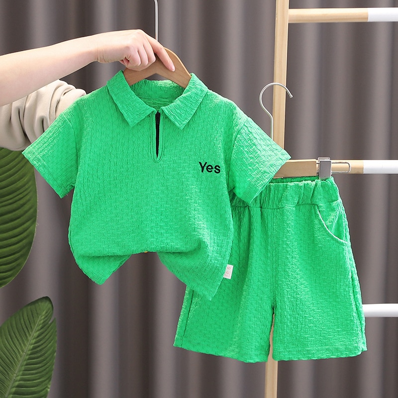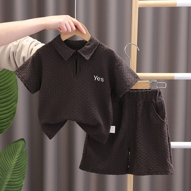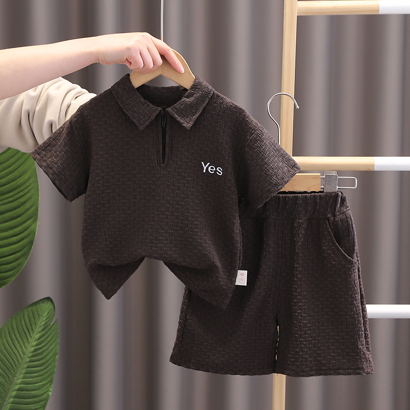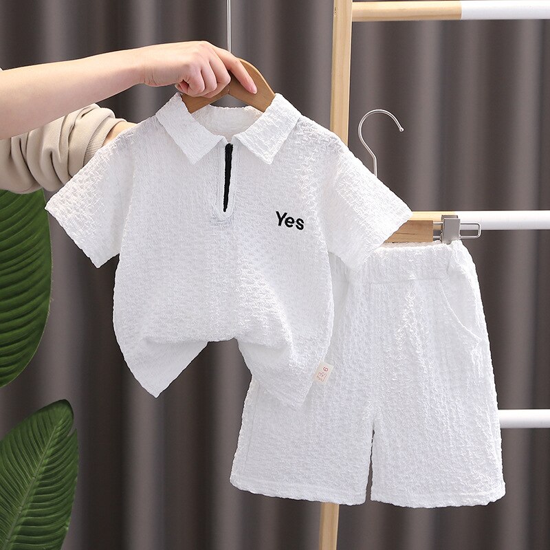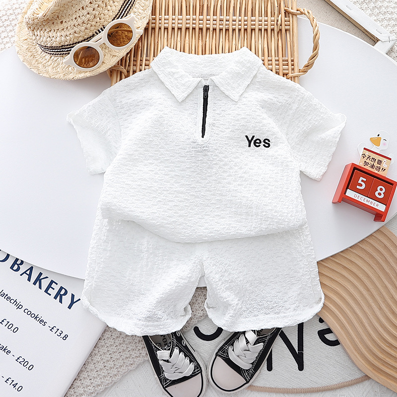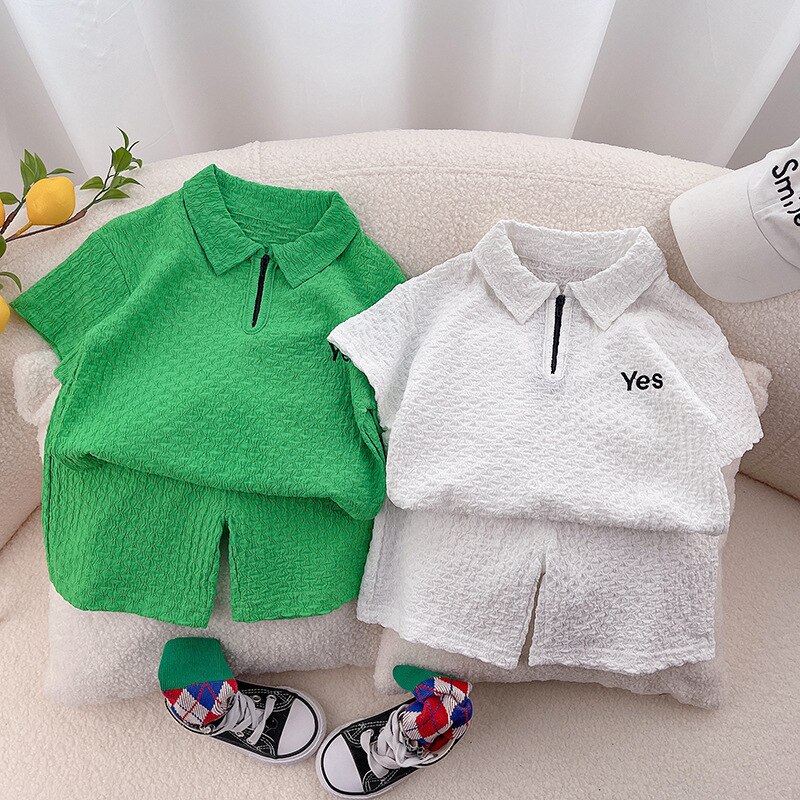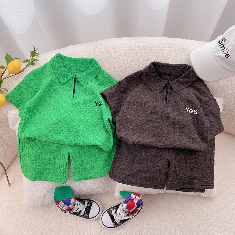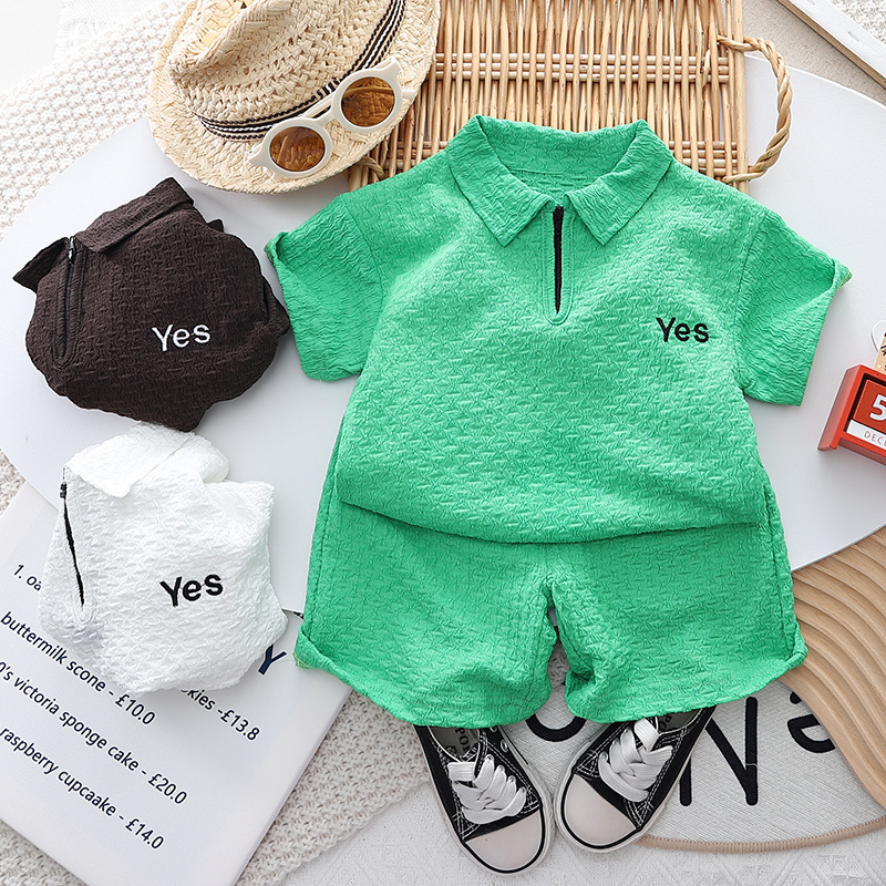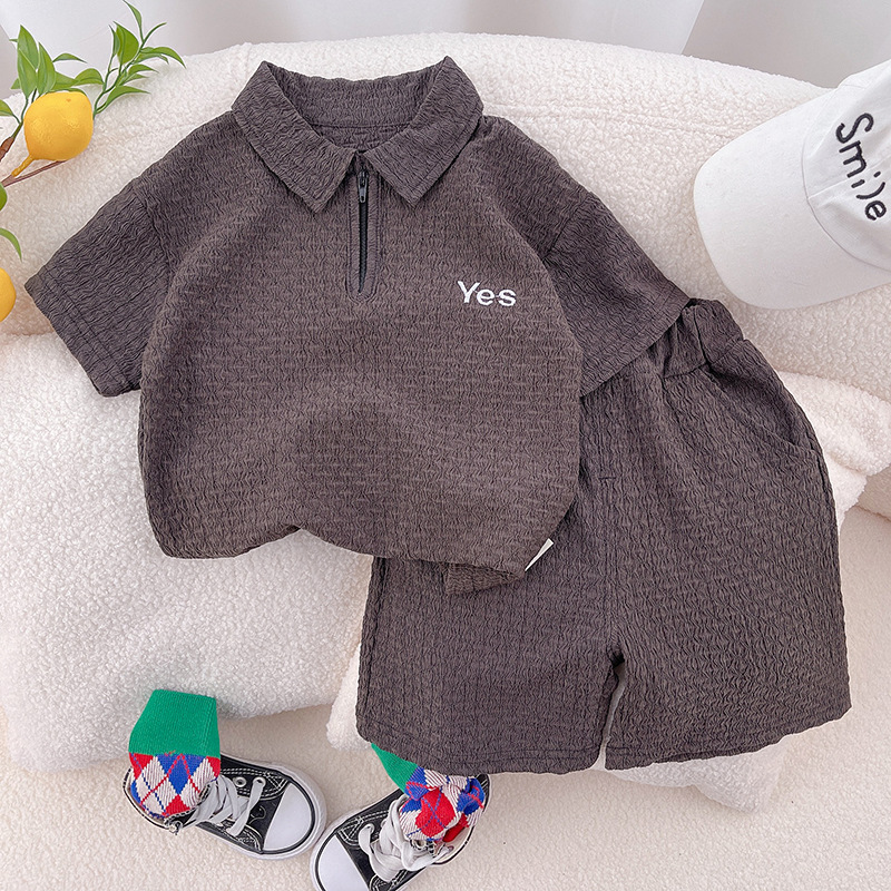 Комплект детской одежды, новинка 2023, модный костюм с буквенным принтом и коротким рукавом, шорты для девочек и мальчиков, повседневный простой комплект из двух предметов в Корейском стиле