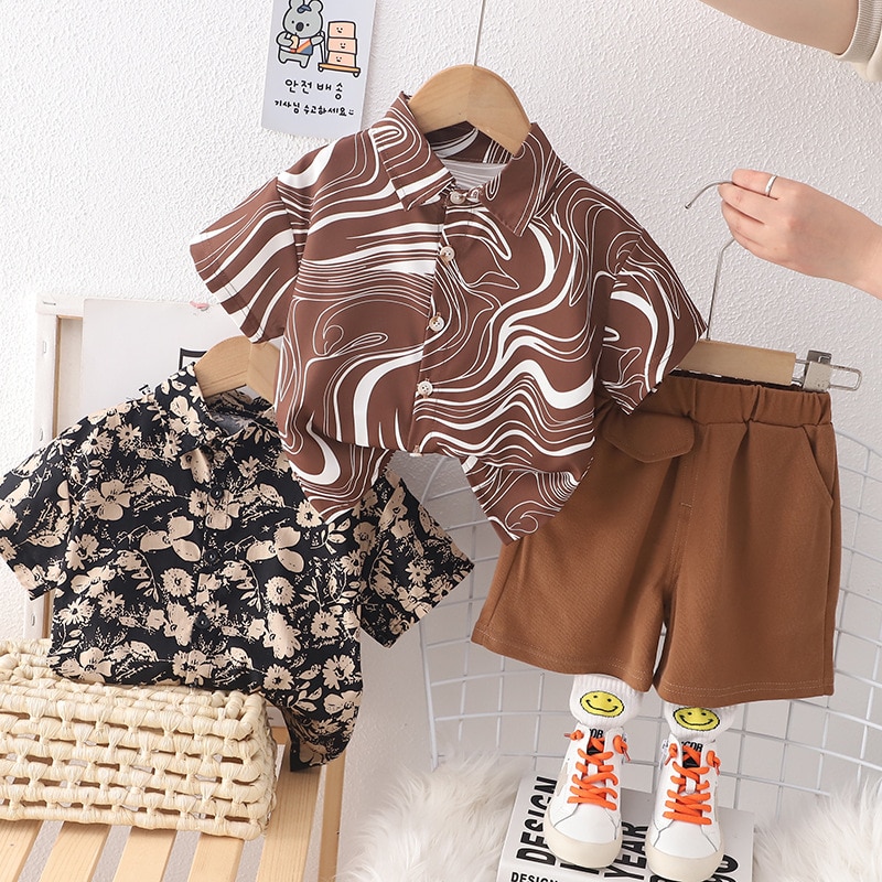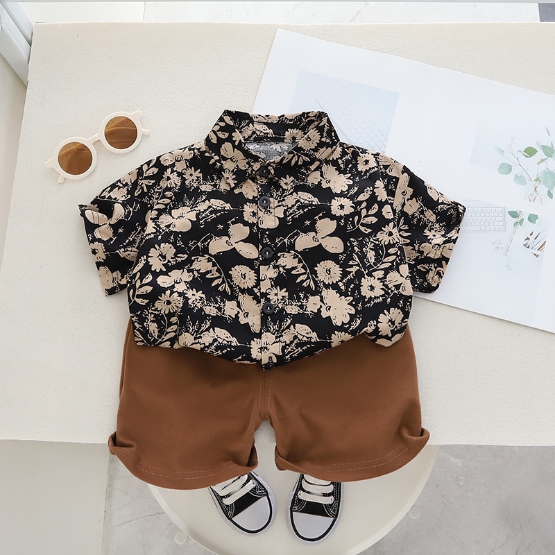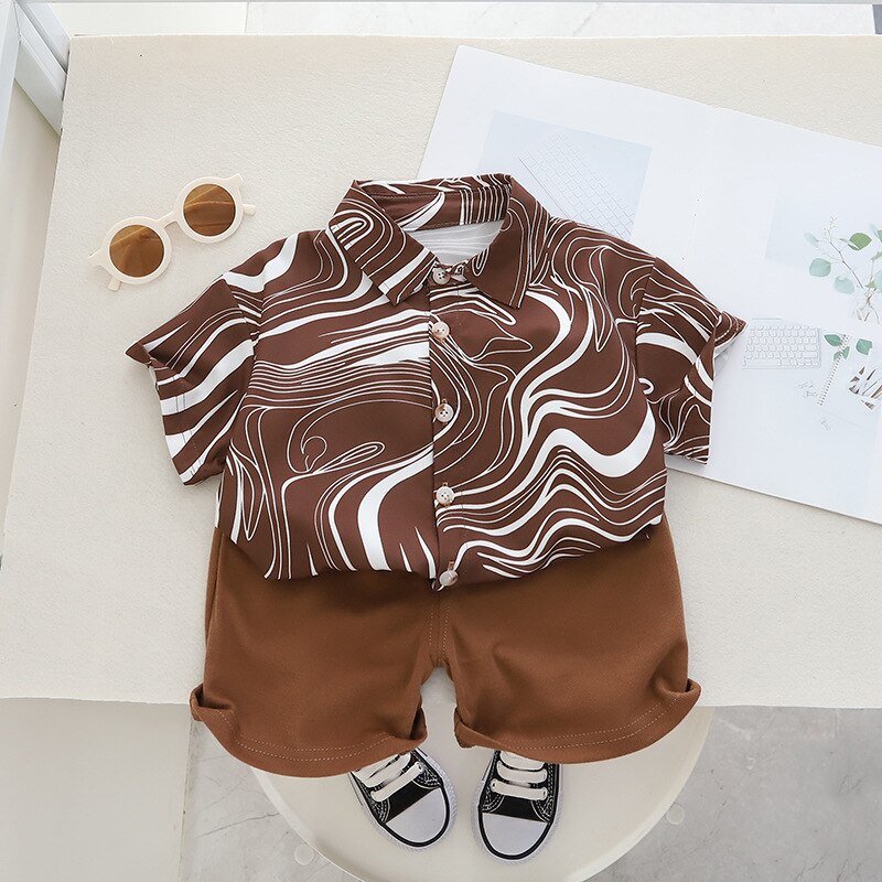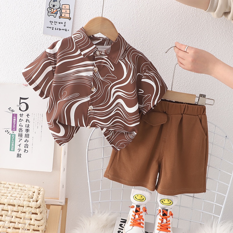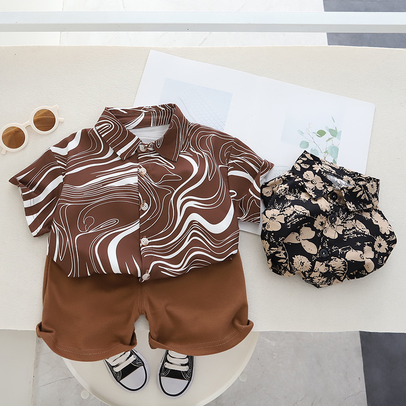Комплект детской одежды, новинка 2023, рубашка для мальчиков, летние шорты в Корейском стиле, красивый повседневный простой крутой модный детский комплект из двух предметов
