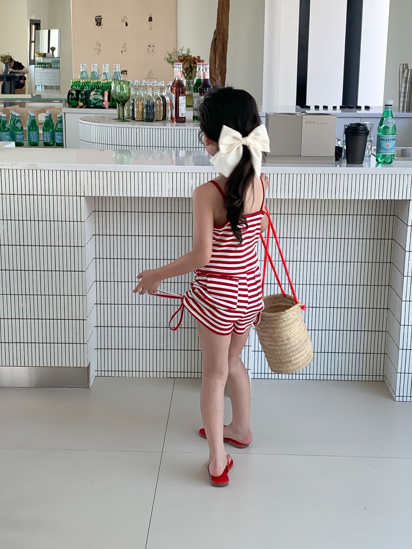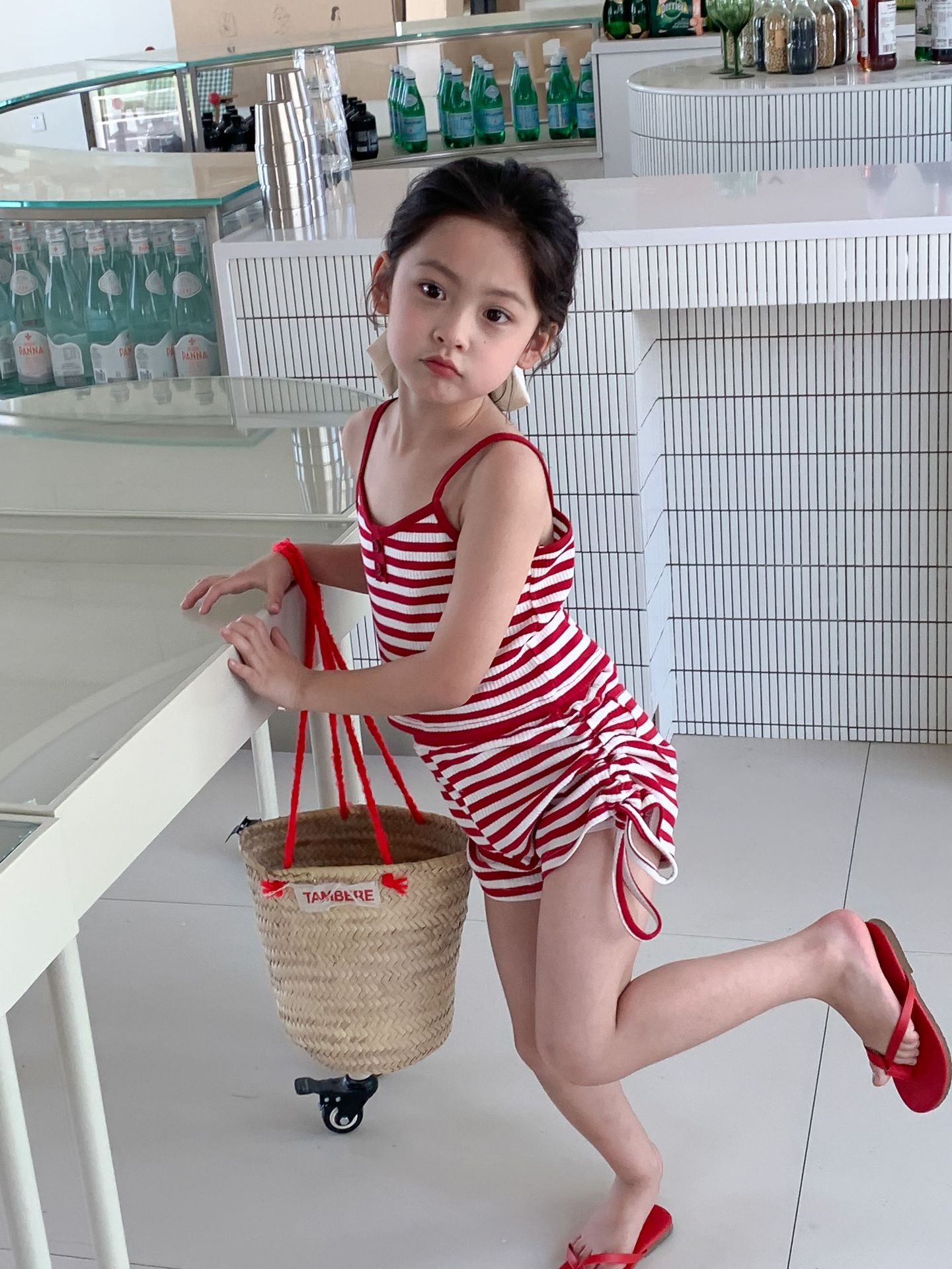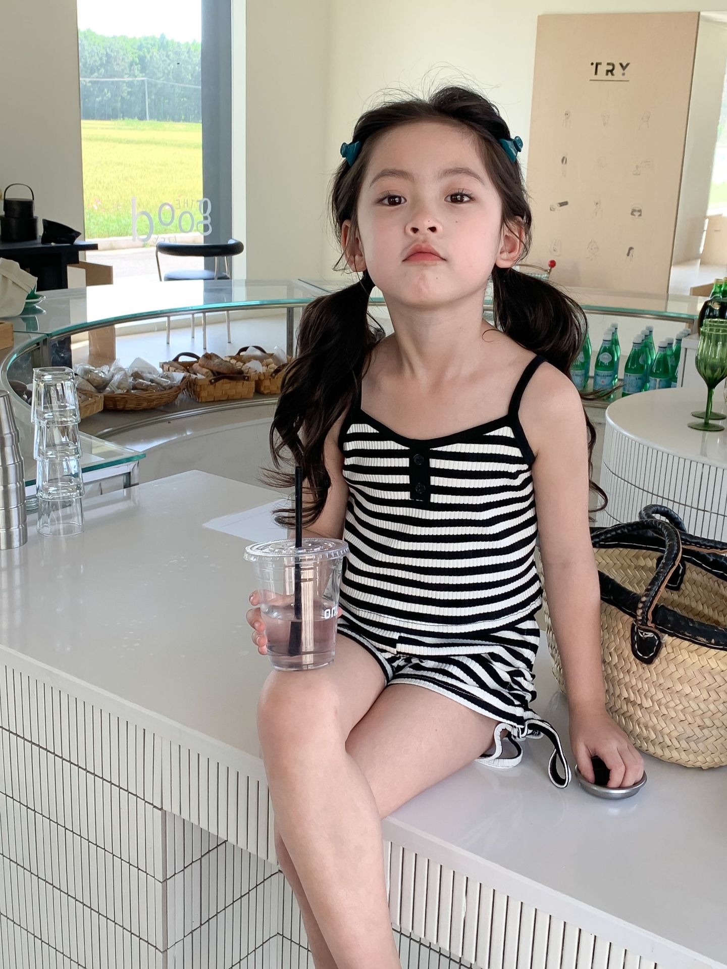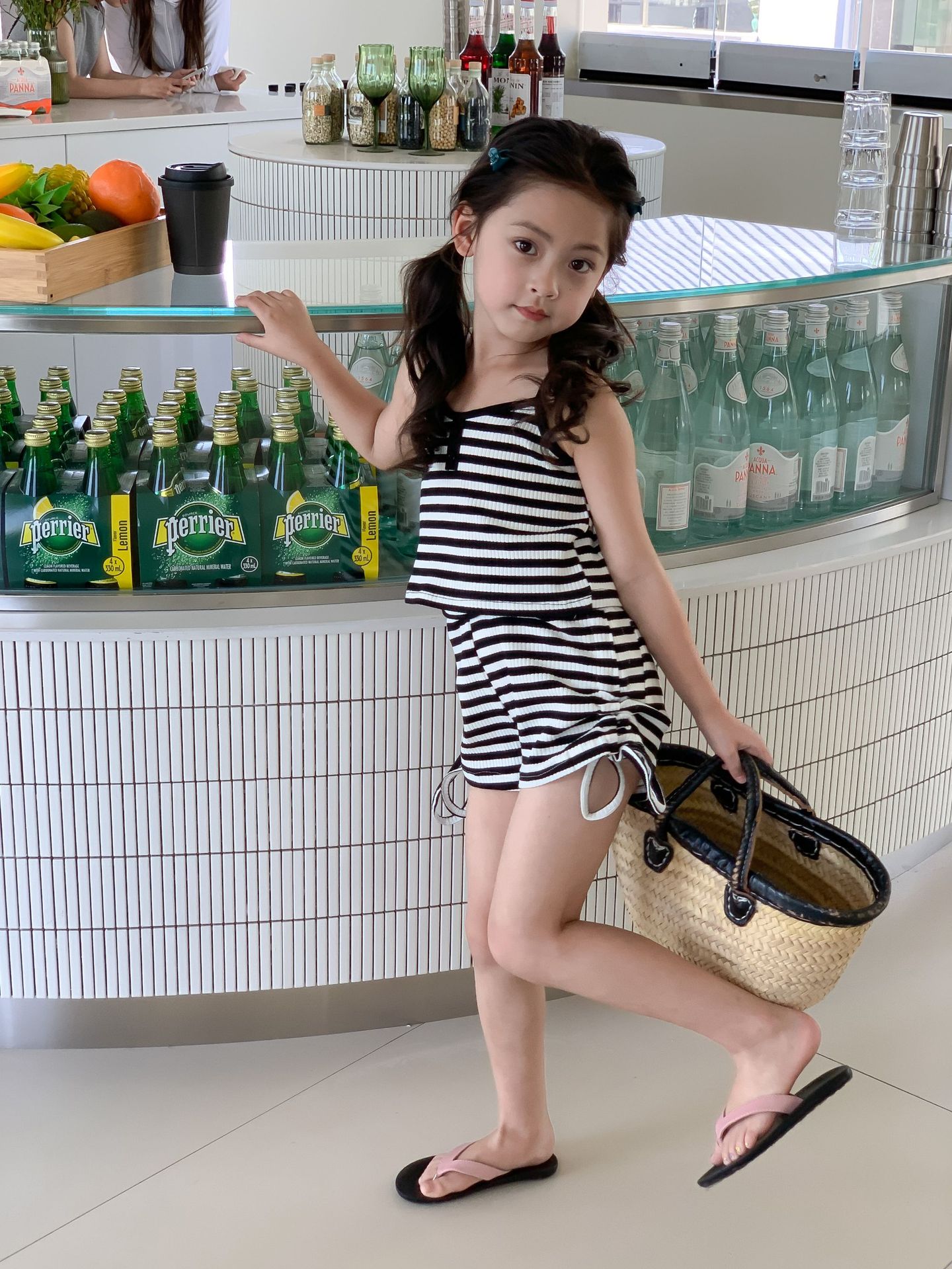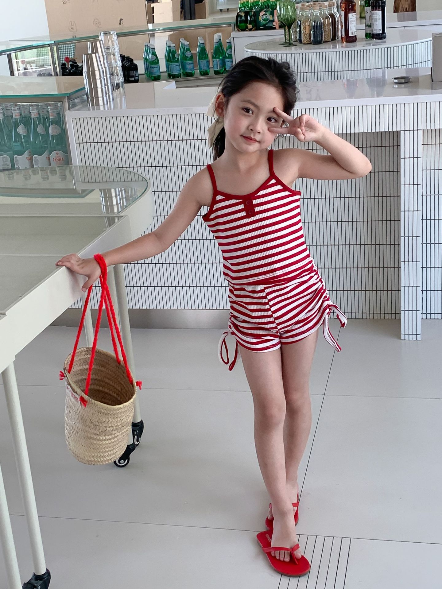 Комплект детской одежды Спайс для девочек 2023 Летний Тонкий полосатый подтяжки жилет и шорты на шнурке Повседневный простой комплект из двух предметов для детей