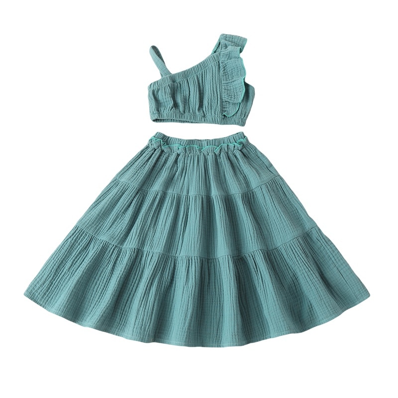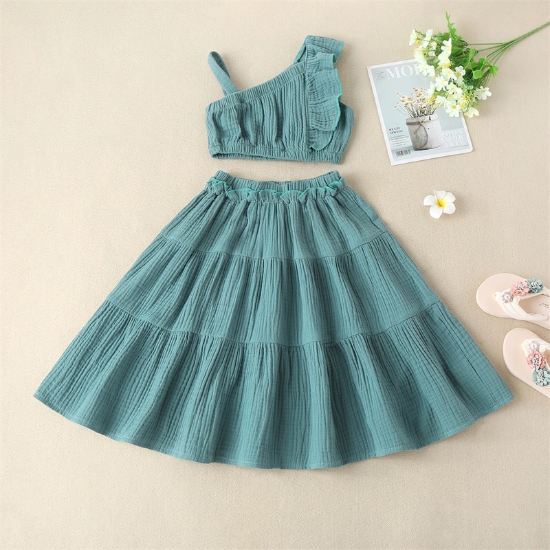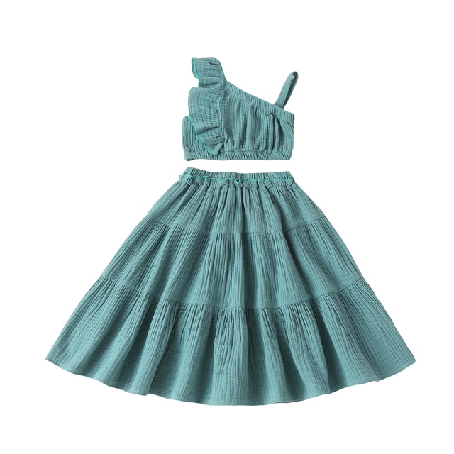 EWODOS От 2 до 7 лет Детский Комплект летних юбок для девочек, камзол без рукавов с оборками на одно плечо + юбки трапециевидной формы, повседневные комплекты юбок