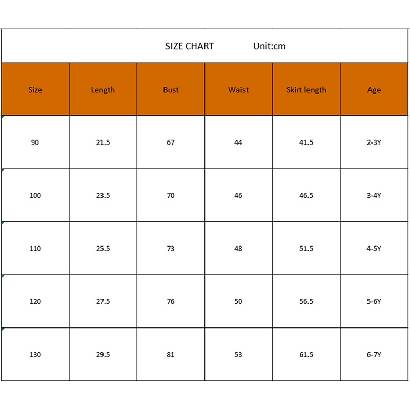 100 (Размер этикетки) Длина топа: 9,25 Бюст: 27,56 Талия: 18,11 Длина юбки: 18,31 Рекомендуемый возраст: От 3 до 4 лет