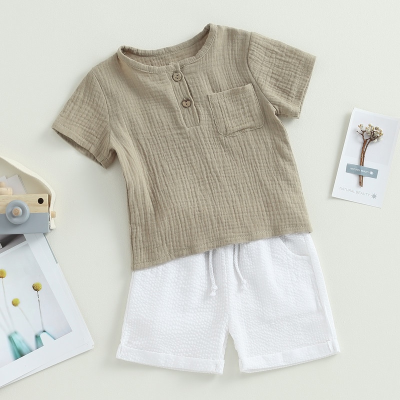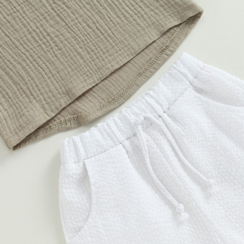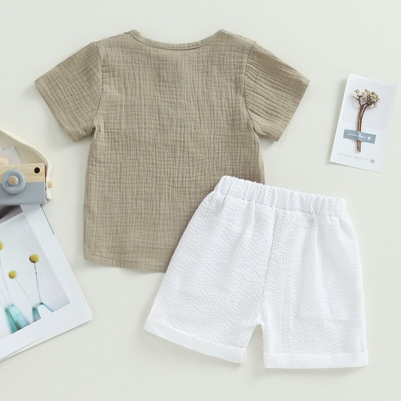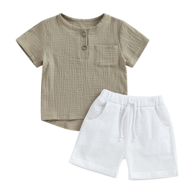 Комплект для мальчиков из 2 предметов, короткий топ с коротким рукавом и шорты на шнурке