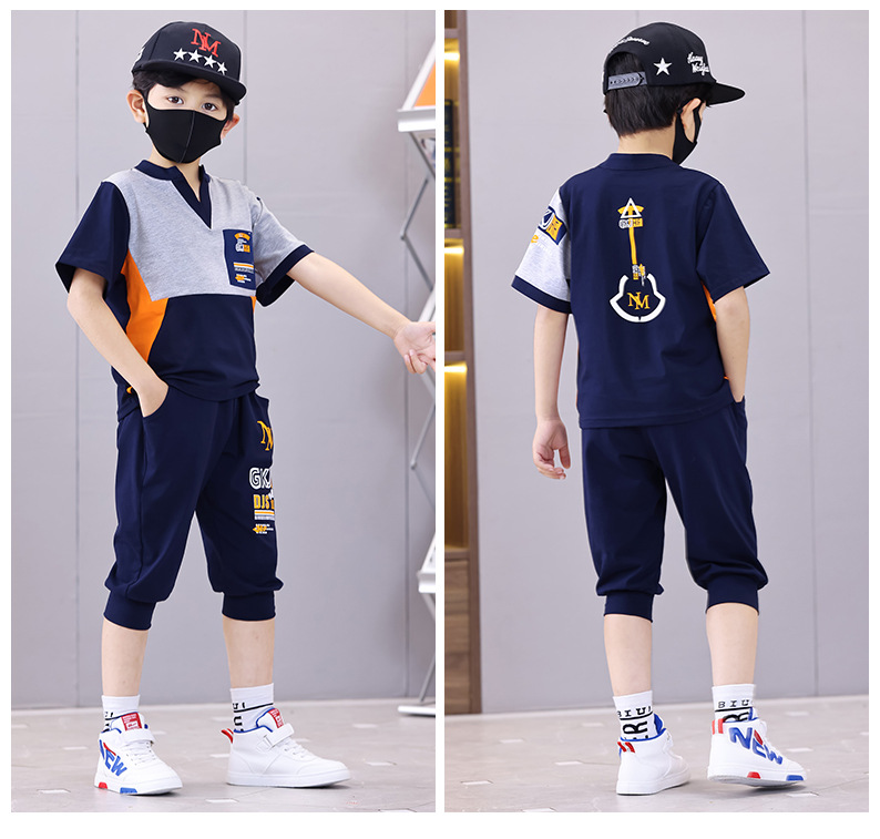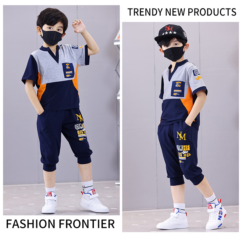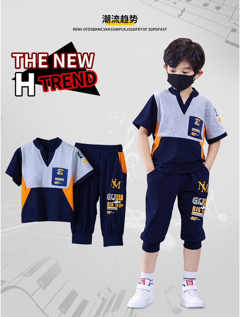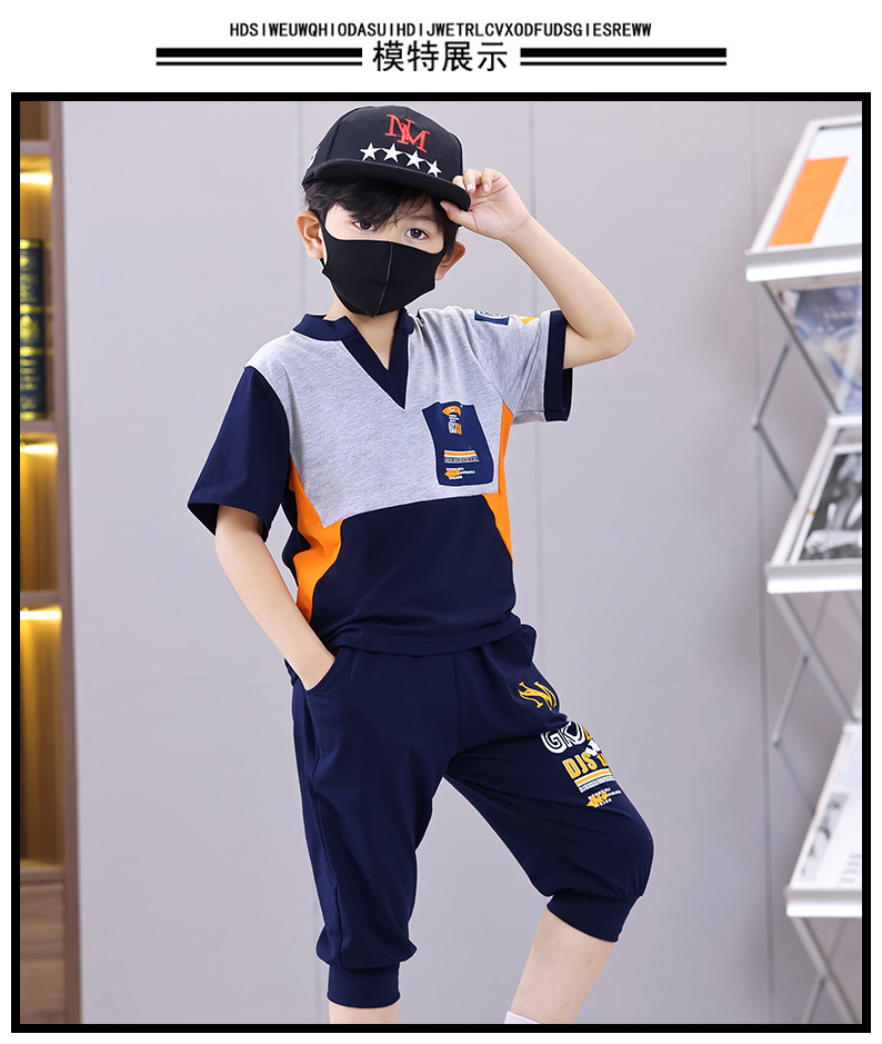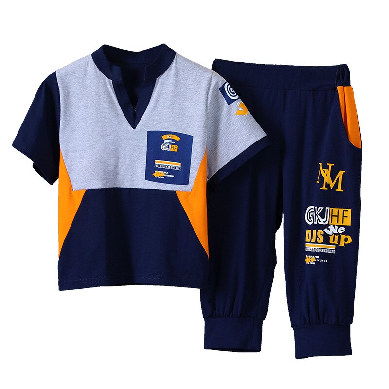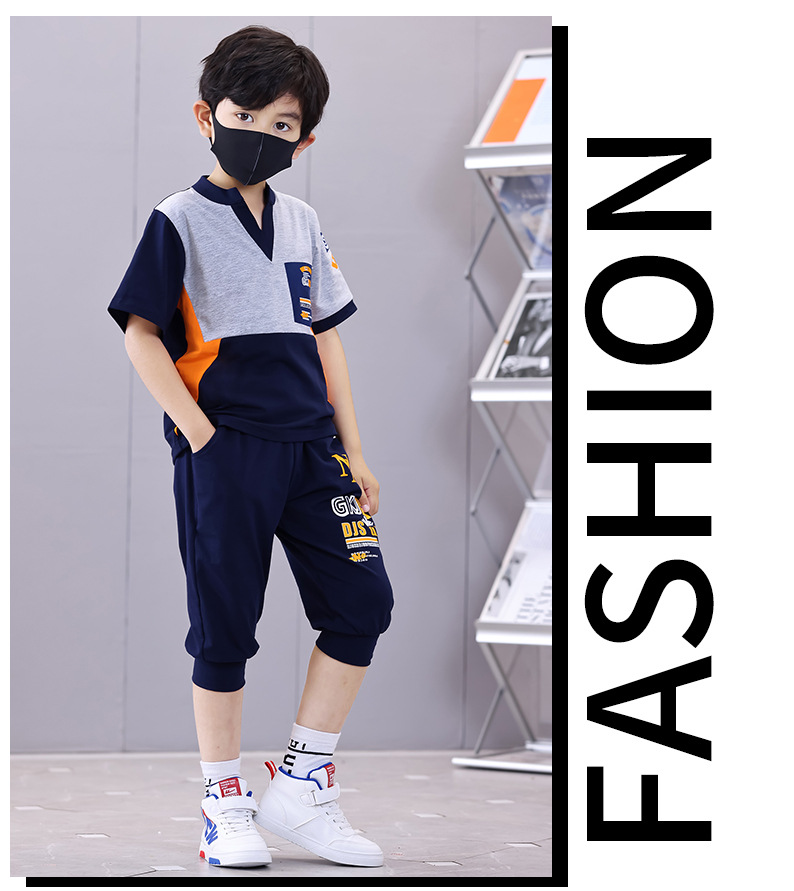 Комплект для мальчиков с V-образным вырезом, карманами и буквенным принтом