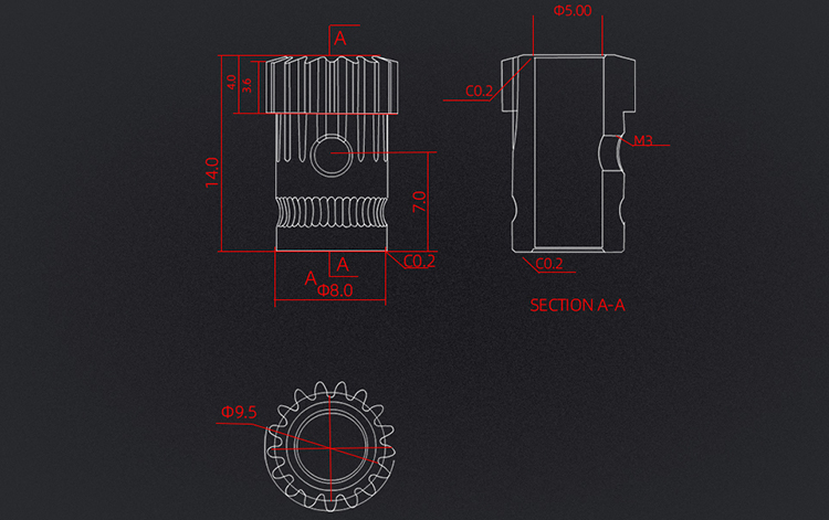 Набор нержавеющих шестерен (один с винтом M3 и один без винтового отверстия M3)