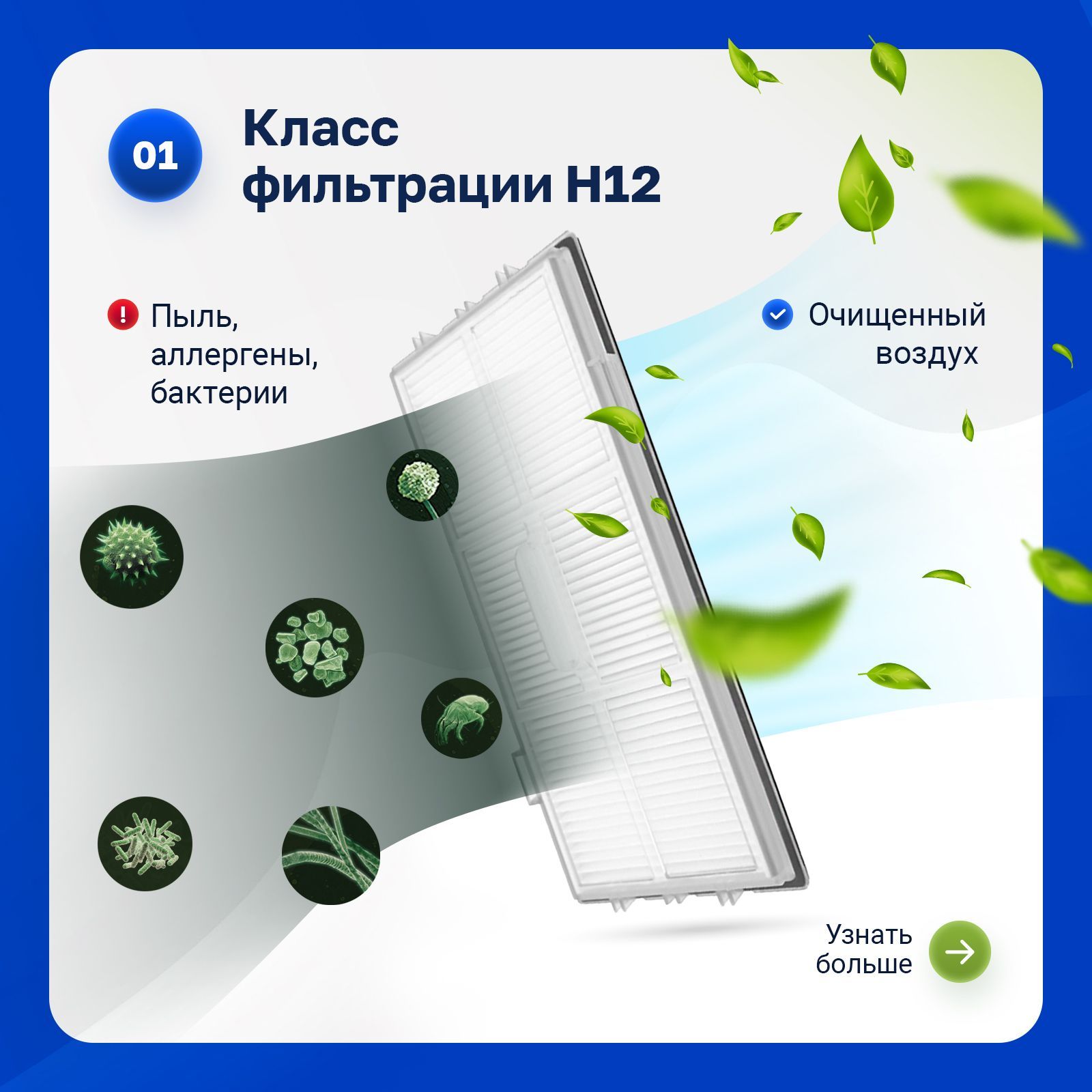Фильтры обеспечивают эффективную очистку воздуха до 99,9%, значительно уменьшая попадание пыли, пыльцы, продукты жизнедеятельности домашних животных и других аллергенов в воздух, которым вы дышите.⠀