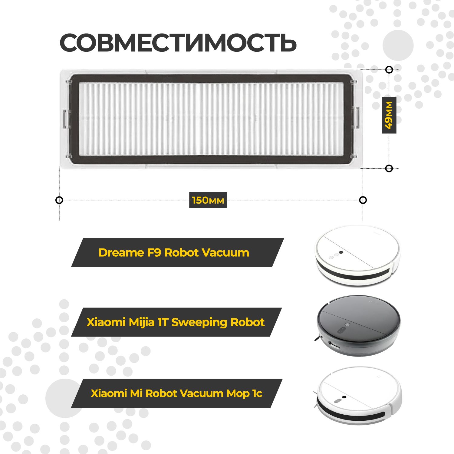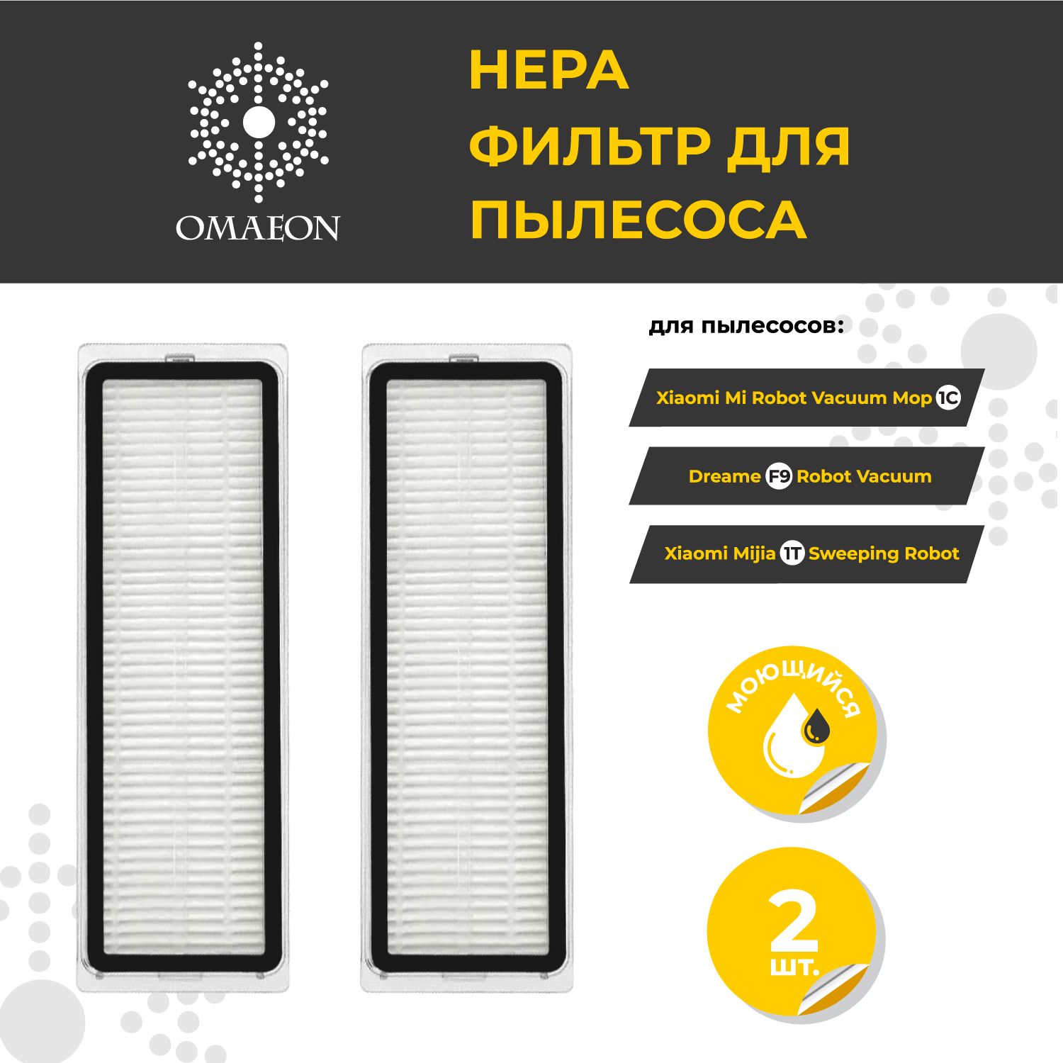 Описание: Фильтр HEPA для робота пылесоса Xiaomi Mi Robot Vacuum 1С, 1T и Dreame F9, 2 шт.
