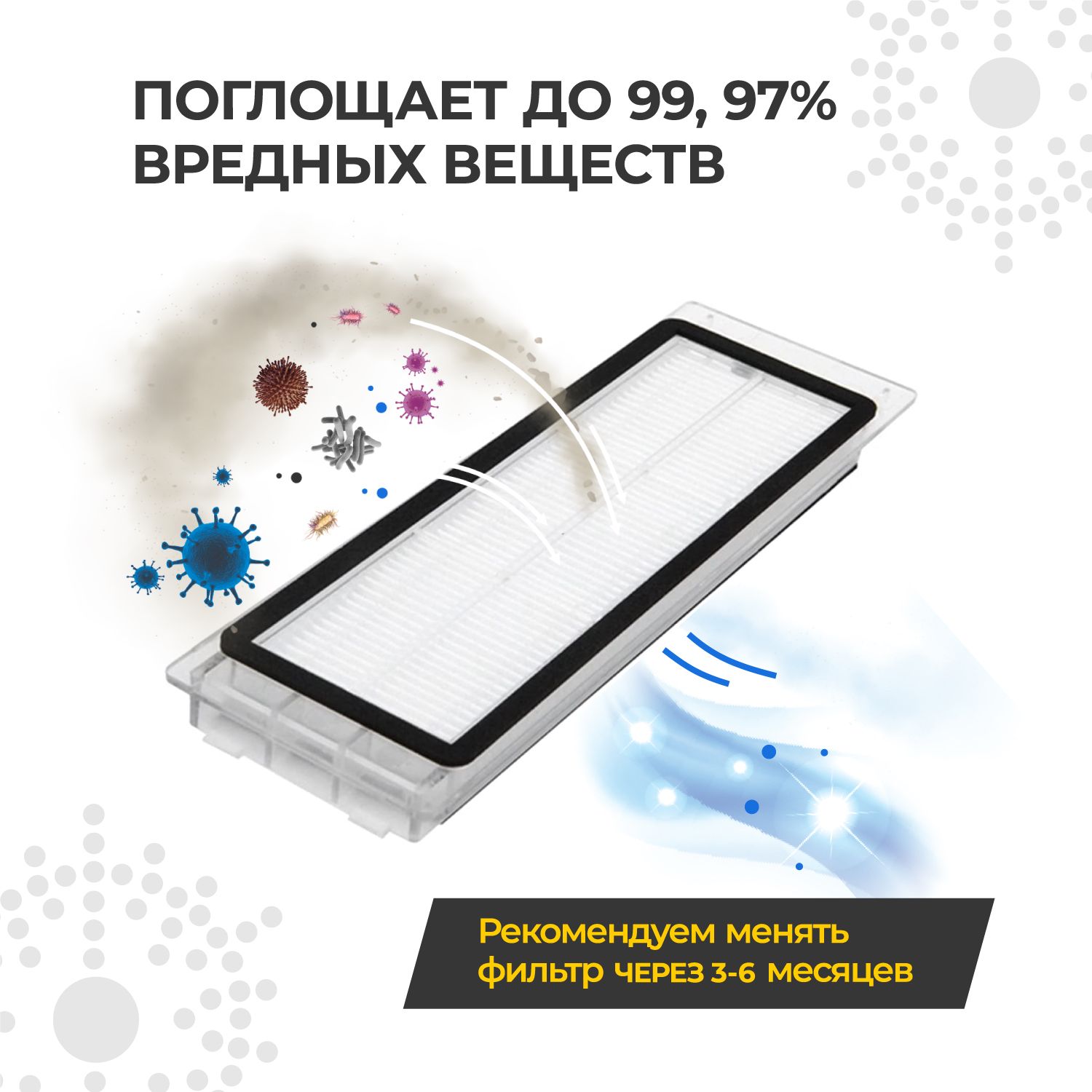 Фильтр для робота пылесоса xiaomi vacuum mop отличается высокой степенью фильтрации, фильтрует до 99,97% вредных веществ, обеспечивает качественную уборку во всем доме и эффективную очистку воздуха.