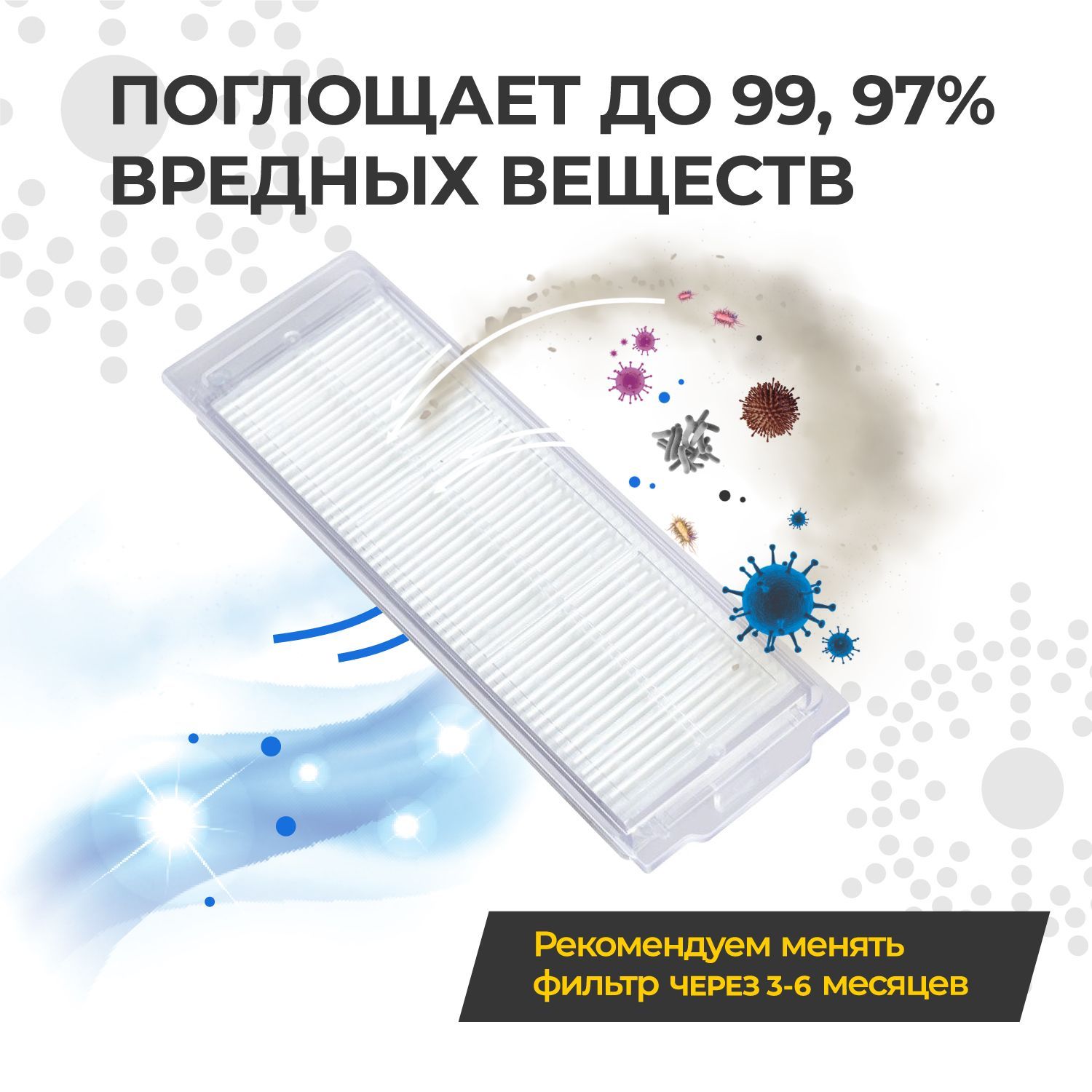 Фильтр для робота пылесоса xiaomi mijia отличается высокой степенью фильтрации, фильтрует до 99,97% вредных веществ, обеспечивает качественную уборку во всем доме и эффективную очистку воздуха.