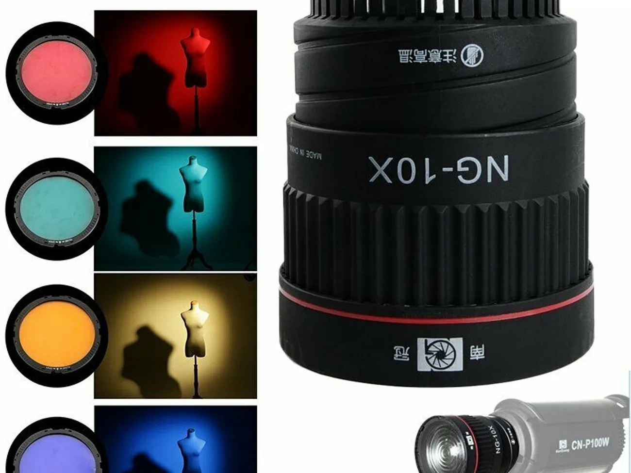 Four color filter(including yellow, red, green, blue filters) are provided and snap into the front focus lens. they're easy to snap on and can be changed quickly for creating color accents or special effects. Angle adjust from 10 ~ 40°. 5-10 times brighter when most focusing. Great light modifier for Bowens mounts spotlight studio light as Godox sl-60w sl-50w etc . It could replace grids and barn doors for your lights,especially for duplicating Hurrell-style Hollywood portraits.