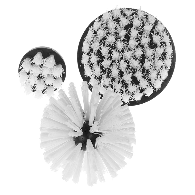 Этот комплект содержит нейлоновую щетку средней жесткости и может быть подключен к вашей любимой аккумуляторной дрели.