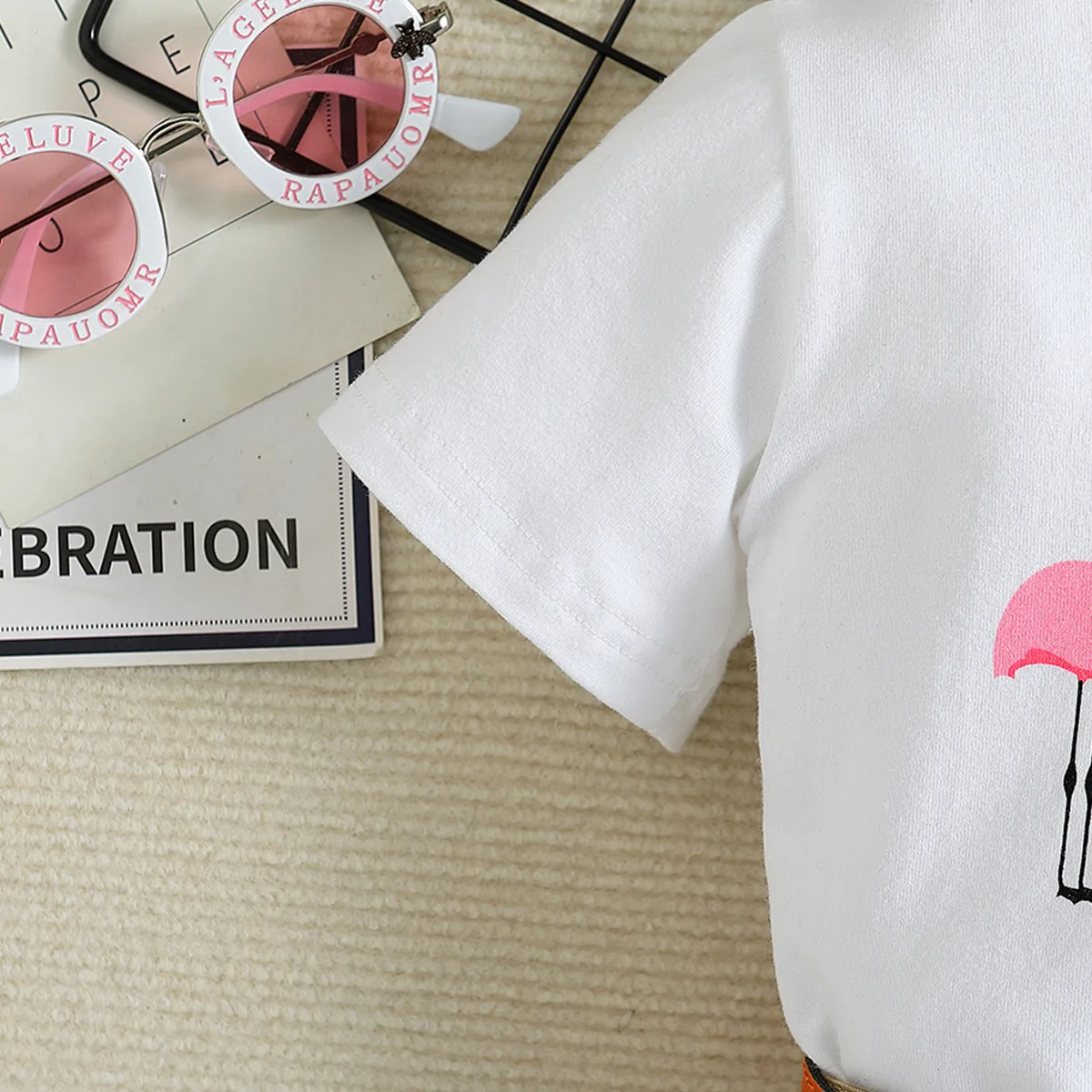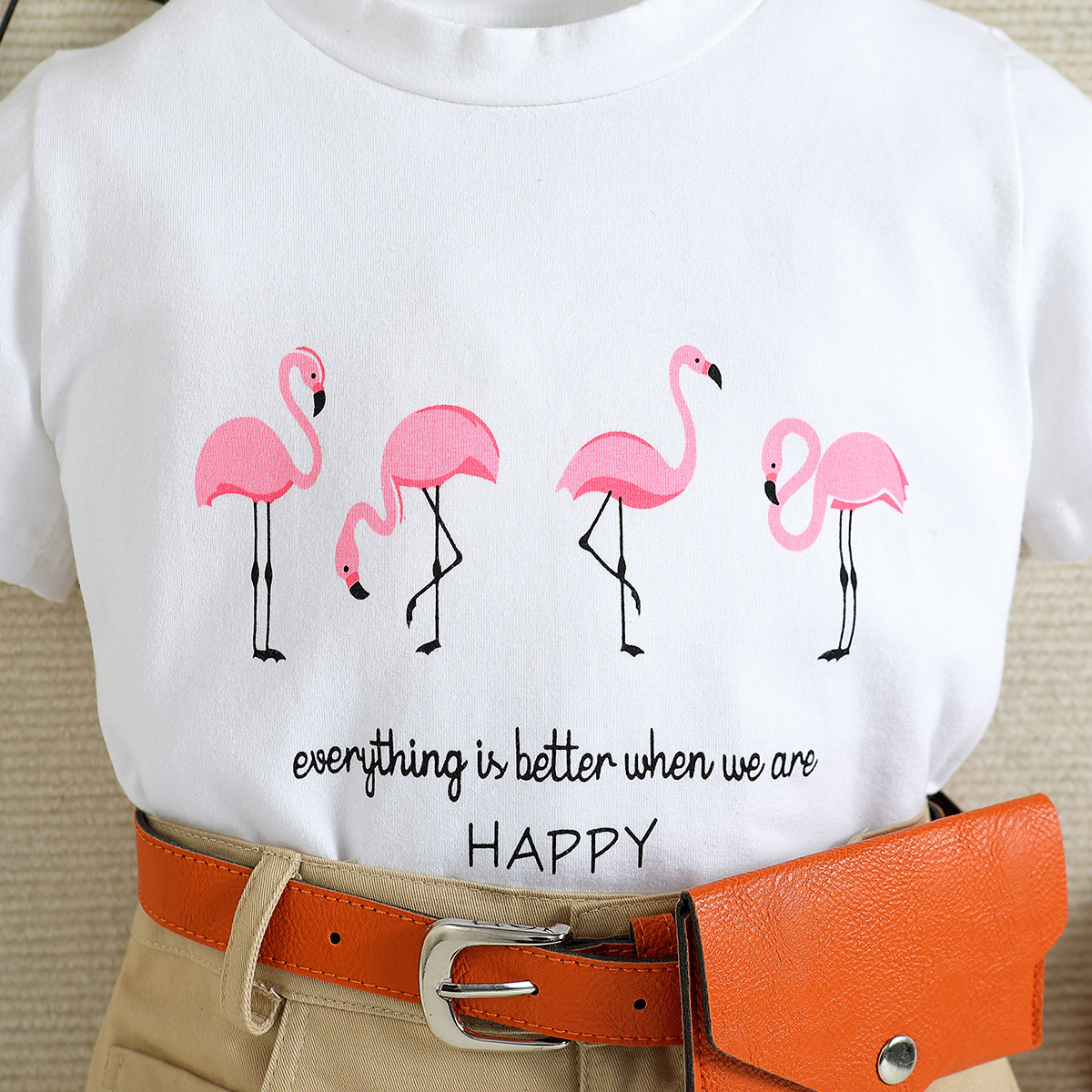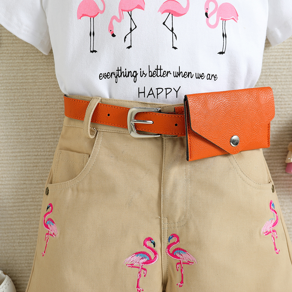 Комплект из 3 предметов, летняя детская одежда, модные корейские хлопковые топы с коротким рукавом и мультяшным принтом для девочек + шорты + пояс, Роскошная детская одежда BC599