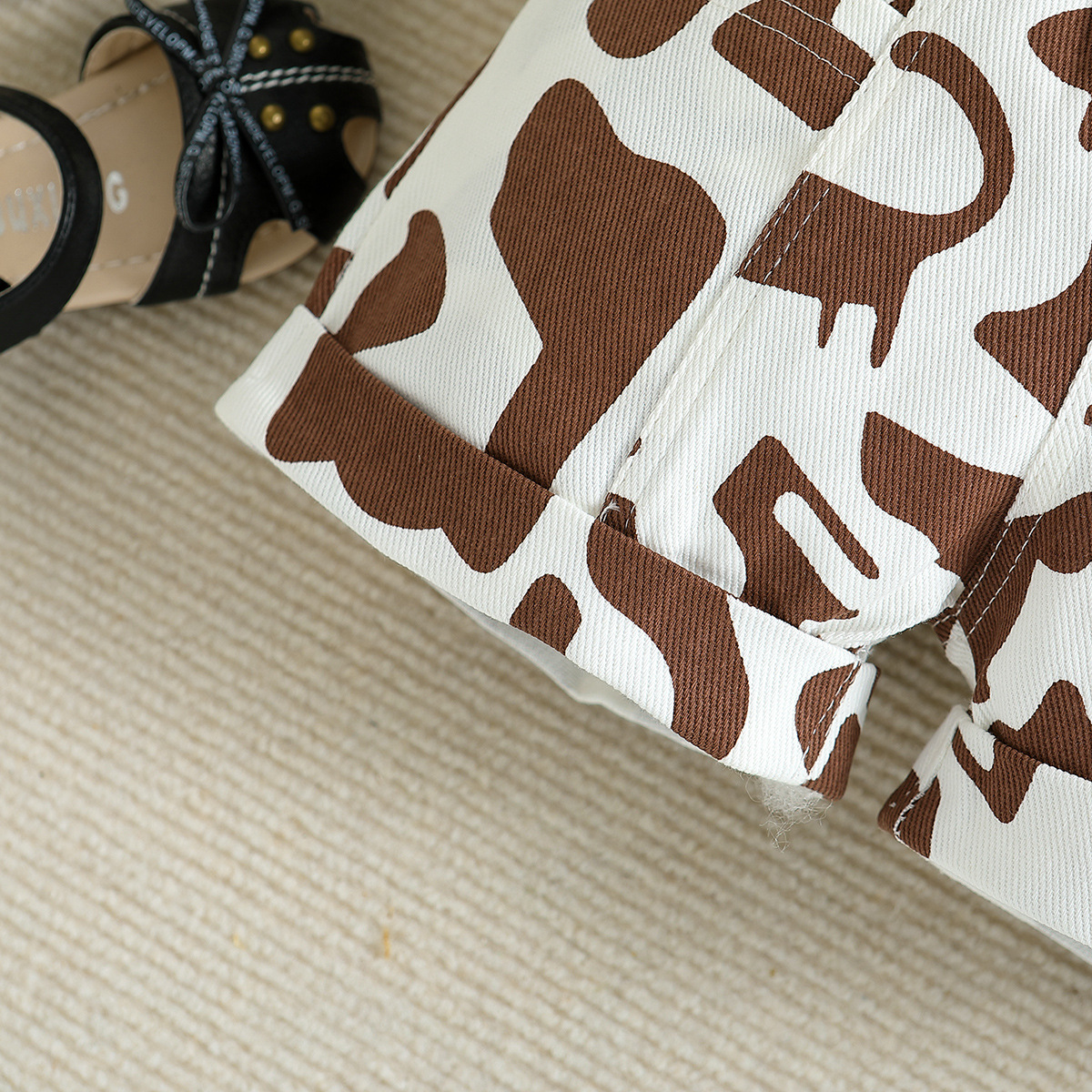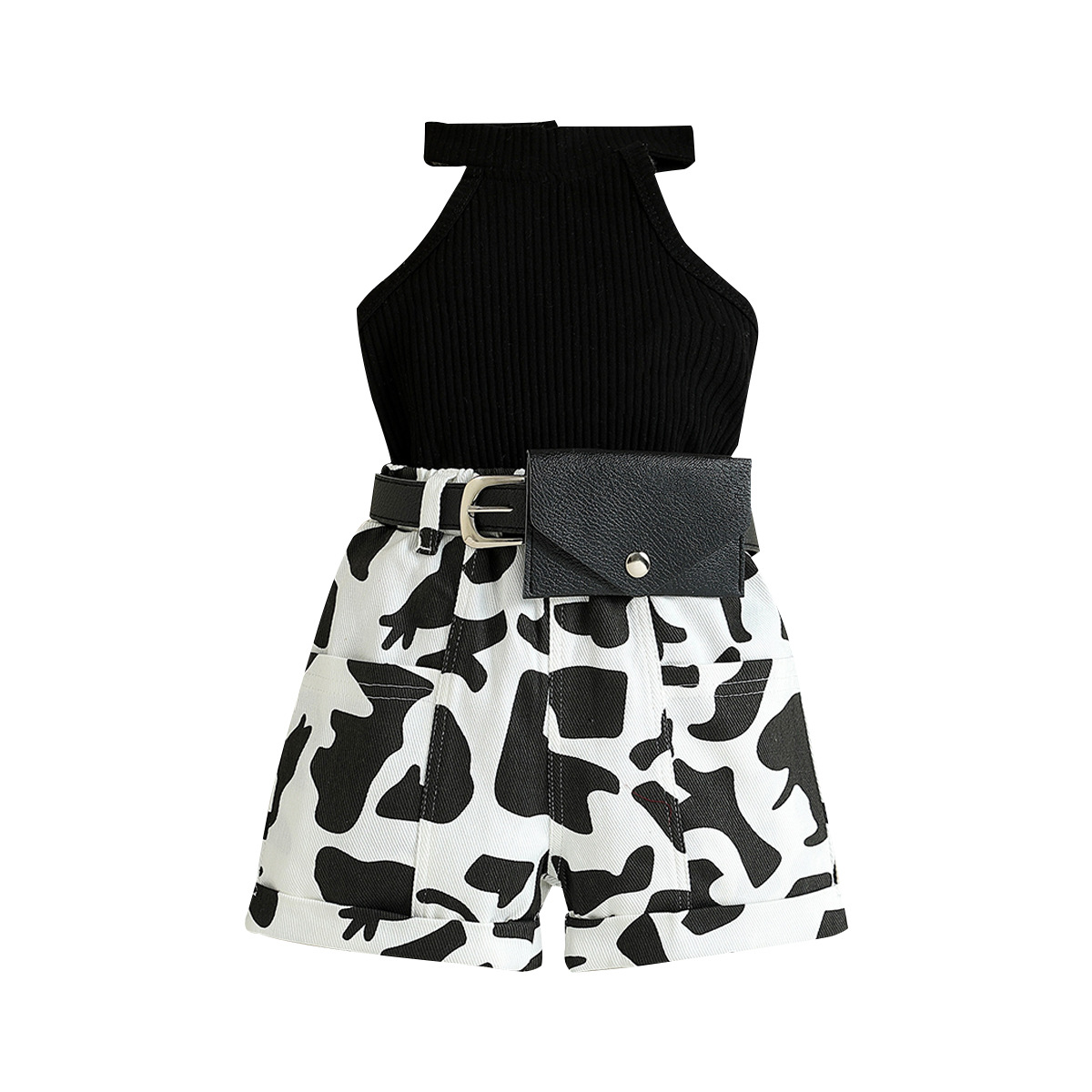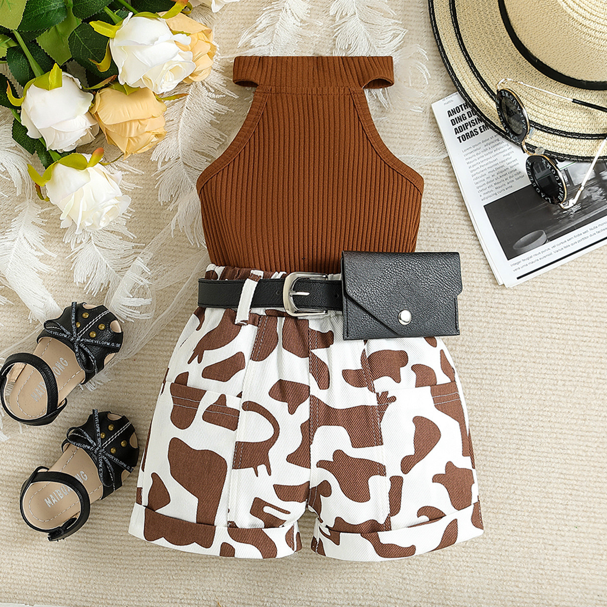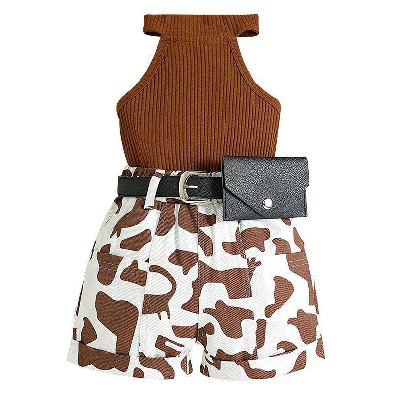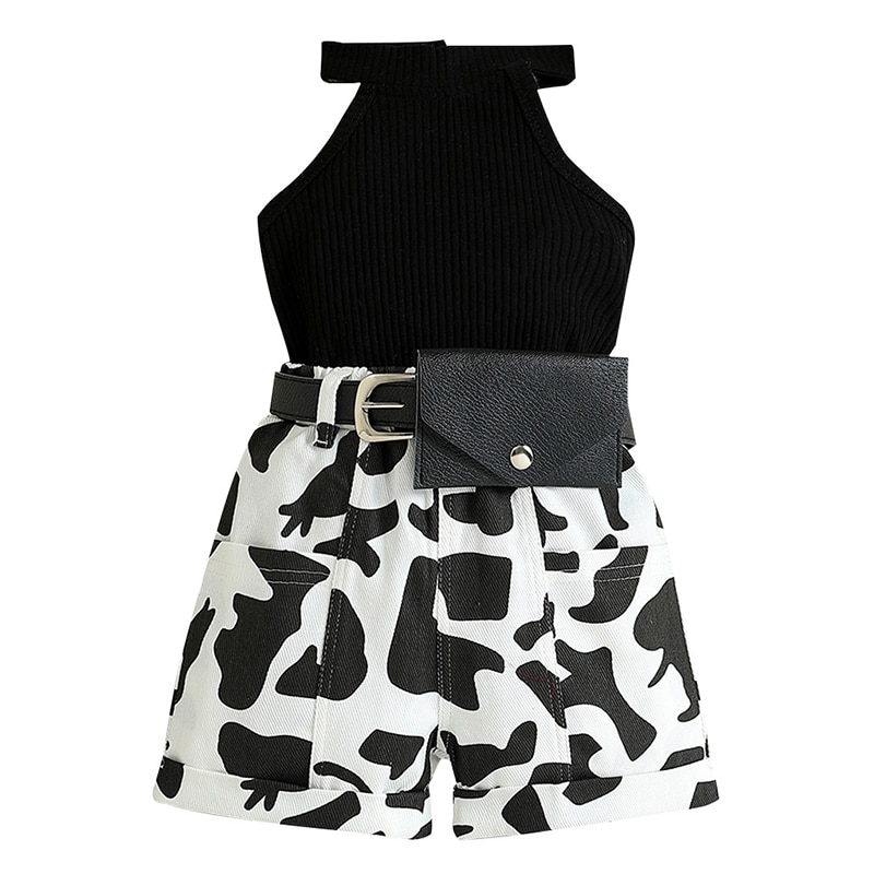 Комплект из 3 предметов, летняя роскошная одежда для малышей, модная детская одежда, топы без рукавов + шорты с принтом + пояс, эксклюзивные наряды для девочек BC596