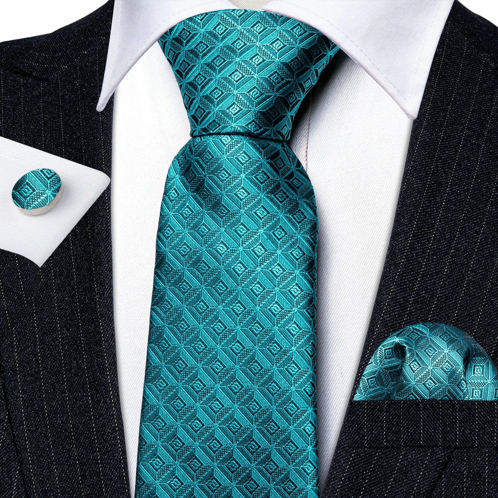 Комплект из галстука и запонок для мужчин, дизайнерский Шелковый Свадебный комплект с зеленым, синим клетчатым бабочкой, карманом и квадратными запонками Wang A-5999