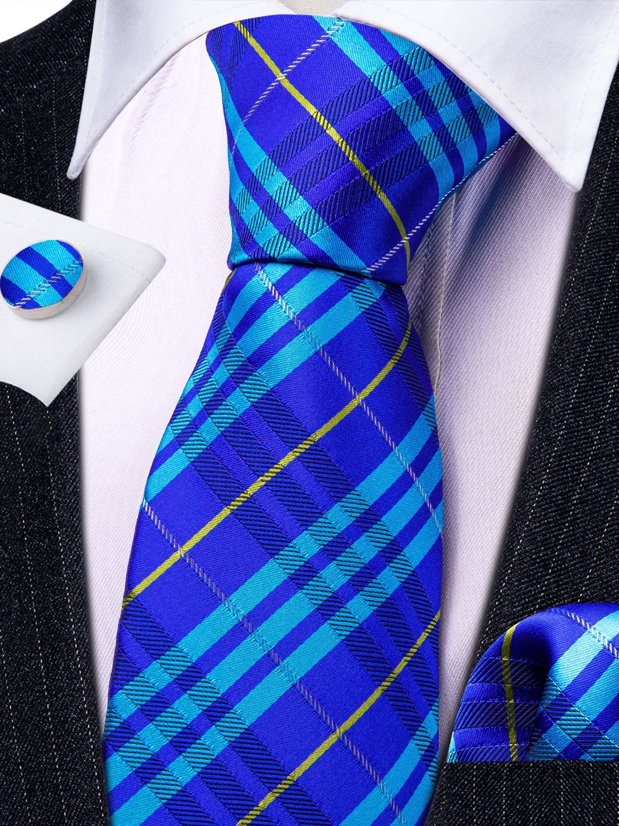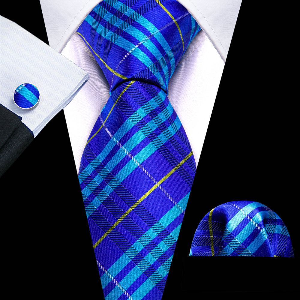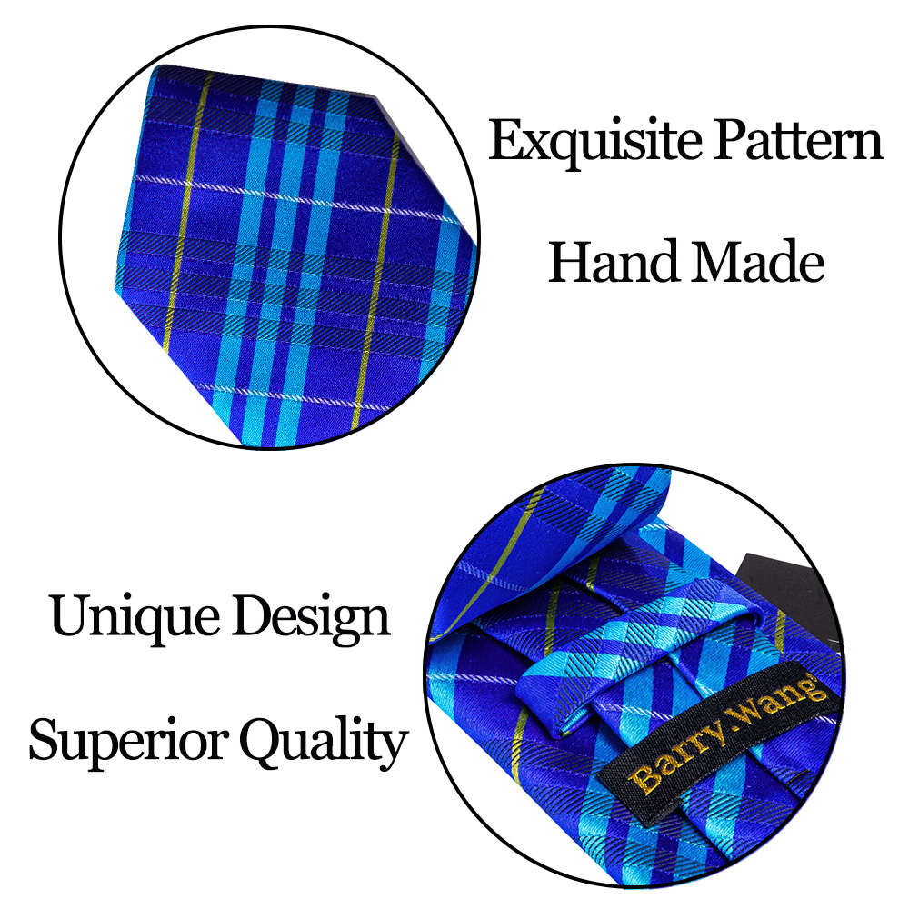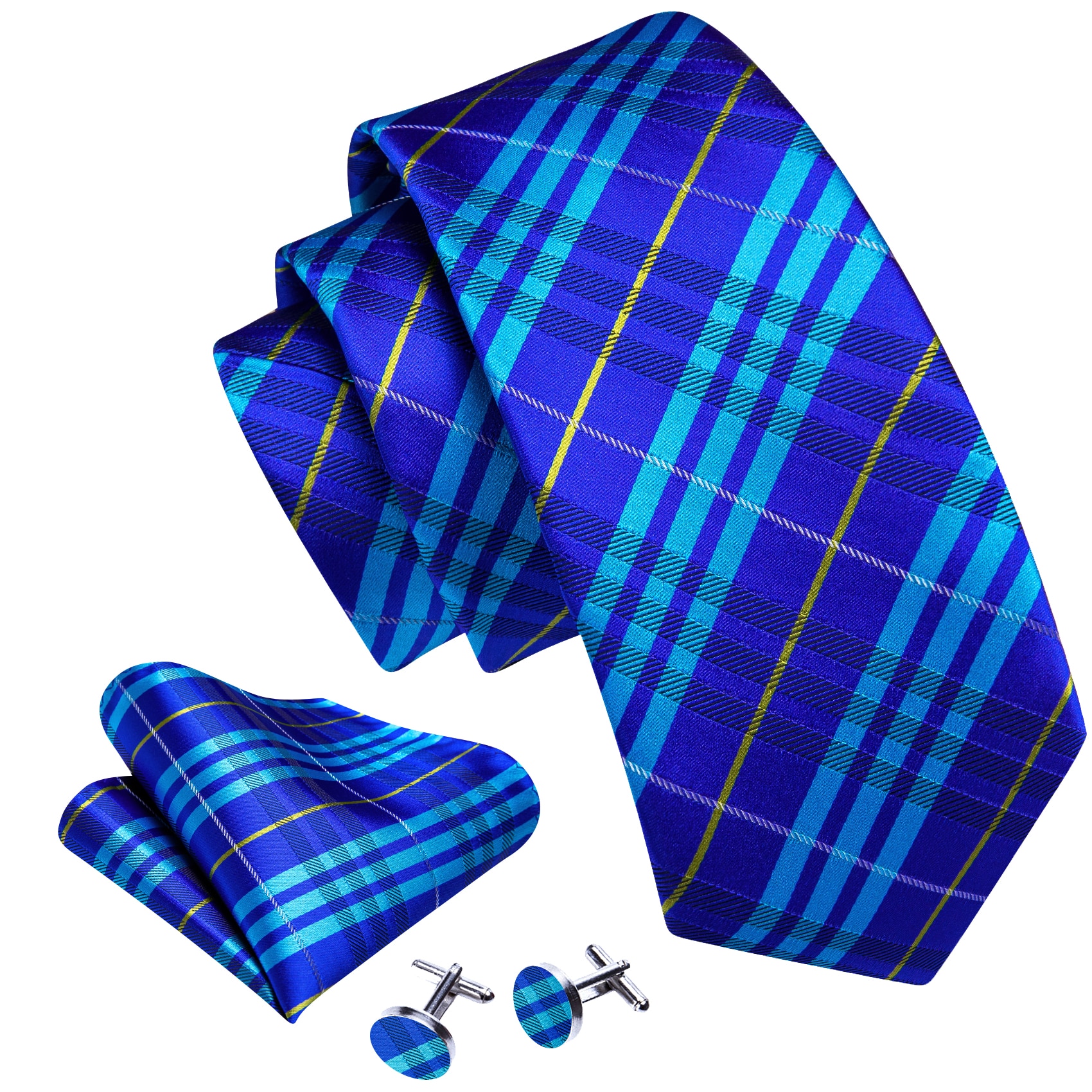 Королевский Синий Клетчатый Галстук Карманные Квадратные Запонки Набор Модный Шелковый Галстук Для Мужчин Свадебный Бизнес День Рождения Дизайнер Barry.Wang