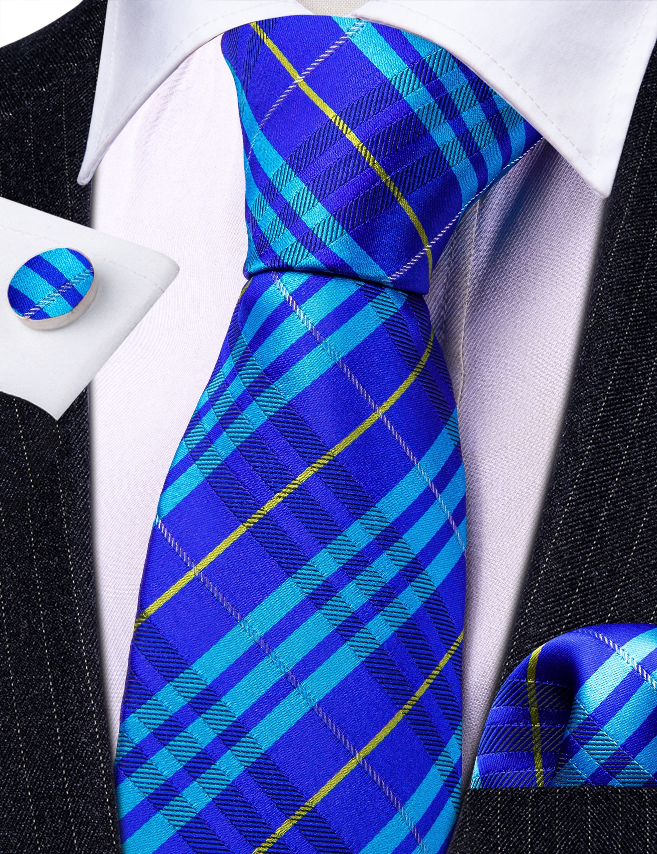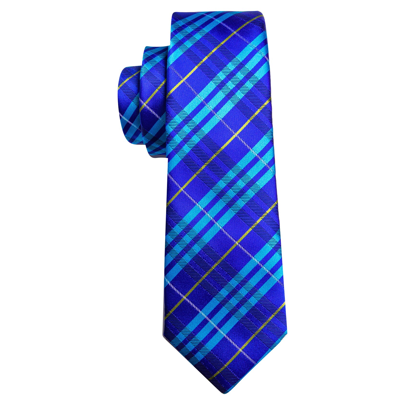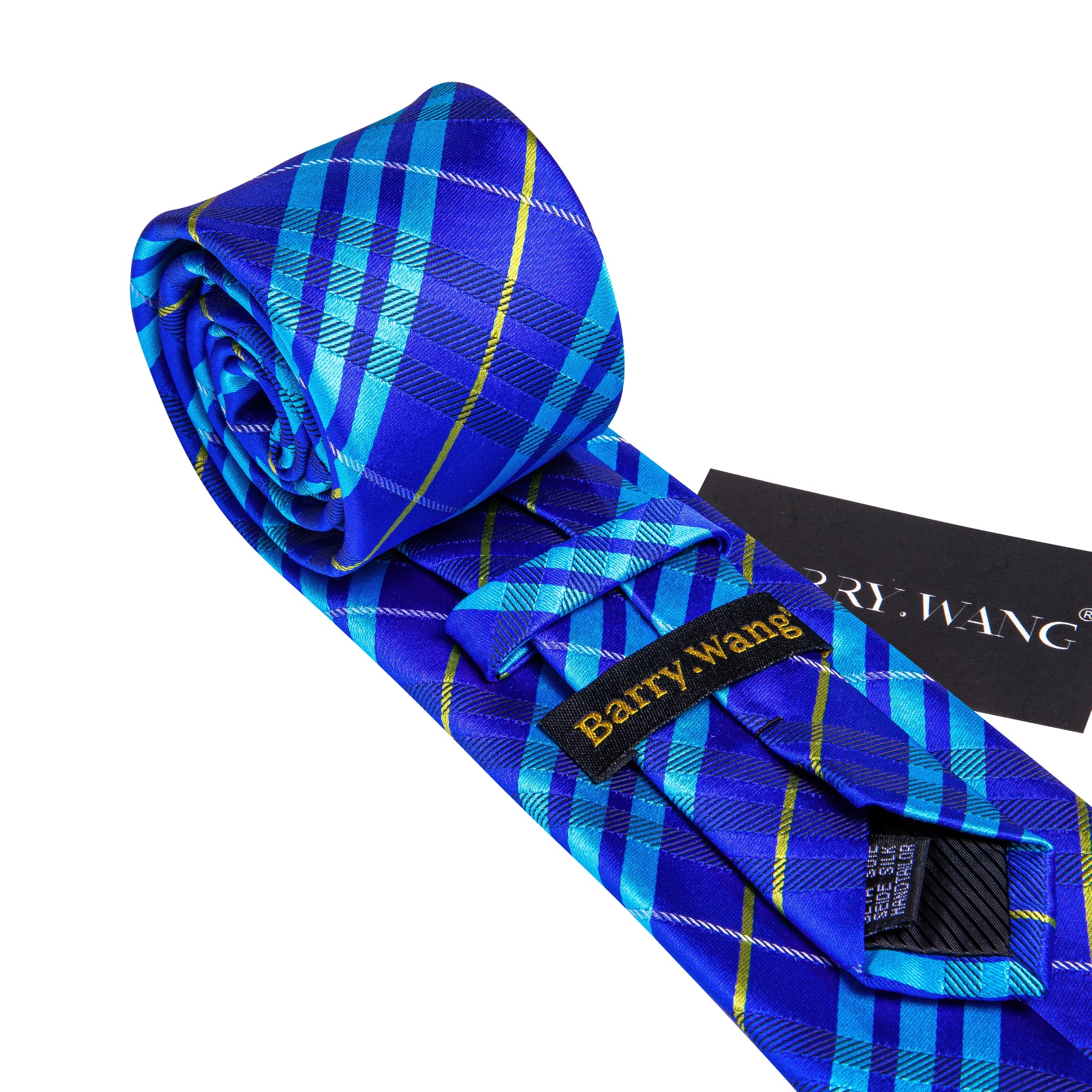 Королевский Синий Клетчатый Галстук Карманные Квадратные Запонки Набор Модный Шелковый Галстук Для Мужчин Свадебный Бизнес День Рождения Дизайнер Barry.Wang
