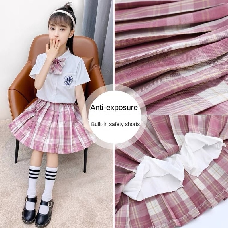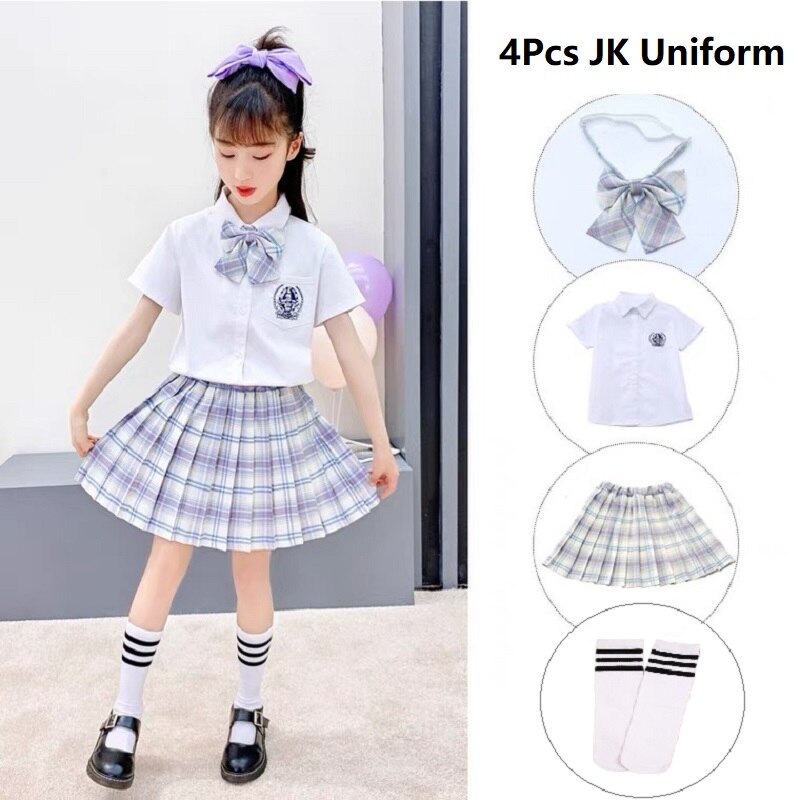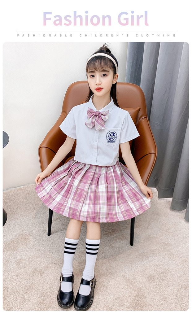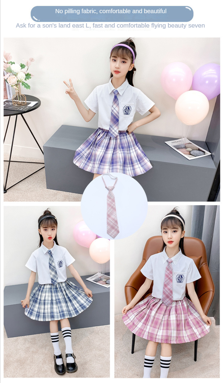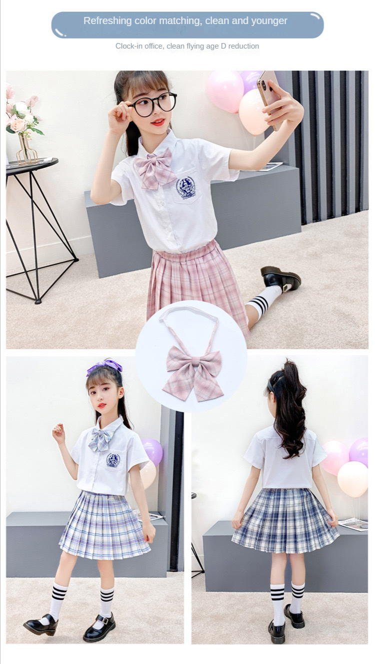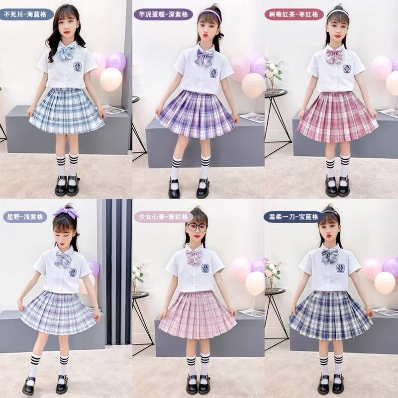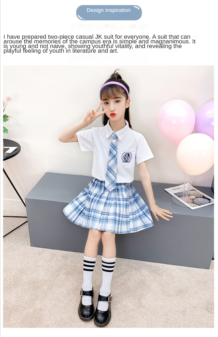 Комплект классической одежды JK для девочек, летний детский топ с коротким рукавом и юбка принцессы, костюмы из 2 предметов, школьная форма с галстуком и носком