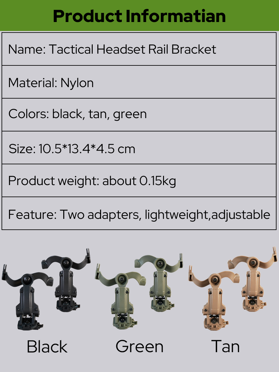 Пакет включает:1 * кронштейн для тактической гарнитуры