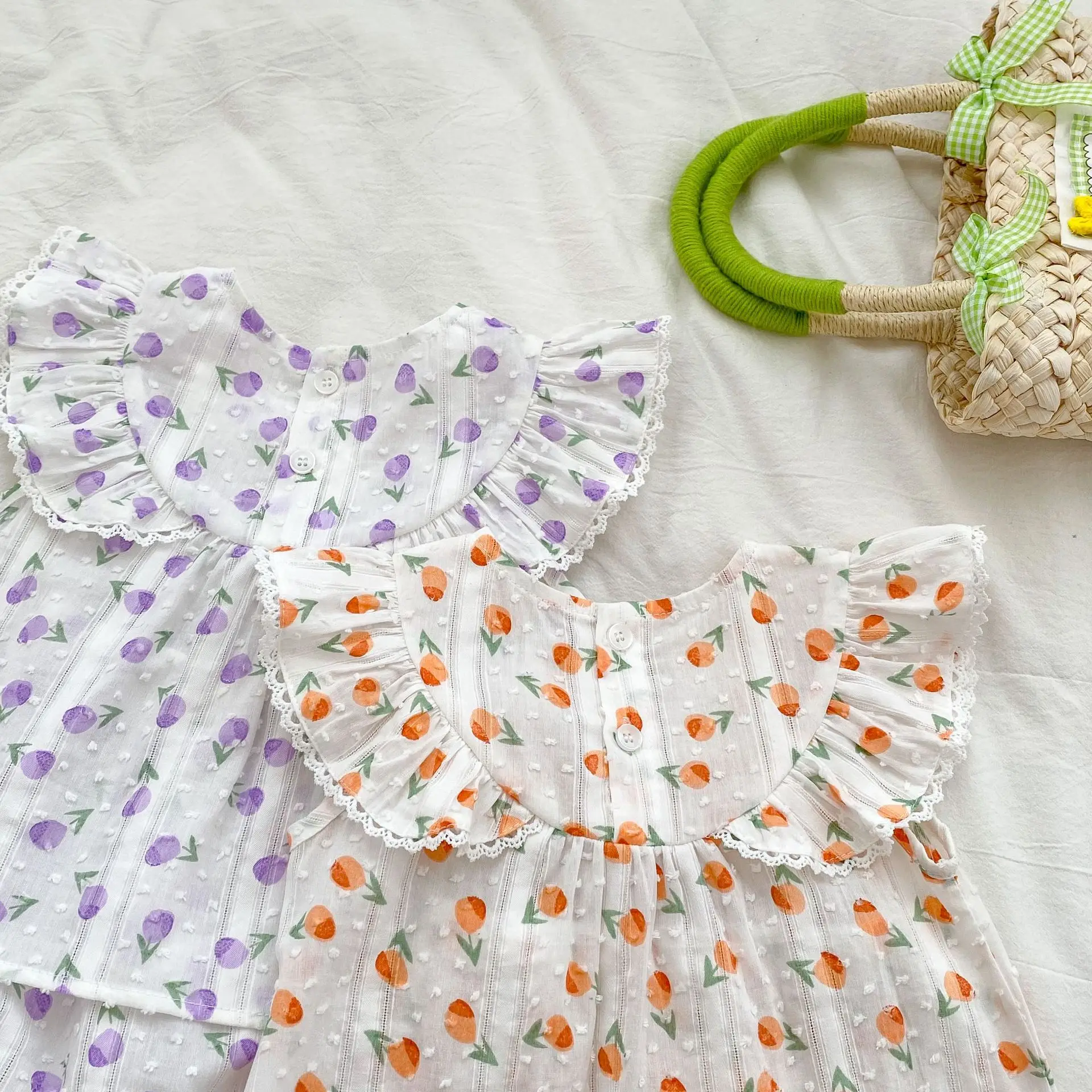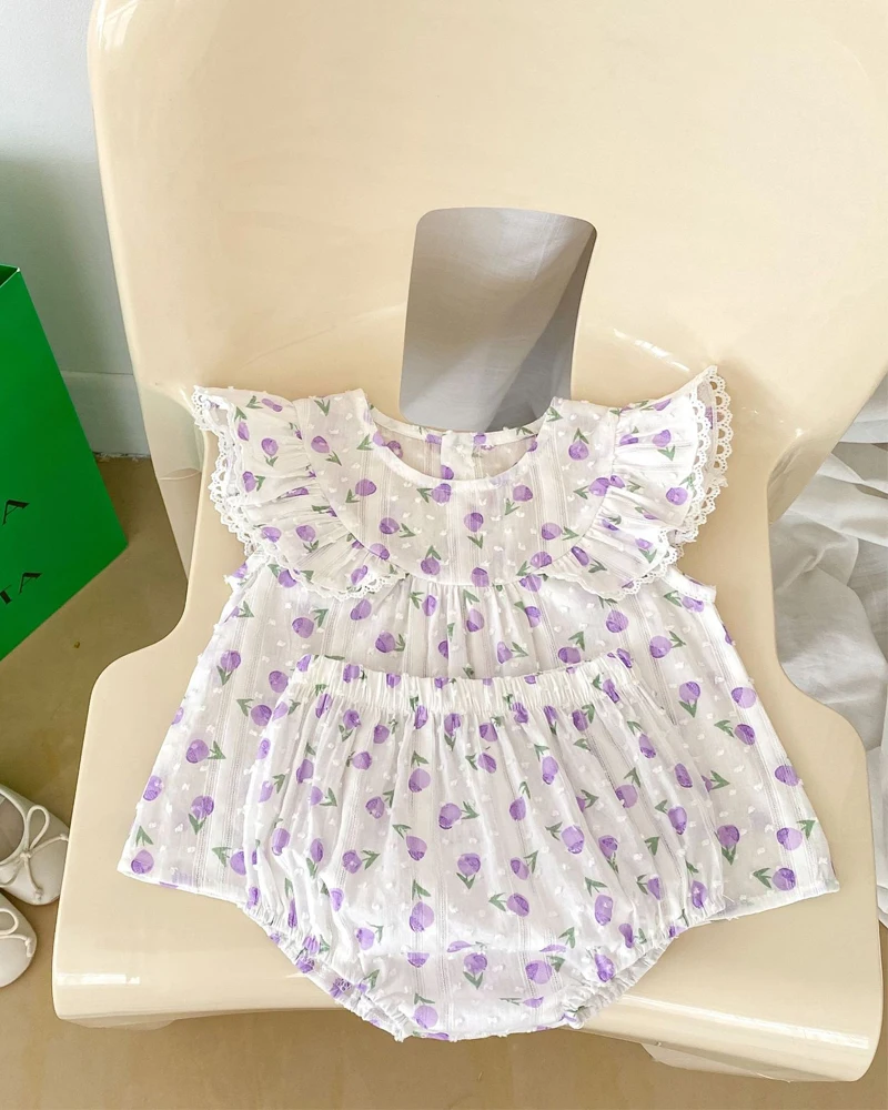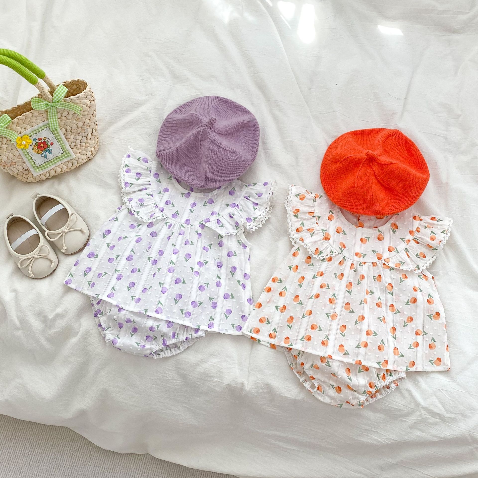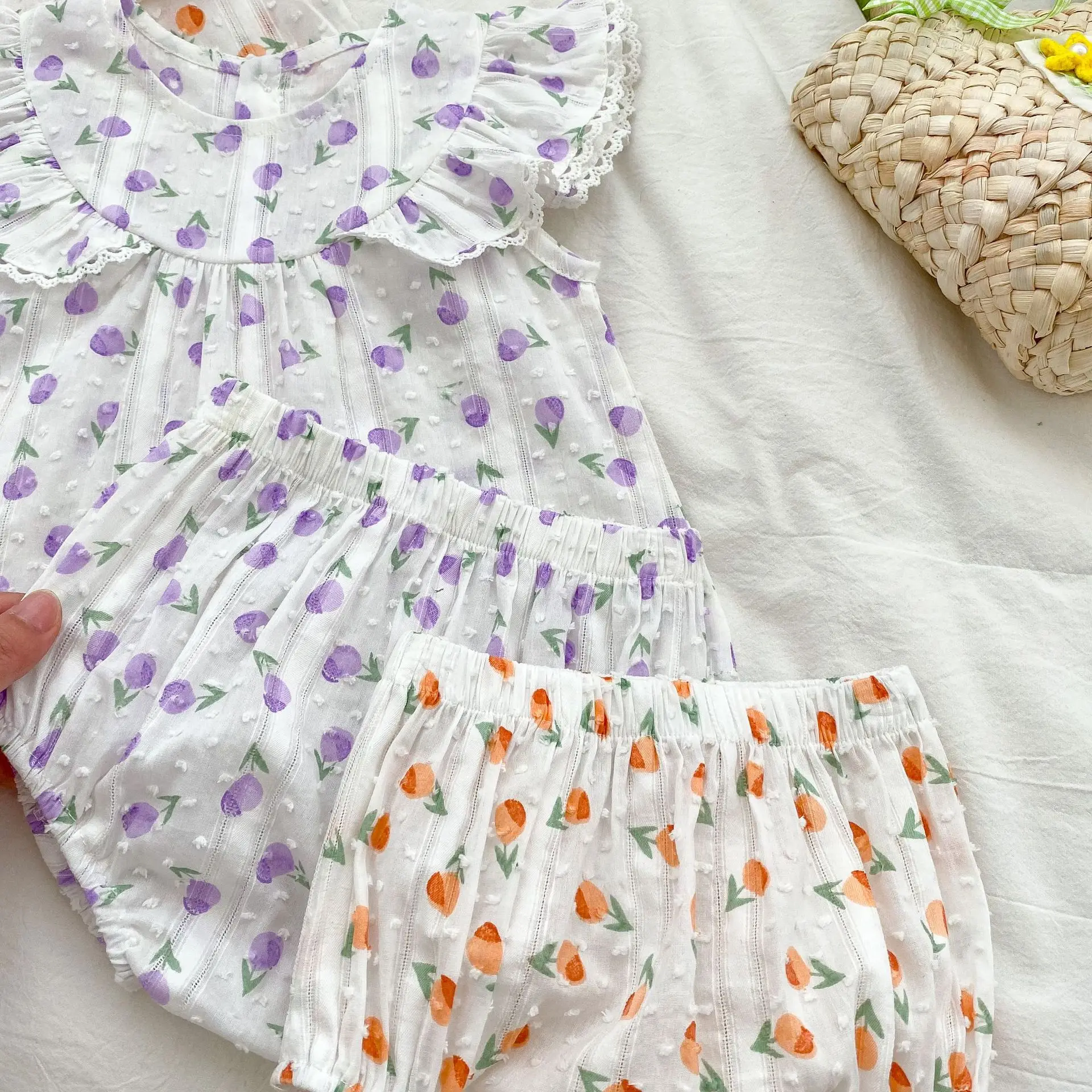 Комплект летней детской одежды 2023 года, цветочный костюм для девочек, модная рубашка с рукавами-тюльпанами для кукол + хлопковые шорты, комплект из 2 предметов для маленьких девочек