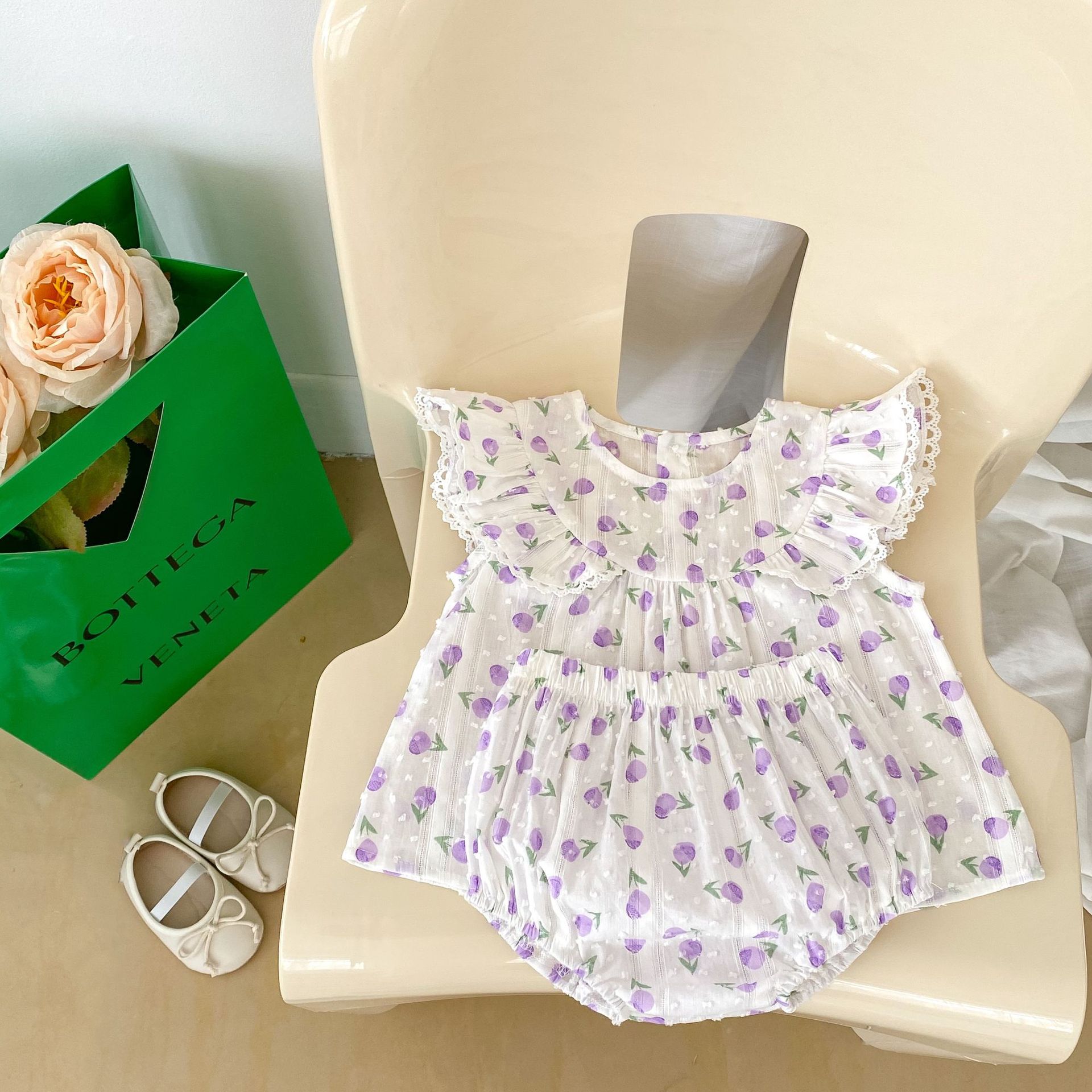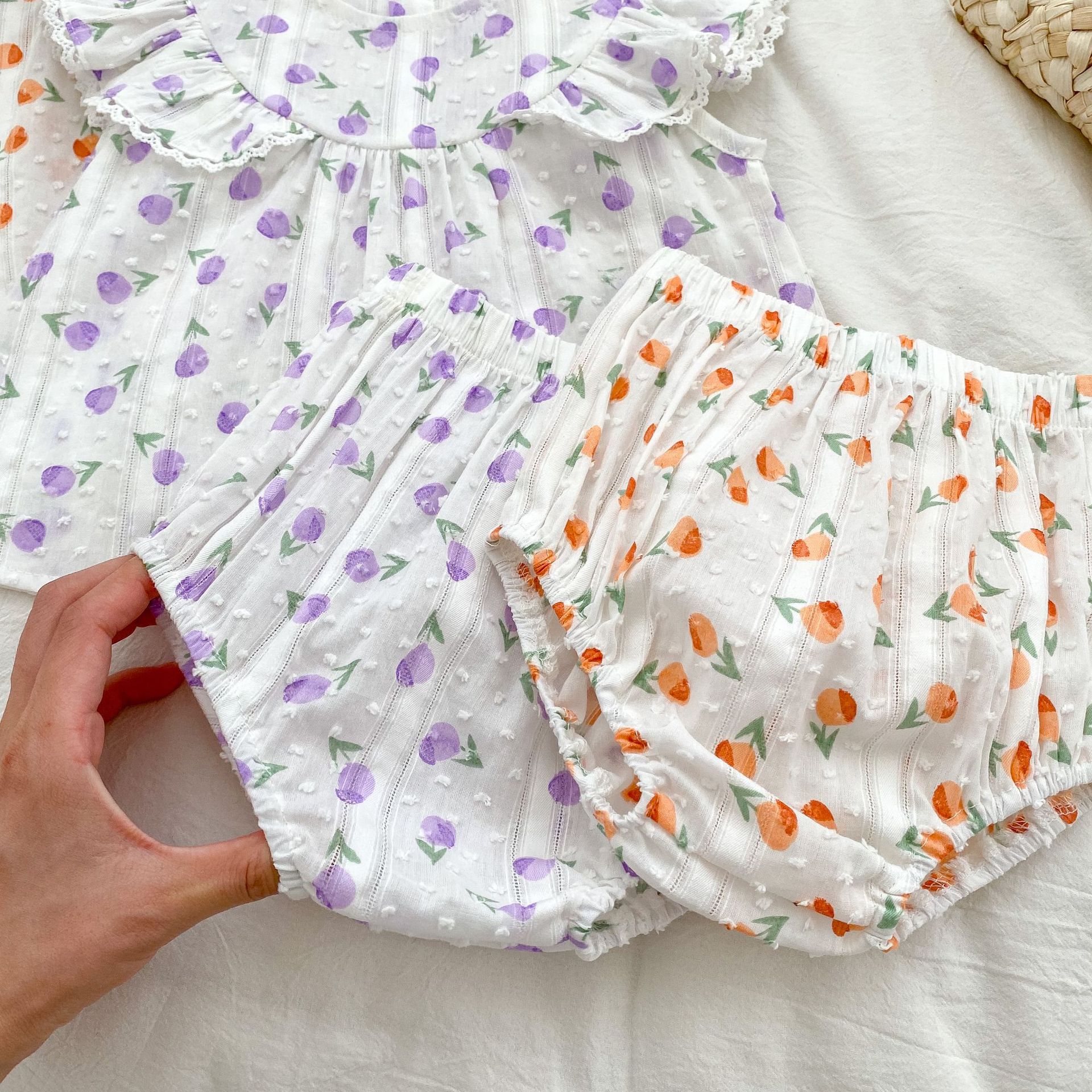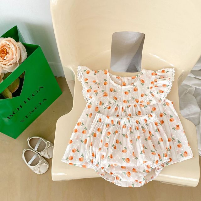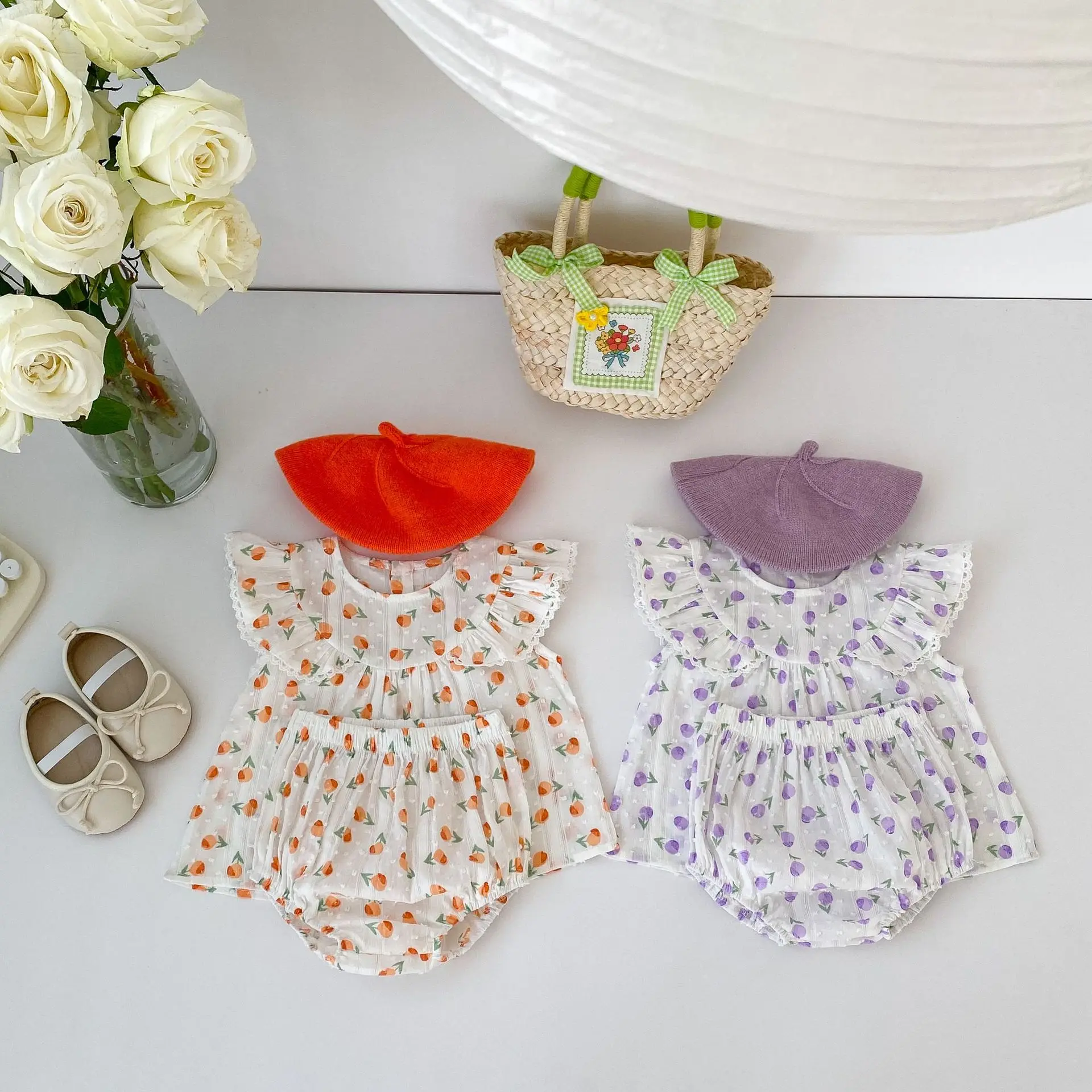 Комплект летней детской одежды 2023 года, цветочный костюм для девочек, модная рубашка с рукавами-тюльпанами для кукол + хлопковые шорты, комплект из 2 предметов для маленьких девочек