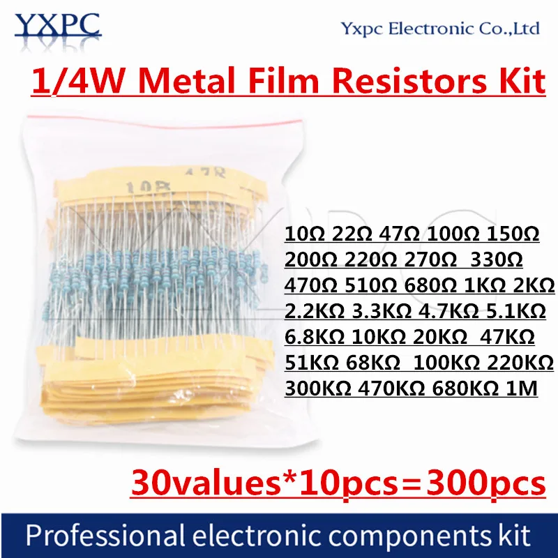 Комплект металлических пленочных резисторов 10 Ом ~ 1 м ом 1 к 300 к 10 к 1% к 220 к 100 Ом