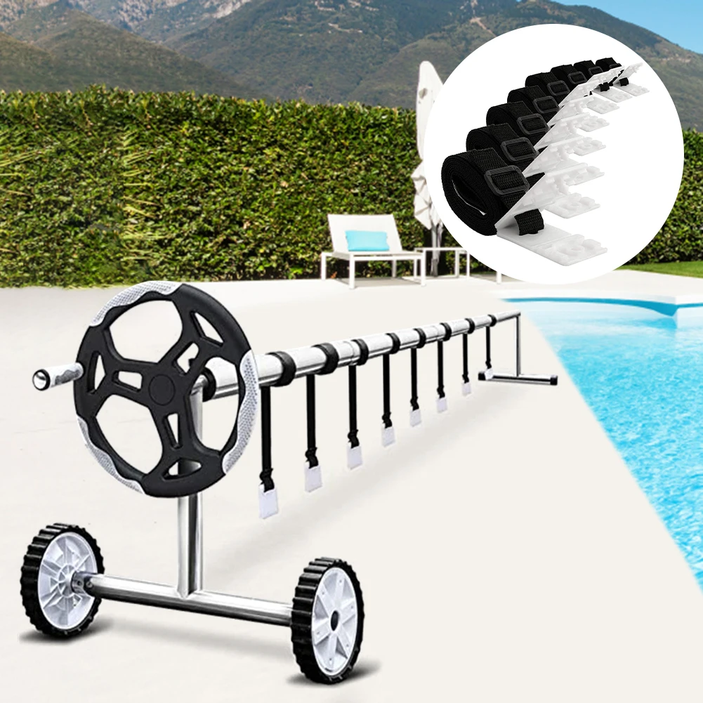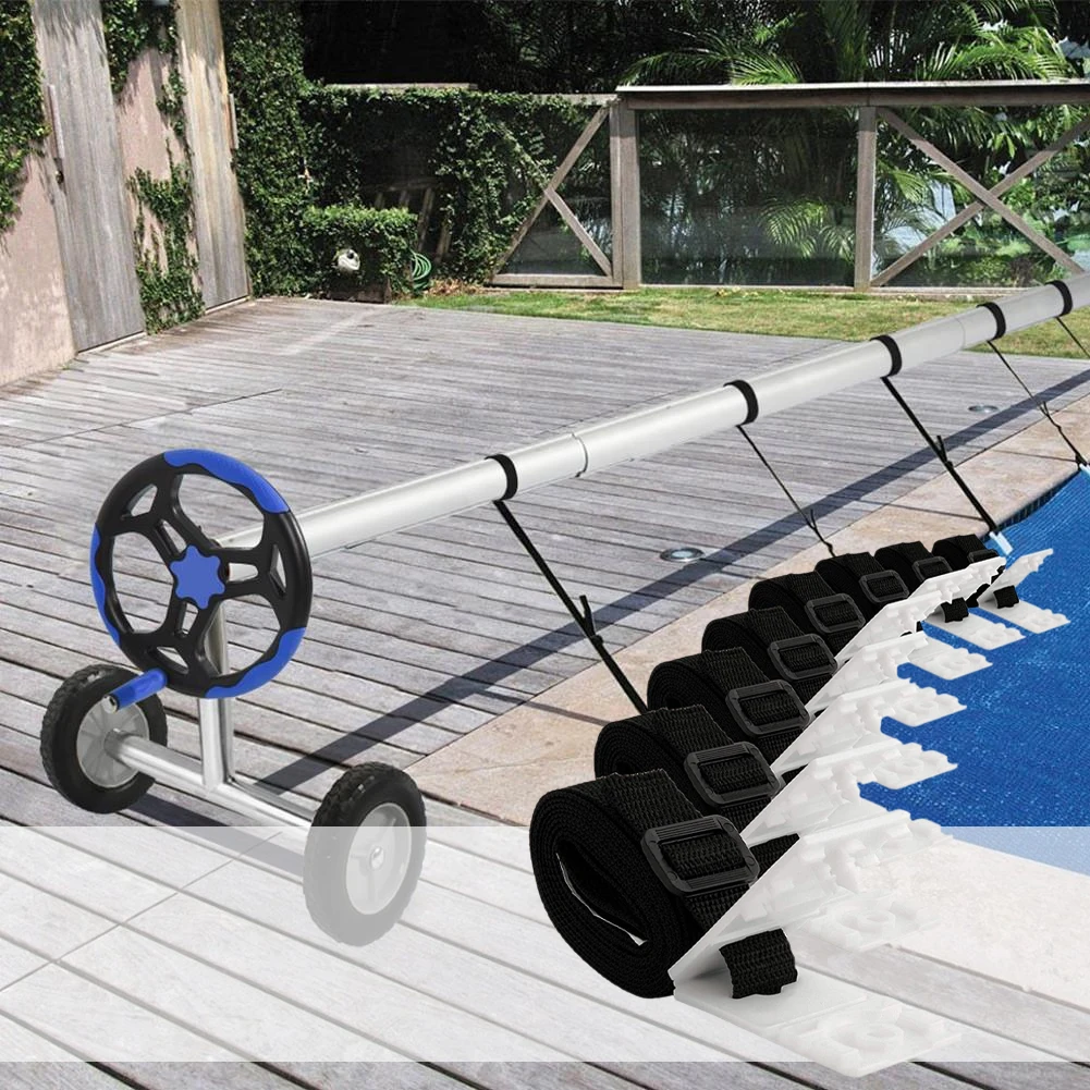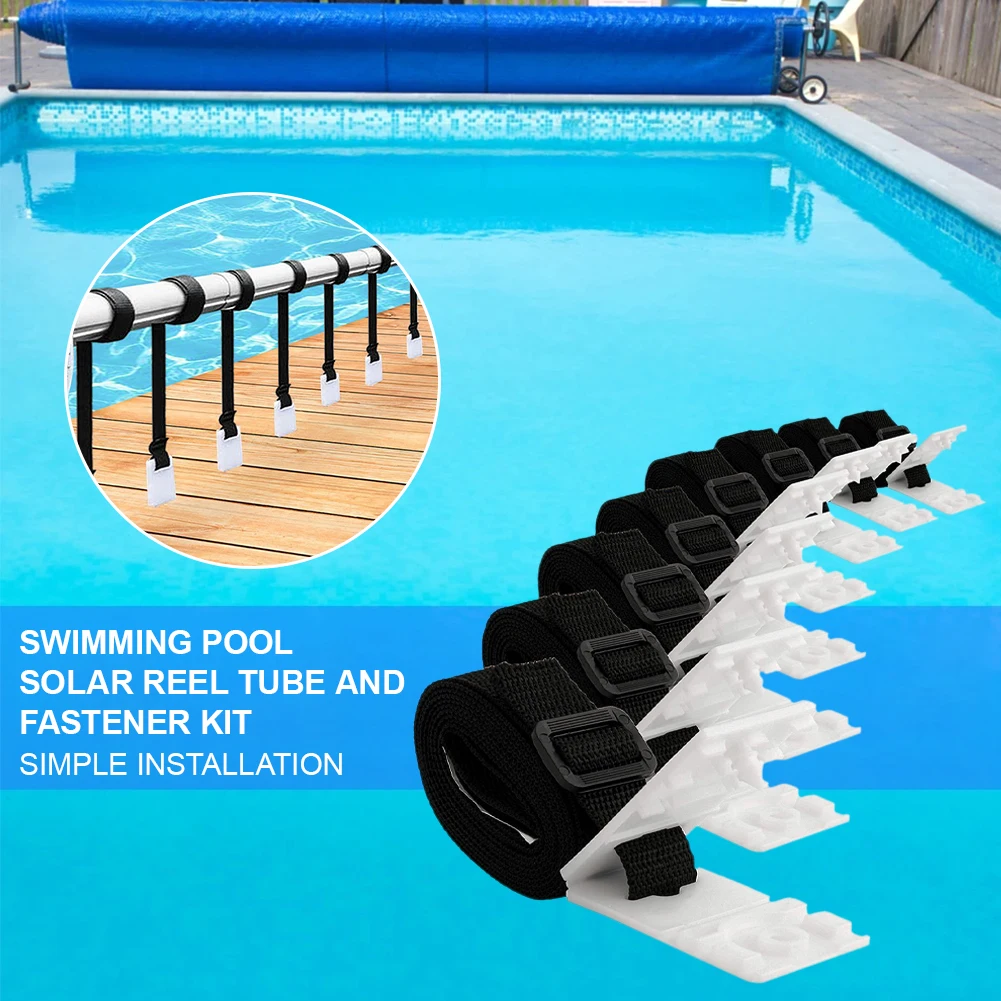 Комплект насадок для катушки солнечной крышки бассейна, 8 ремней для одеяла + 8 пряжек + 8 зажимов для улицы в наземном бассейне