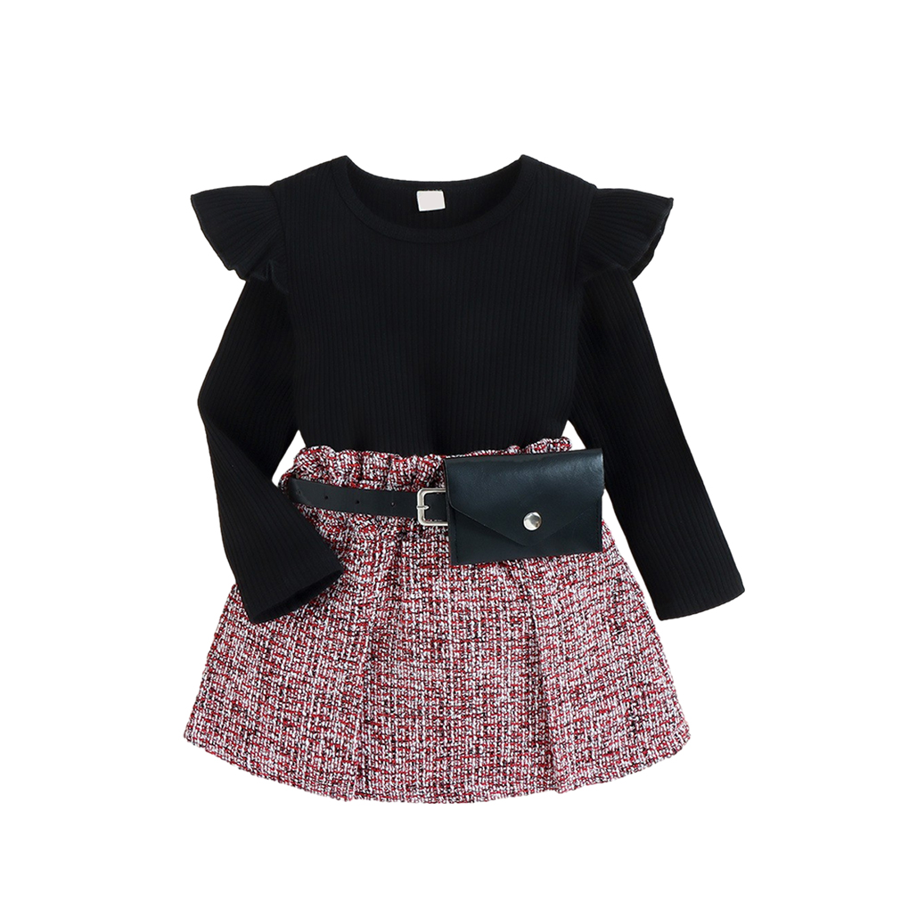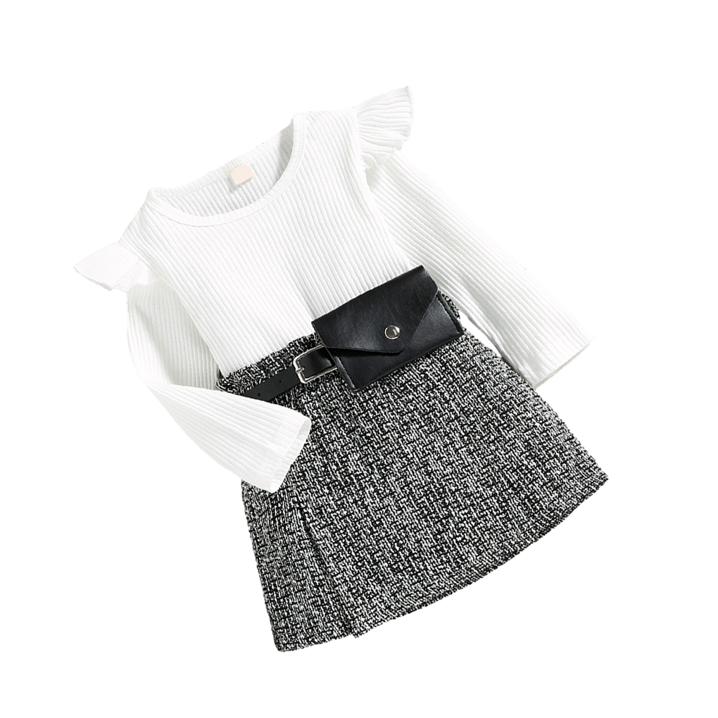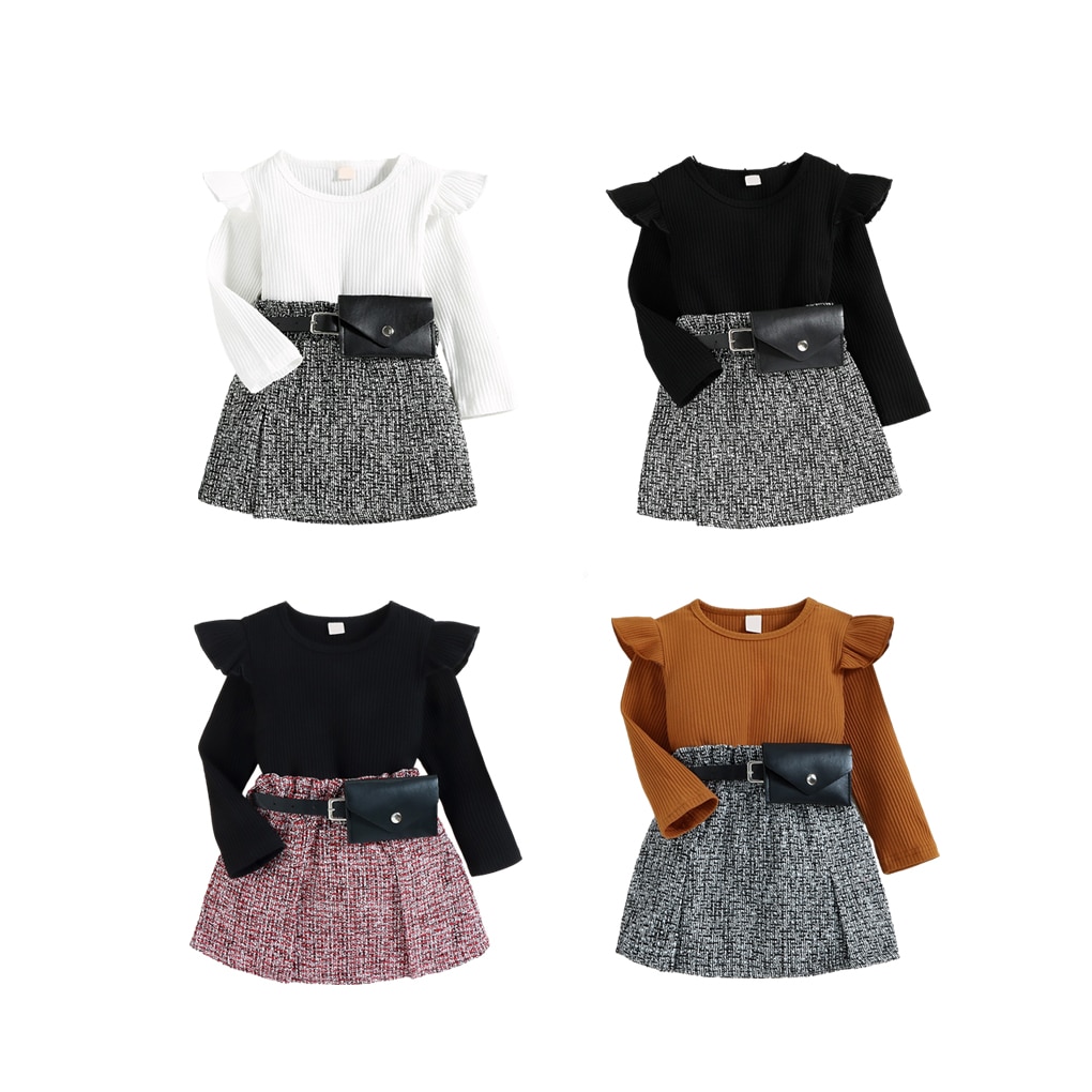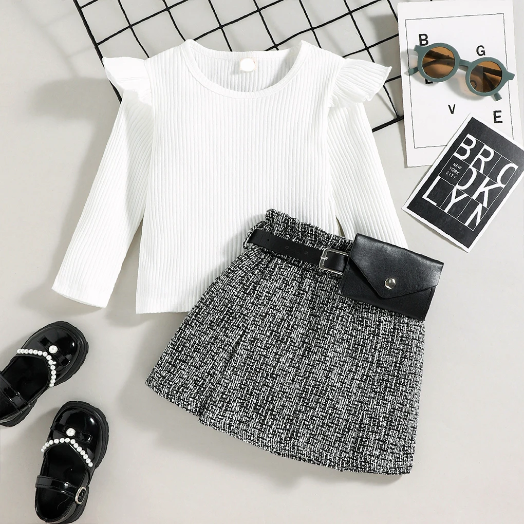 Комплект одежды для девочек из 3 предметов, топ с поясом и короткая юбка, модная повседневная одежда для выступлений