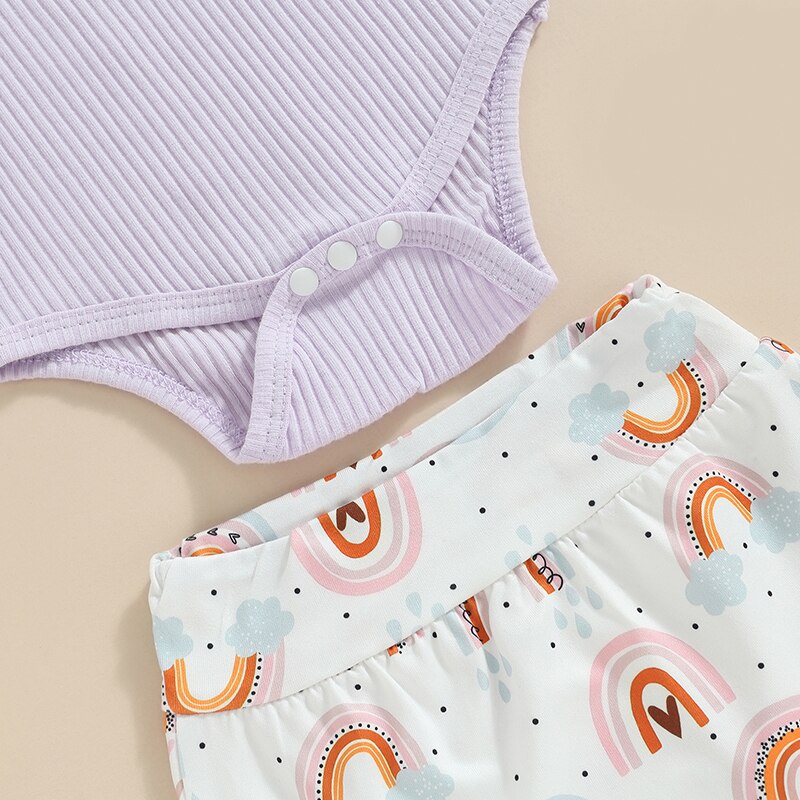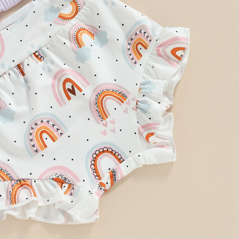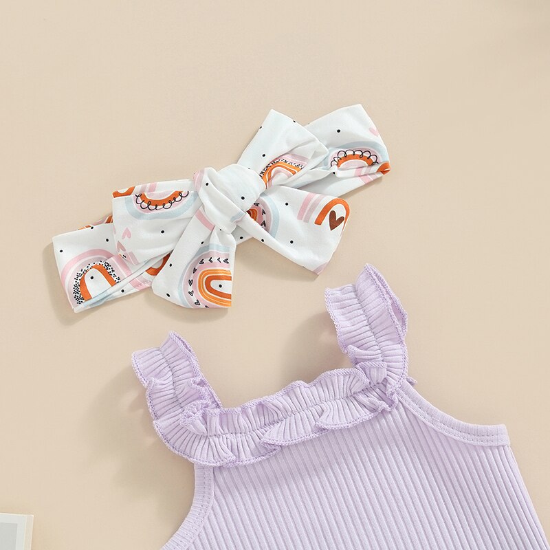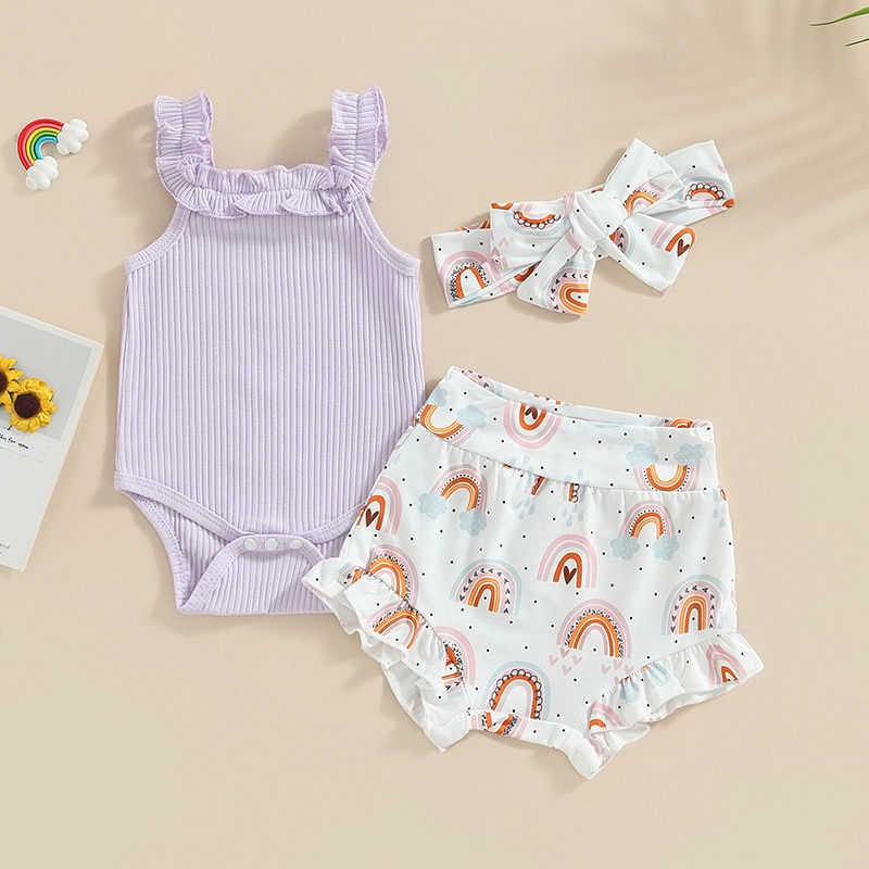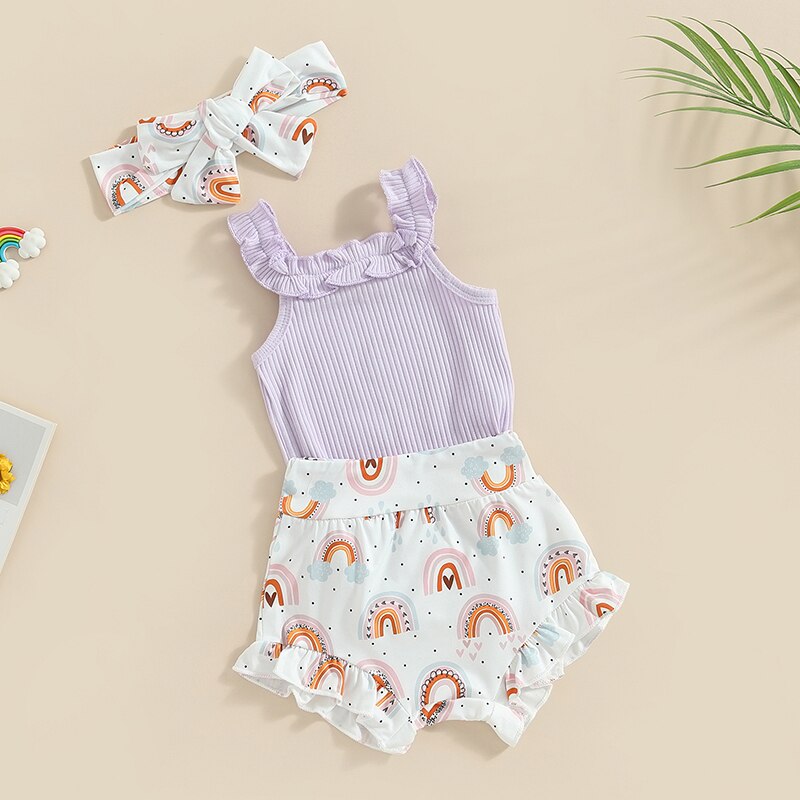 Комплект одежды для девочек Mildsown из шорт, комбинезон без рукавов с радужным принтом, шорты с оборками на Подоле и повязка на голову, летний комплект из 3 предметов