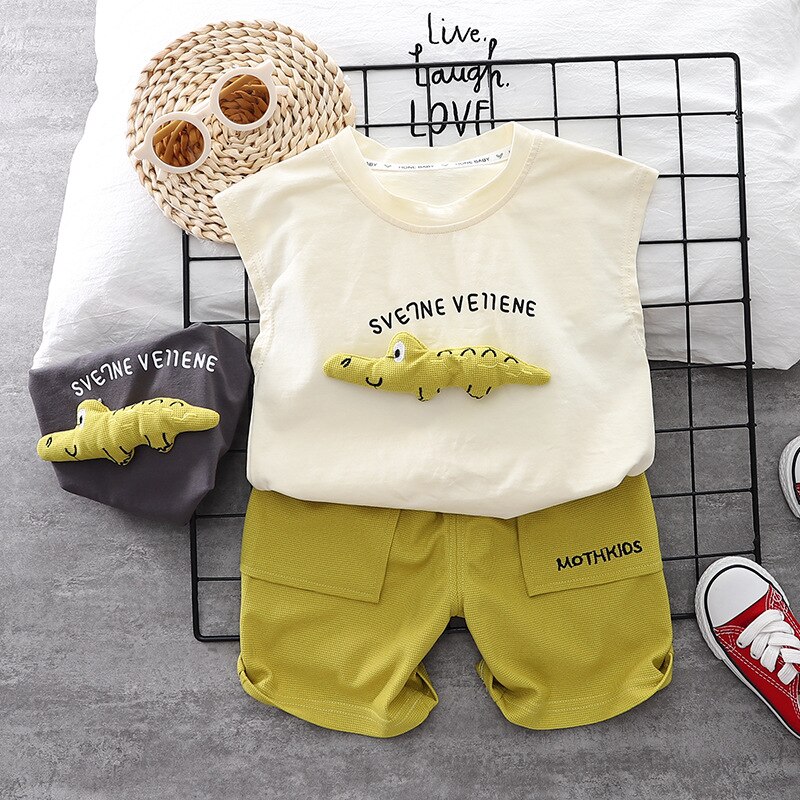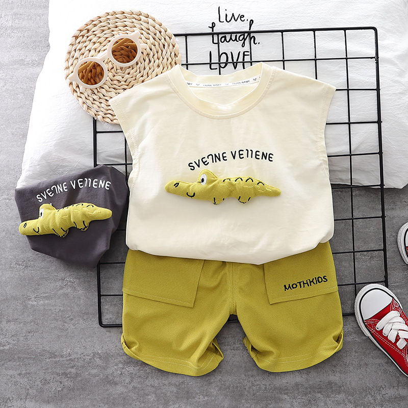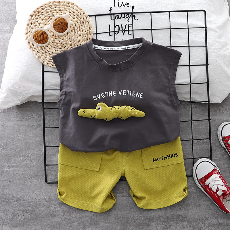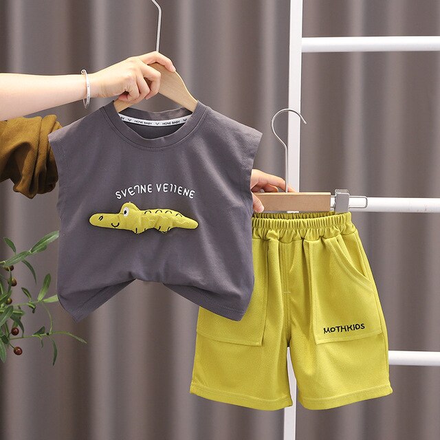 Комплект одежды для мальчиков из 2 предметов, без рукавов, с круглым вырезом и надписью «крокодил»