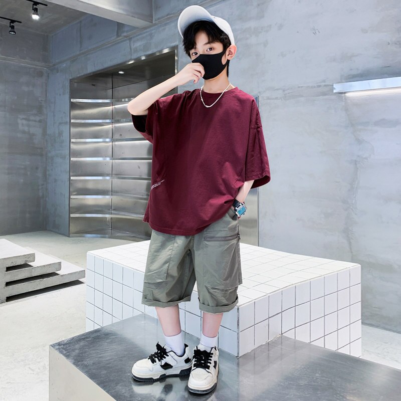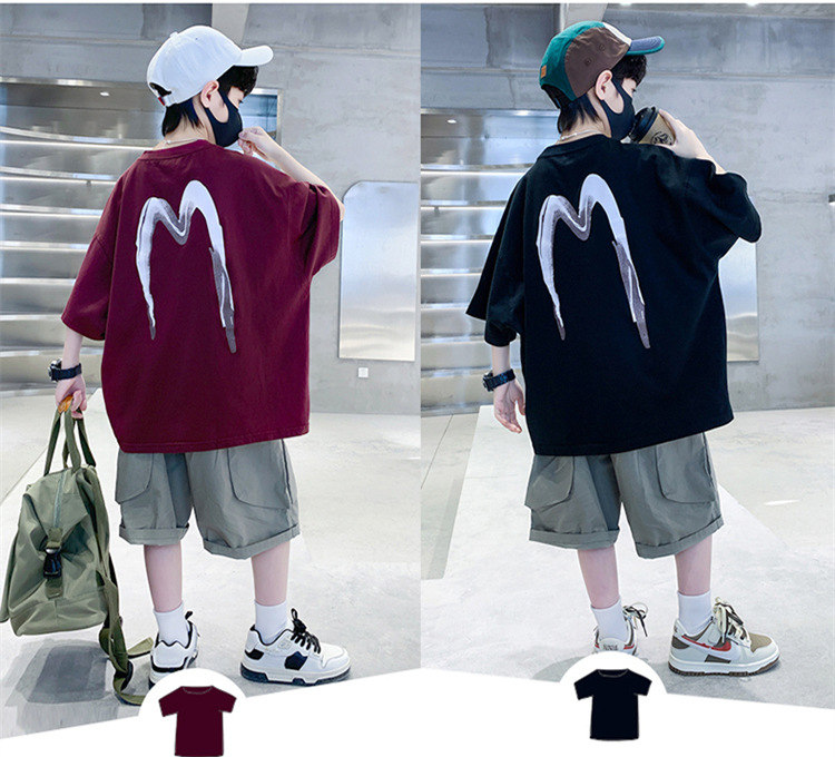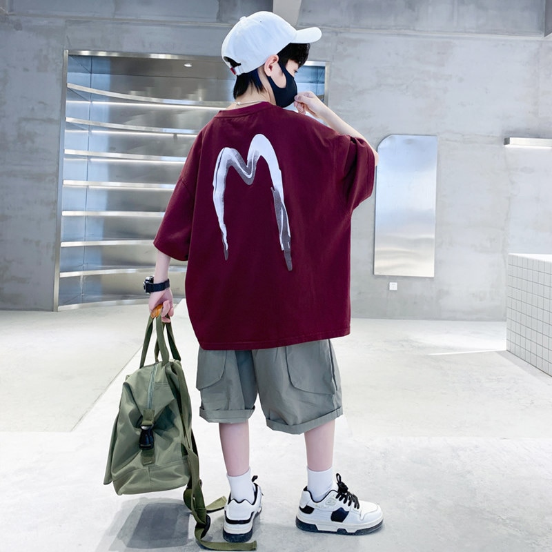 Комплект верхней и нижней одежды для мальчиков 2023 Новый Детский костюм Одежда из 2 предметов Корейская летняя футболка и шорты высокого качества, спортивные костюмы