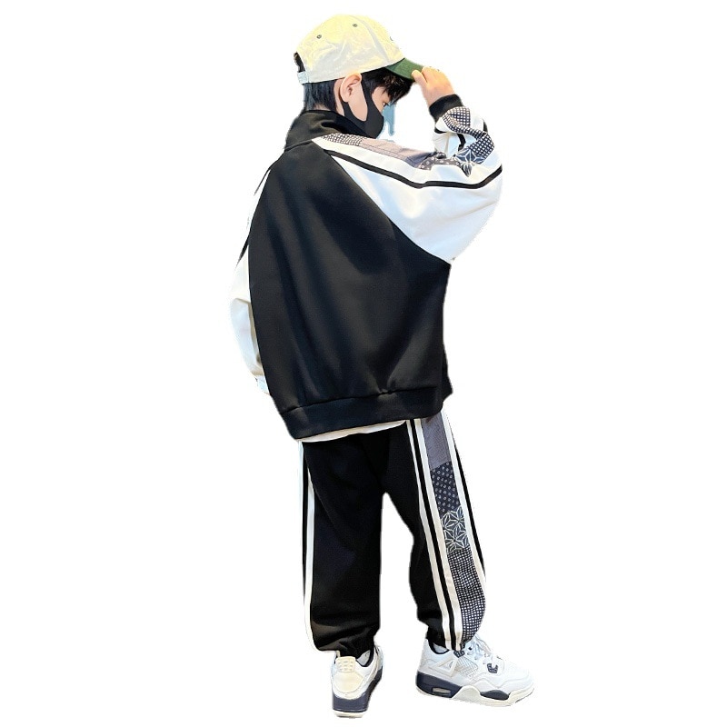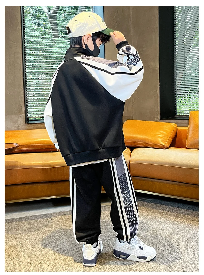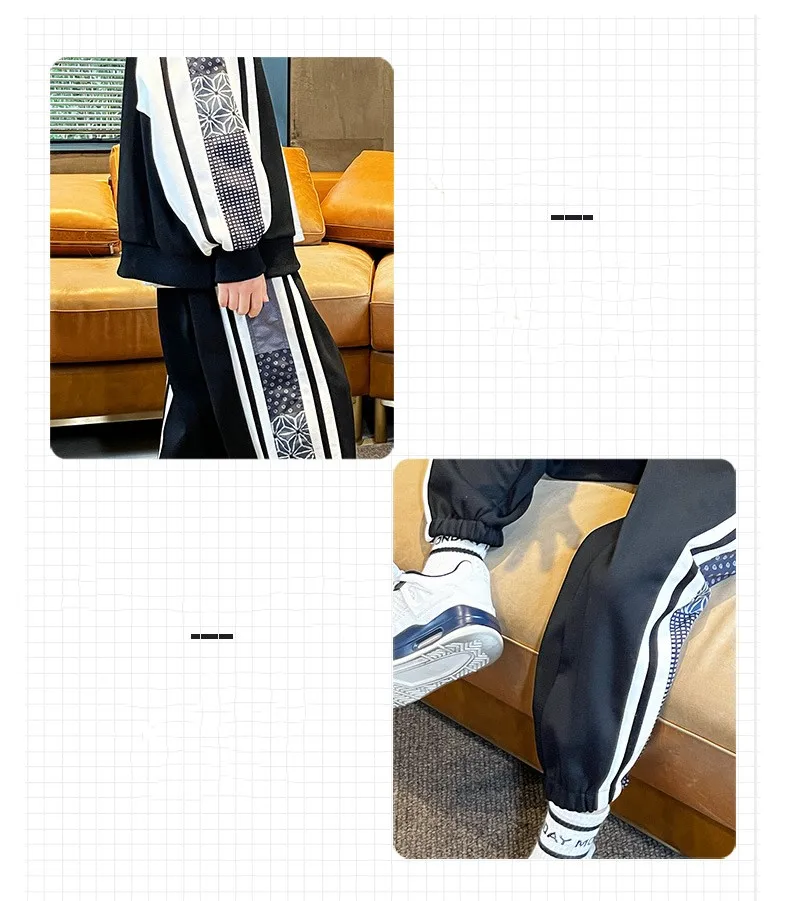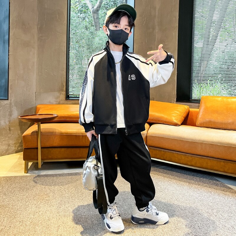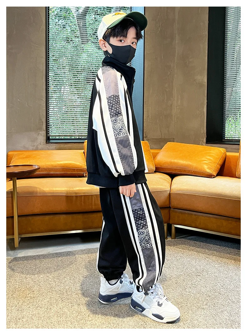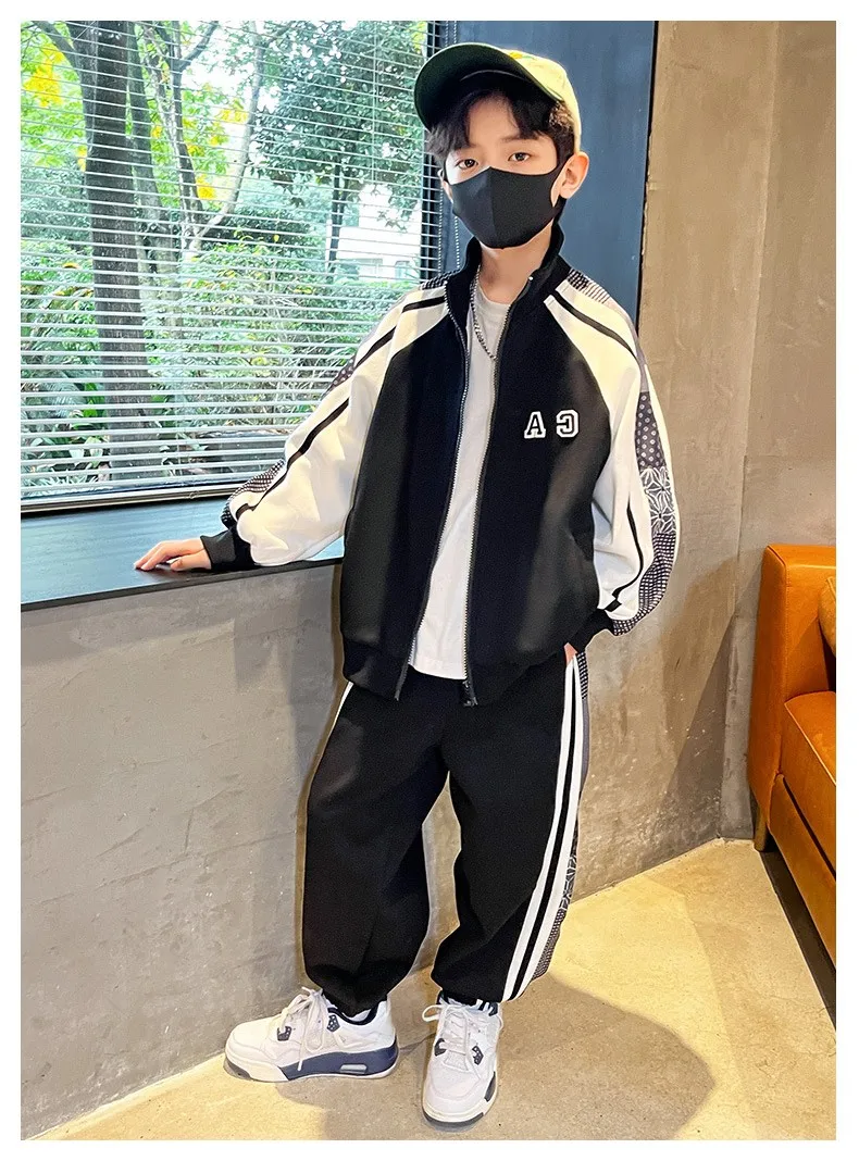 Комплект одежды для мальчиков, куртка + штаны, 2 шт./комплект, хлопковый костюм в полоску, весна-осень 2023, наряд, большие размеры, детская одежда