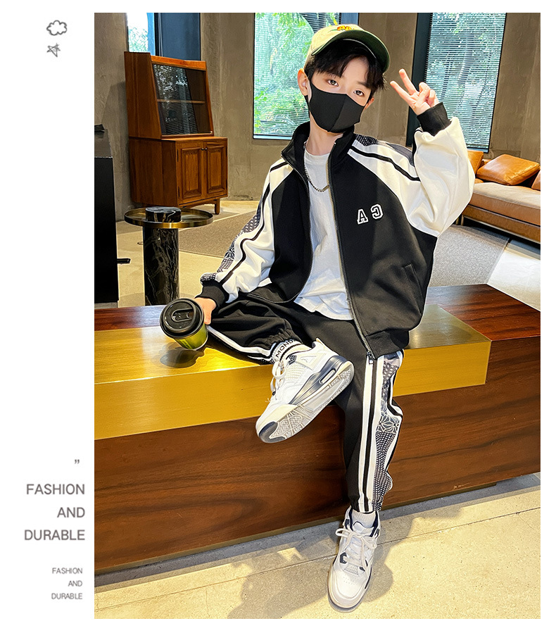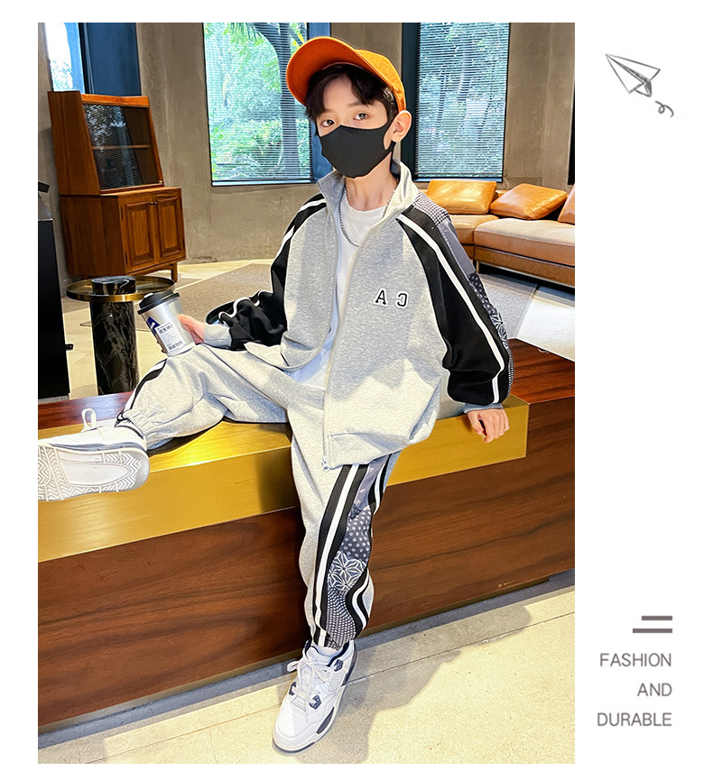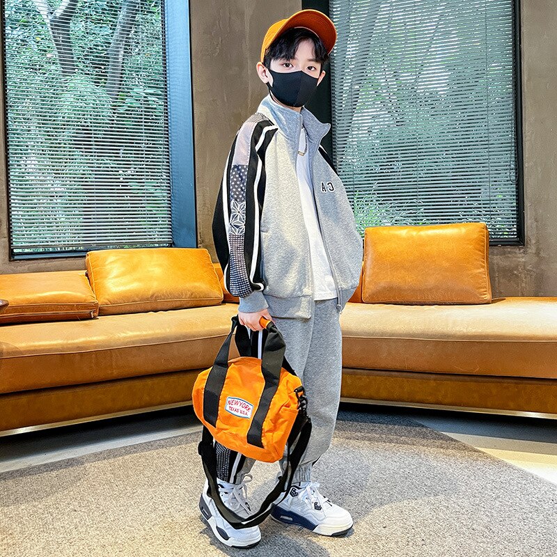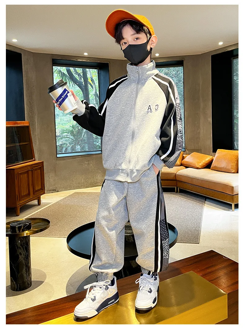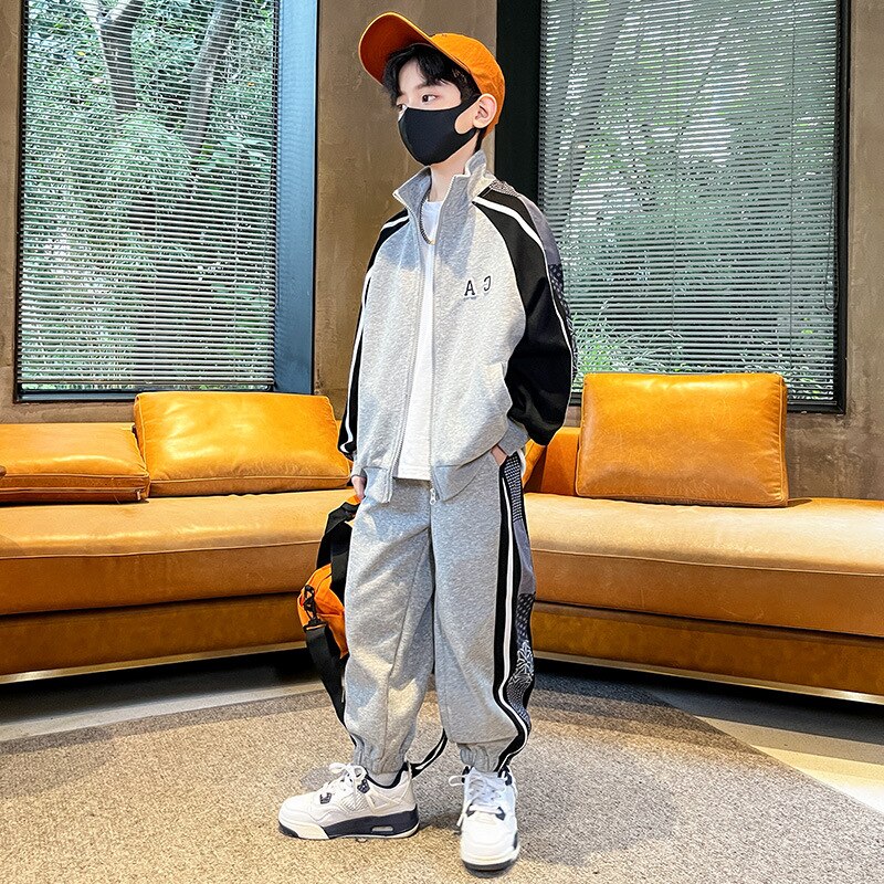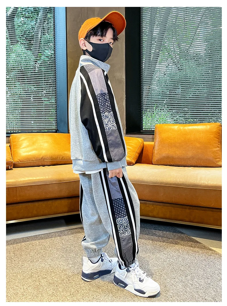 Комплект одежды для мальчиков, куртка + штаны, 2 шт./комплект, хлопковый костюм в полоску, весна-осень 2023, наряд, большие размеры, детская одежда