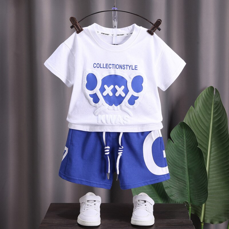 Комплект одежды для мальчиков, лето 2023, Детские хлопковые футболки и шорты, спортивные костюмы из 2 предметов для маленьких мальчиков, детский спортивный костюм