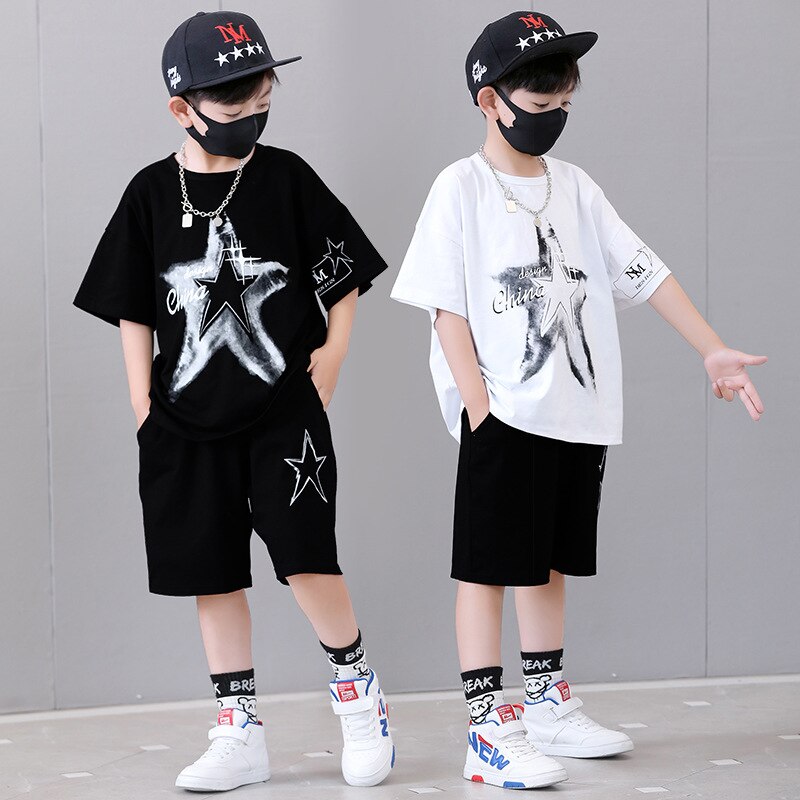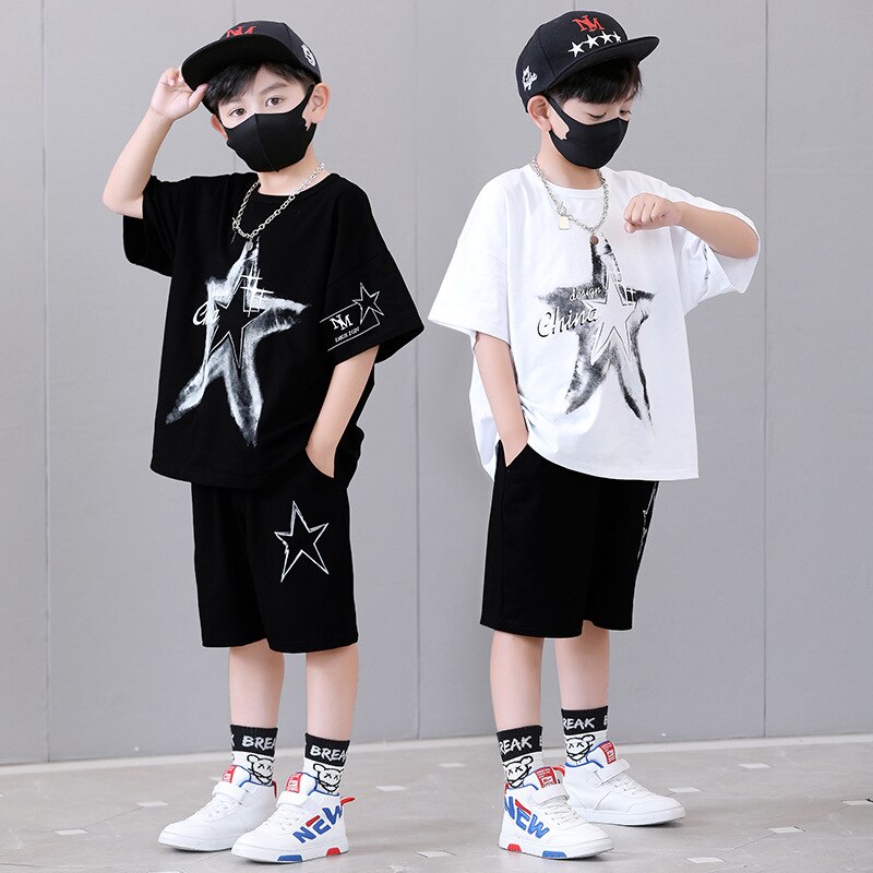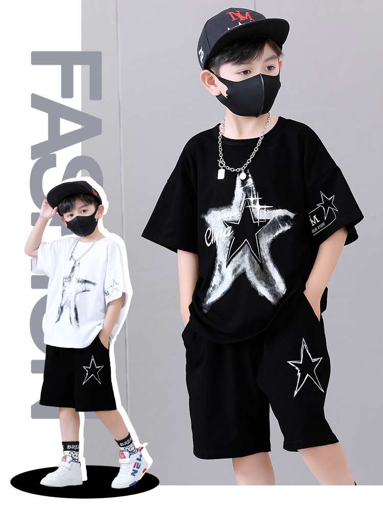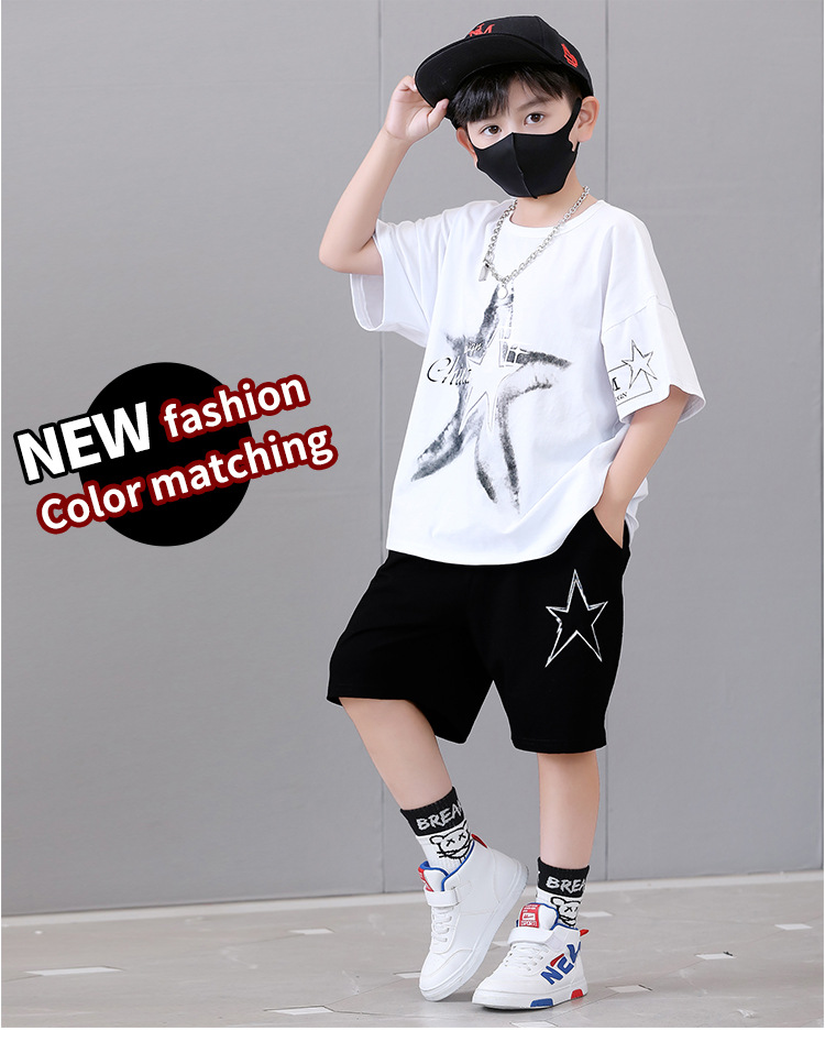 Комплект одежды для мальчиков, с круглым вырезом и коротким рукавом