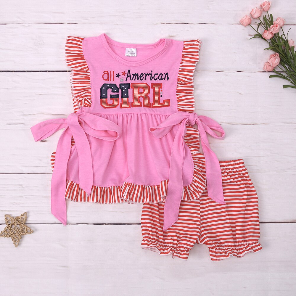 4 июля Комплект одежды для маленьких девочек Летнее боди с вышивкой Детский костюм Детская одежда в полоску с бантом От 1 до 8 лет Наряды на День независимости