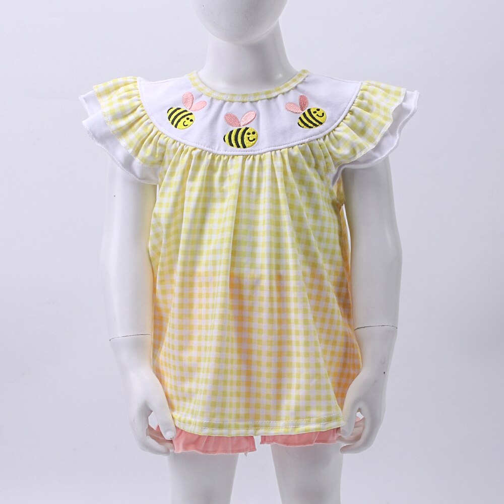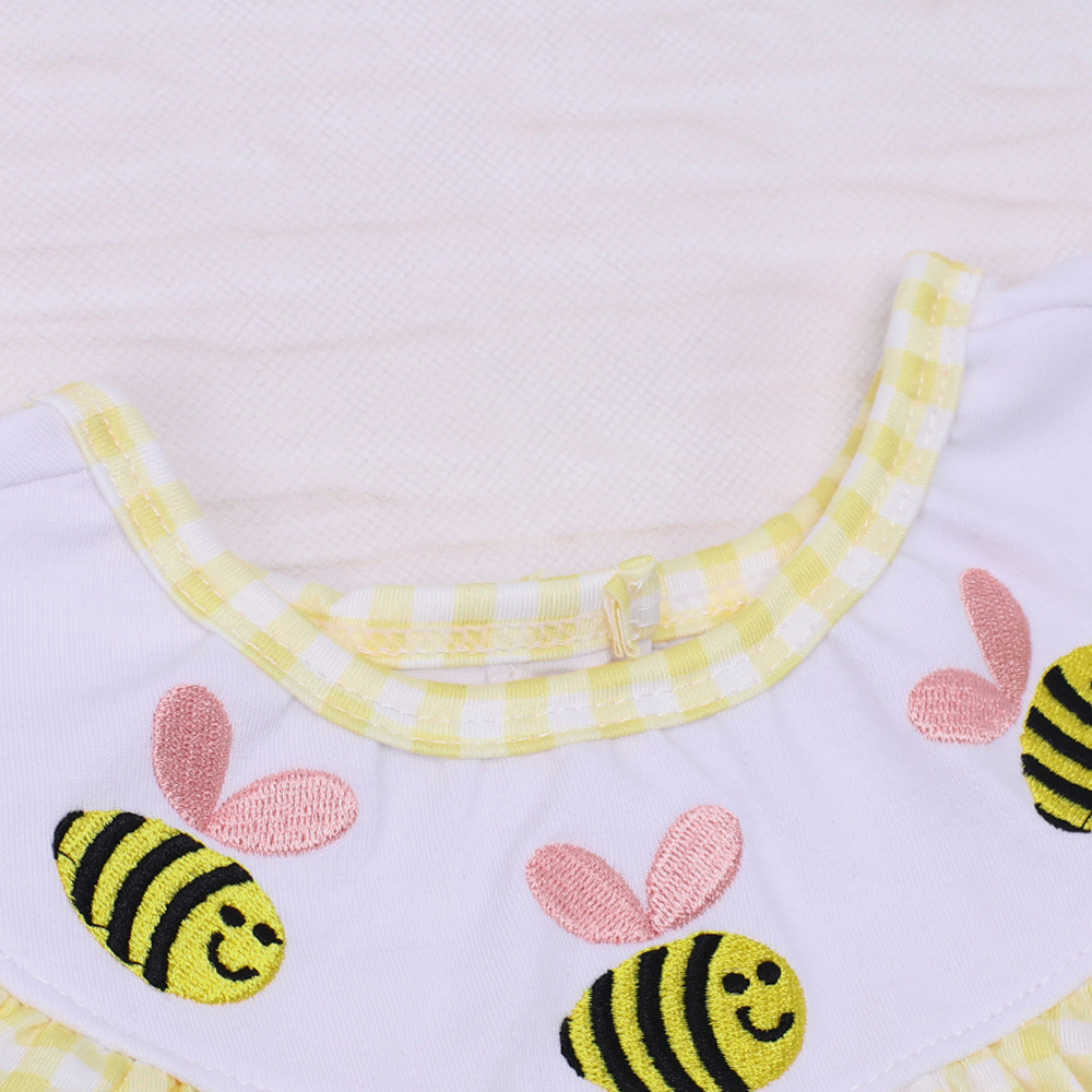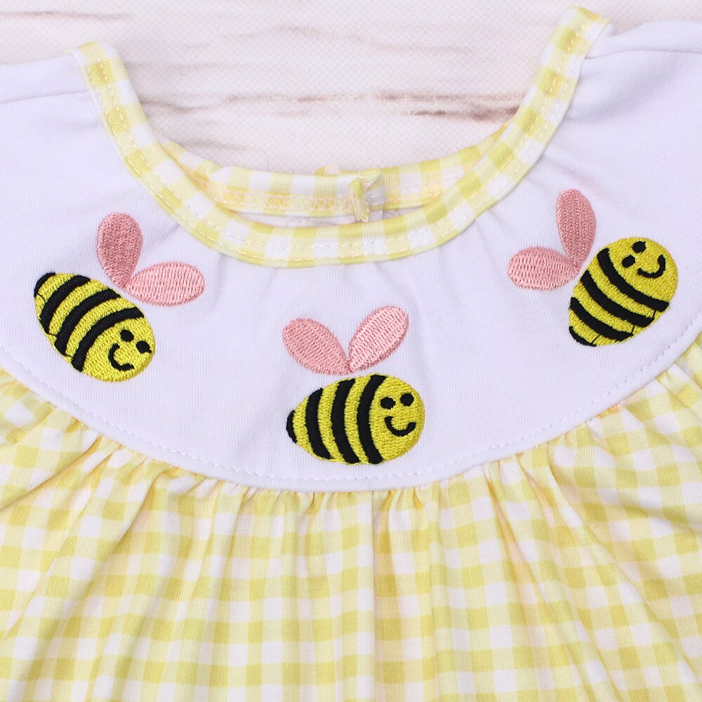 Комплект одежды для маленьких девочек Летнее боди с вышивкой в виде пчел Желтый костюм Детская одежда Детские кружевные решетки От 1 до 8 лет Одежда Bebes
