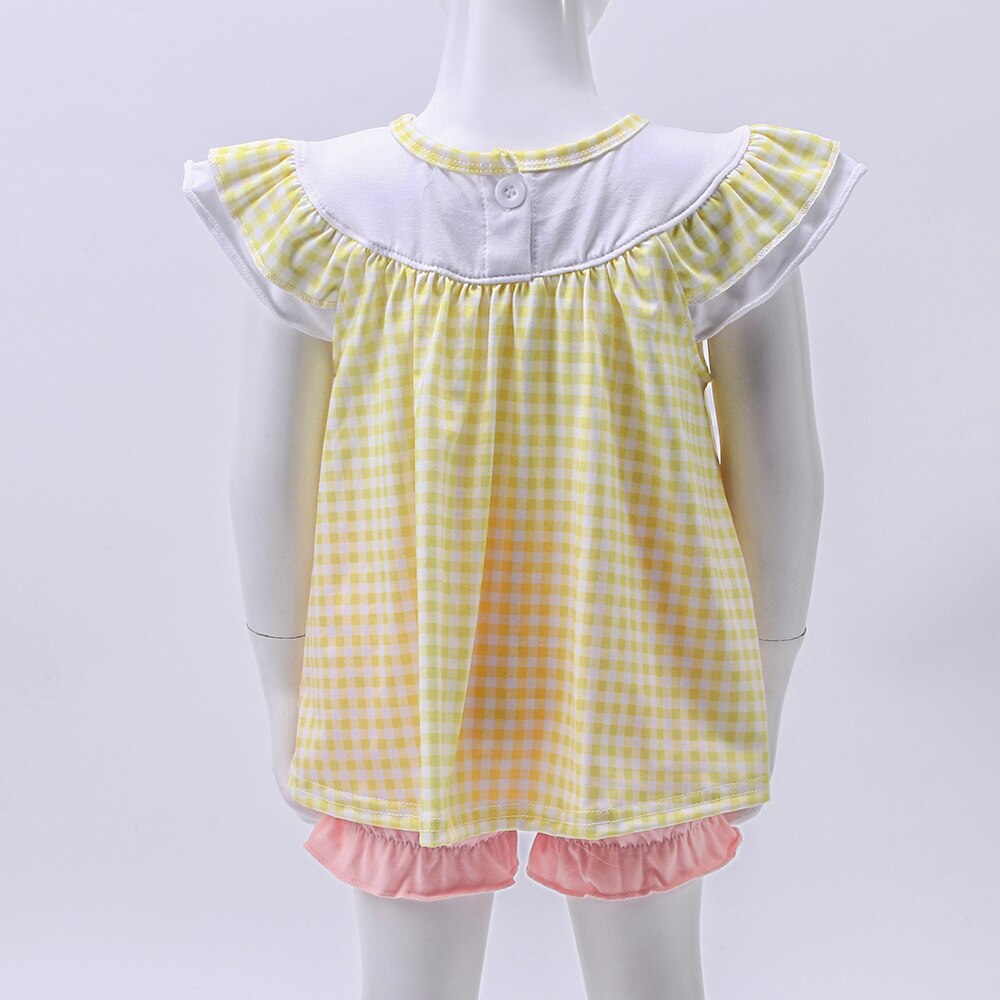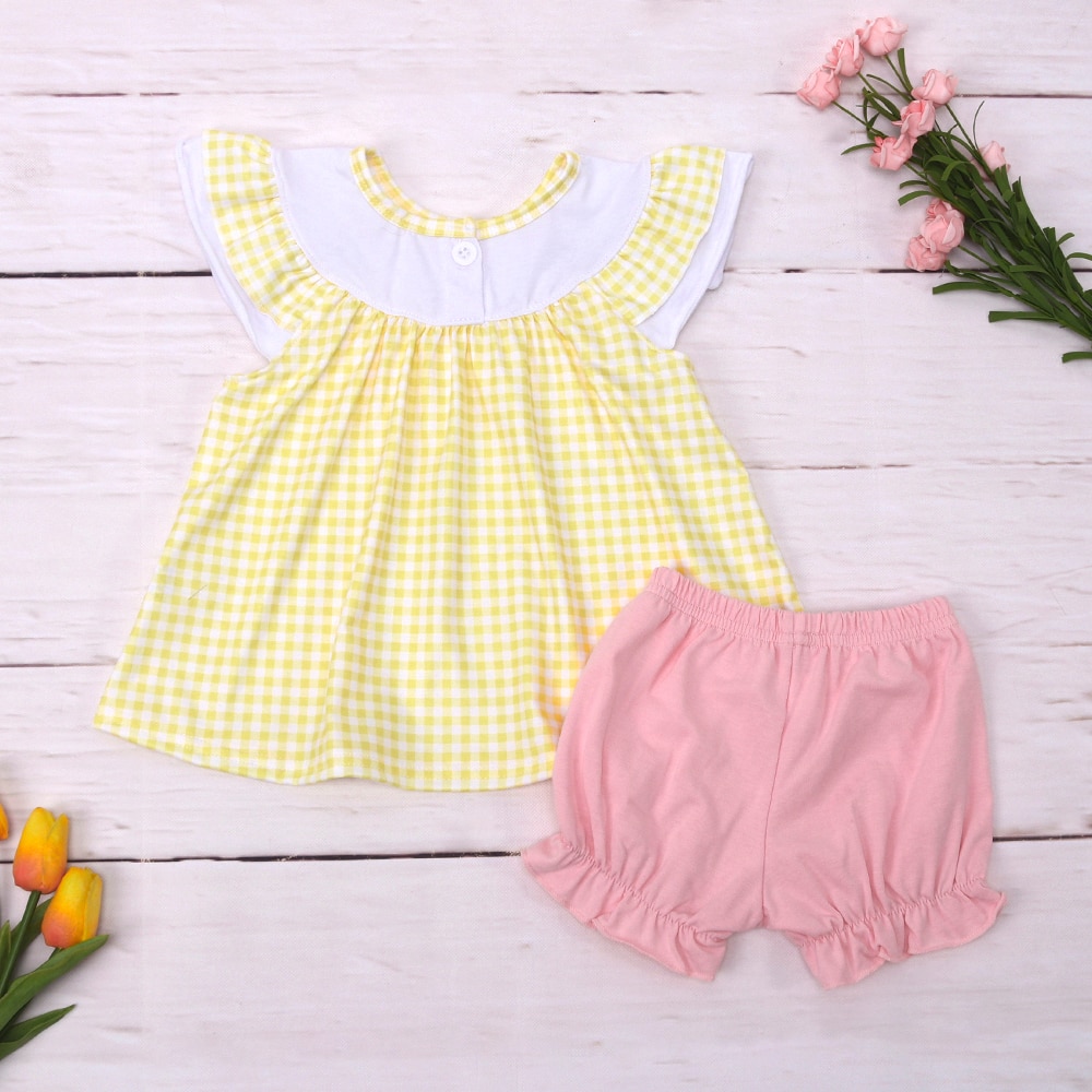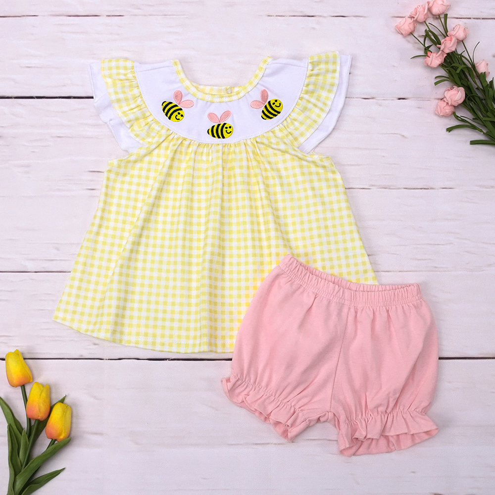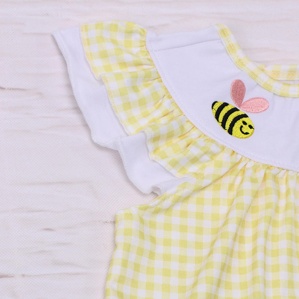 Комплект одежды для маленьких девочек Летнее боди с вышивкой в виде пчел Желтый костюм Детская одежда Детские кружевные решетки От 1 до 8 лет Одежда Bebes