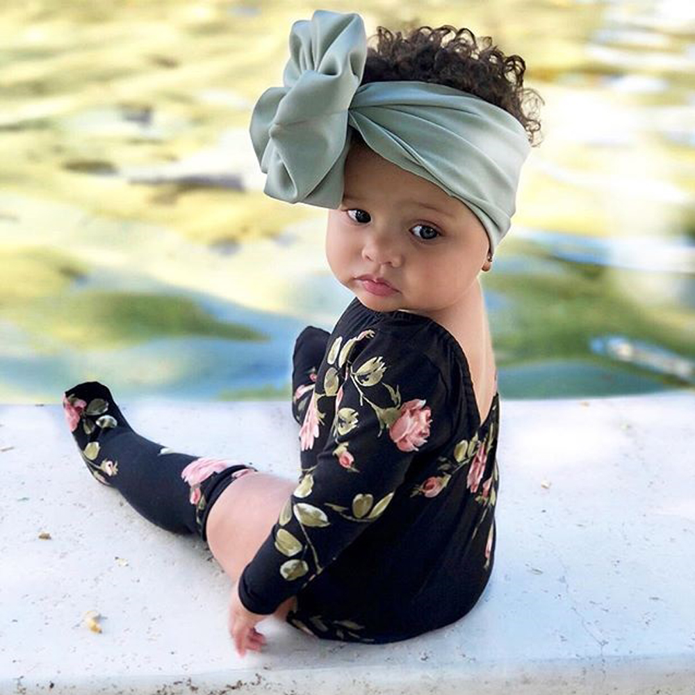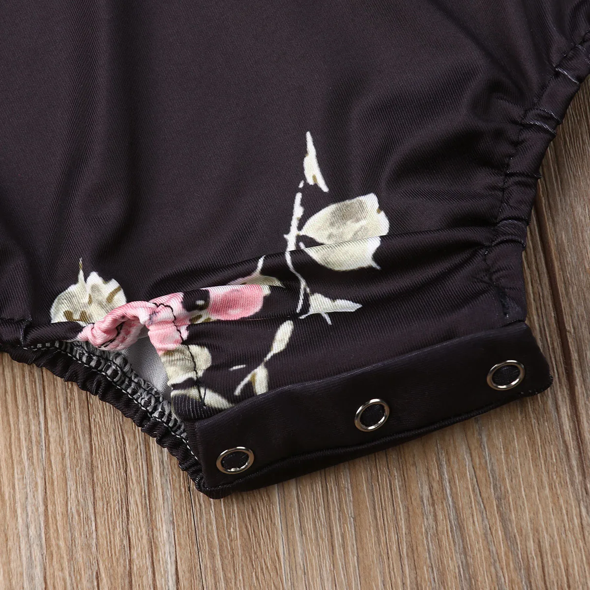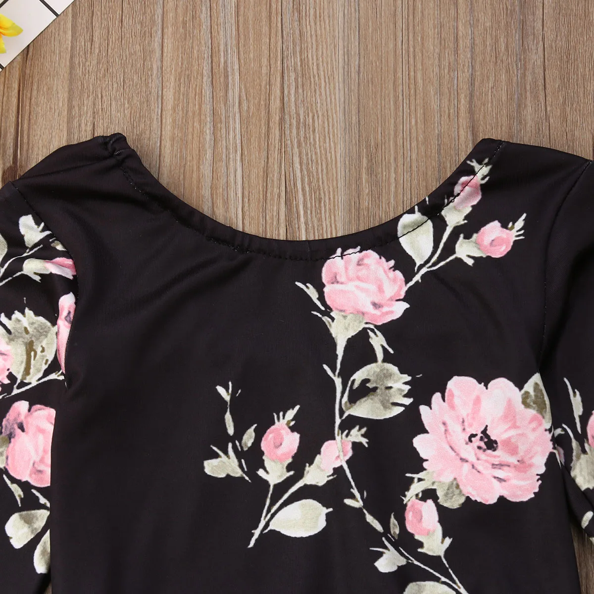 Комплект одежды для маленьких девочек от 0 до 18 месяцев, детские комбинезоны с длинным рукавом, черные боди для девочек с цветочным принтом, детские носки, комплект для новорожденных детей
